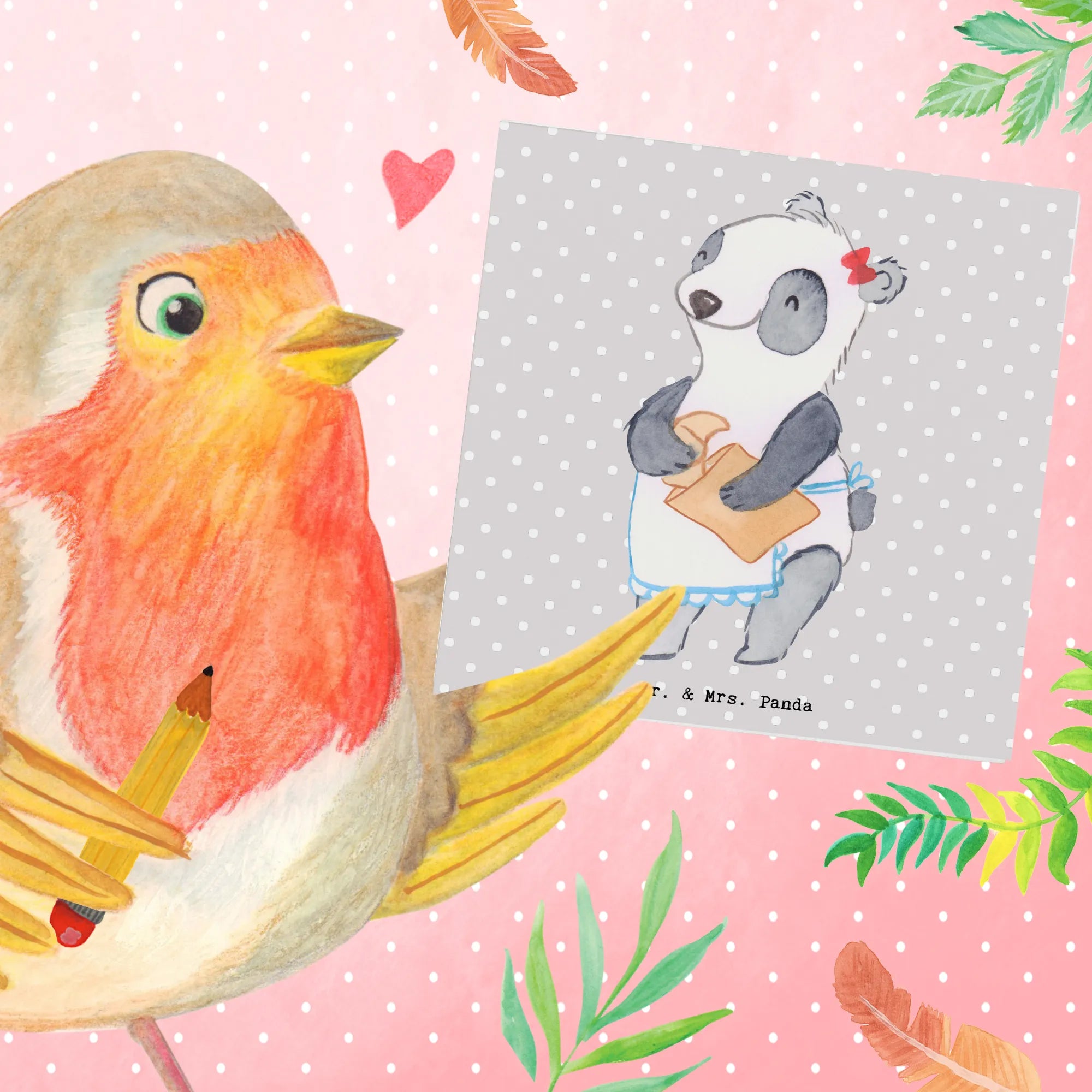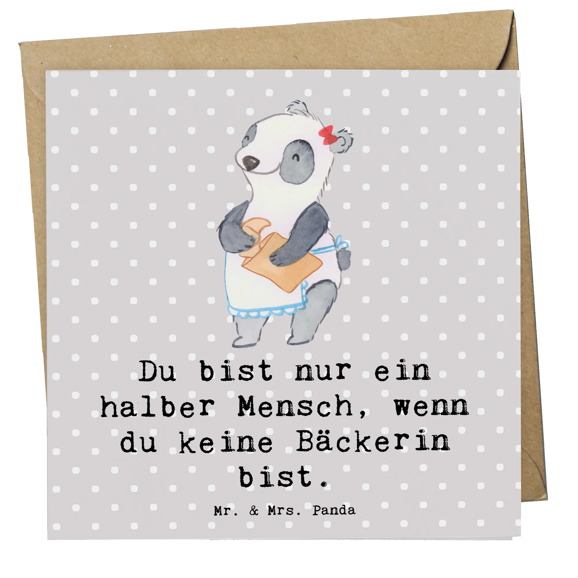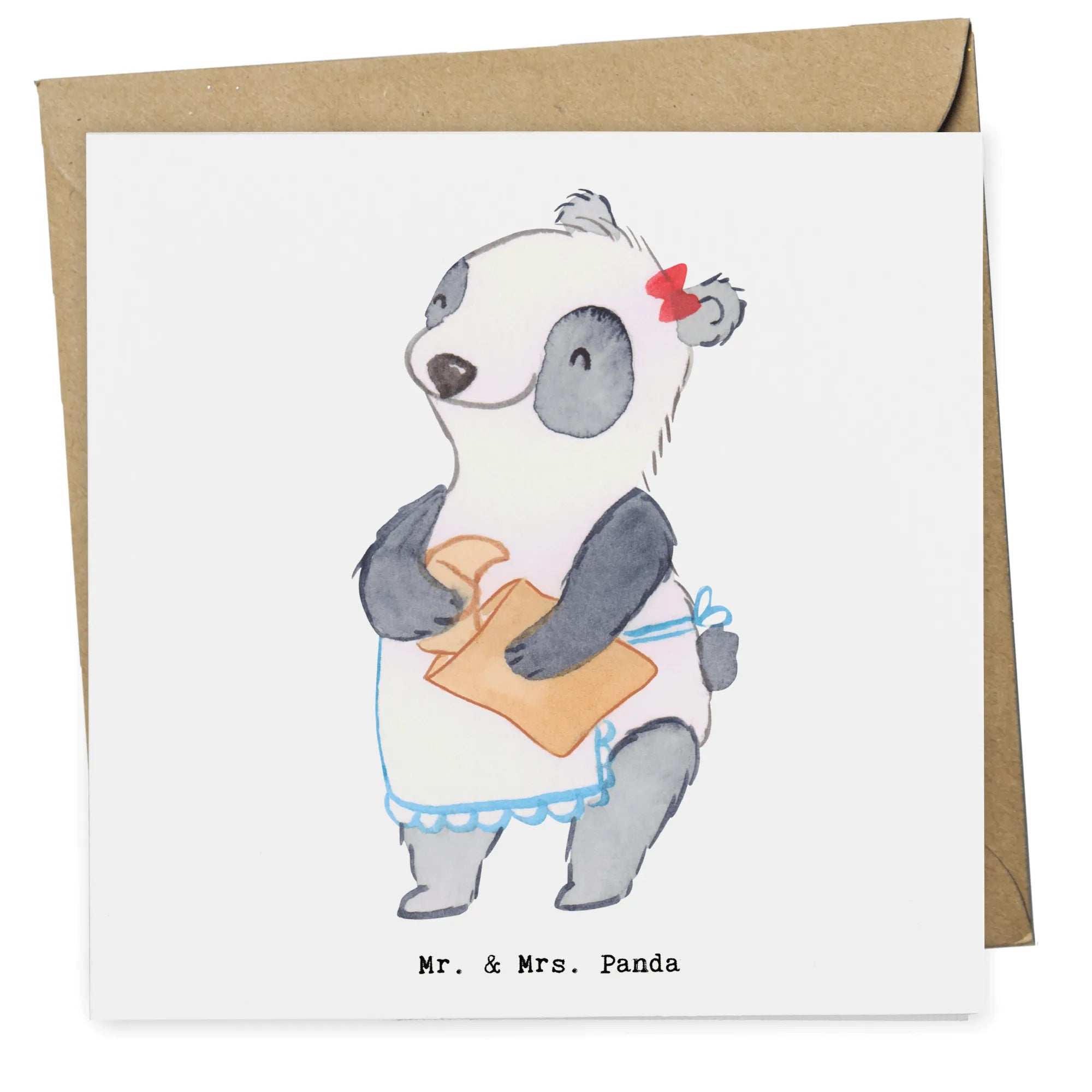 Entdecke die Deluxe Karte "Bäckerin mit Herz" von Mr. & Mrs. Panda! Diese wundervolle und hochwertige quadratische Grußkarte ist die perfekte Wahl, um Deiner Künstlerin, Bäckerin oder Backfreudigen eine besondere Freude zu machen.