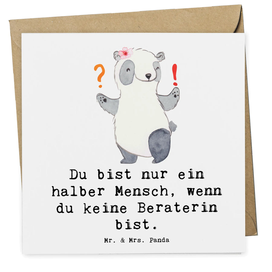 Das bezaubernde Motiv der Karte zeigt einen süßen Panda, der als Beraterin auftritt und mit dem Slogan "Du bist nur ein halber Mensch, wenn du keine Beraterin bist!" versehen ist. Dieser Spruch bringt nicht nur ein Lächeln ins Gesicht, sondern würdigt auch die wertvolle Arbeit von Beraterinnen in all ihren Variationen, sei es im Finanzsektor, im IT-Bereich oder allgemein in der Beratung. 🐼