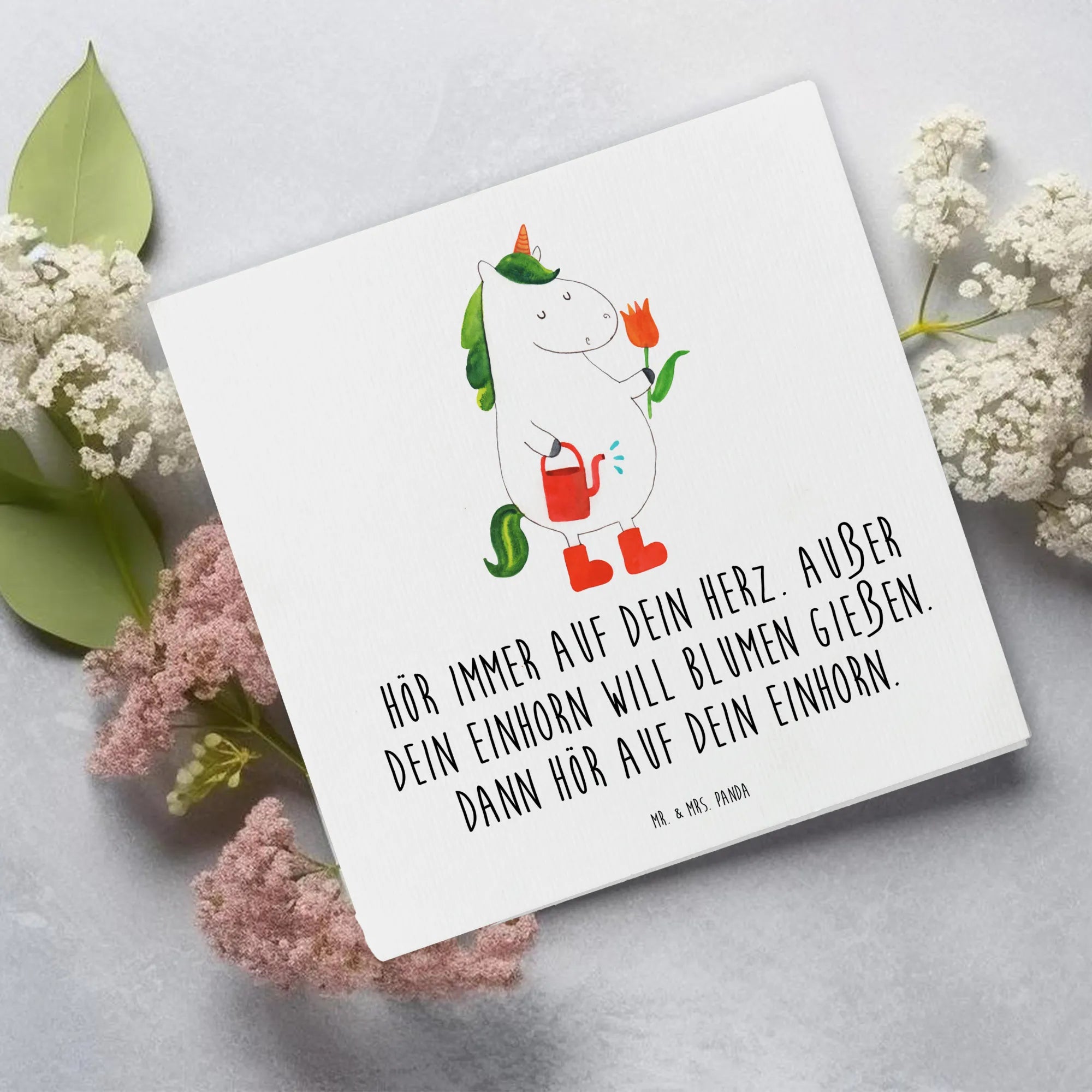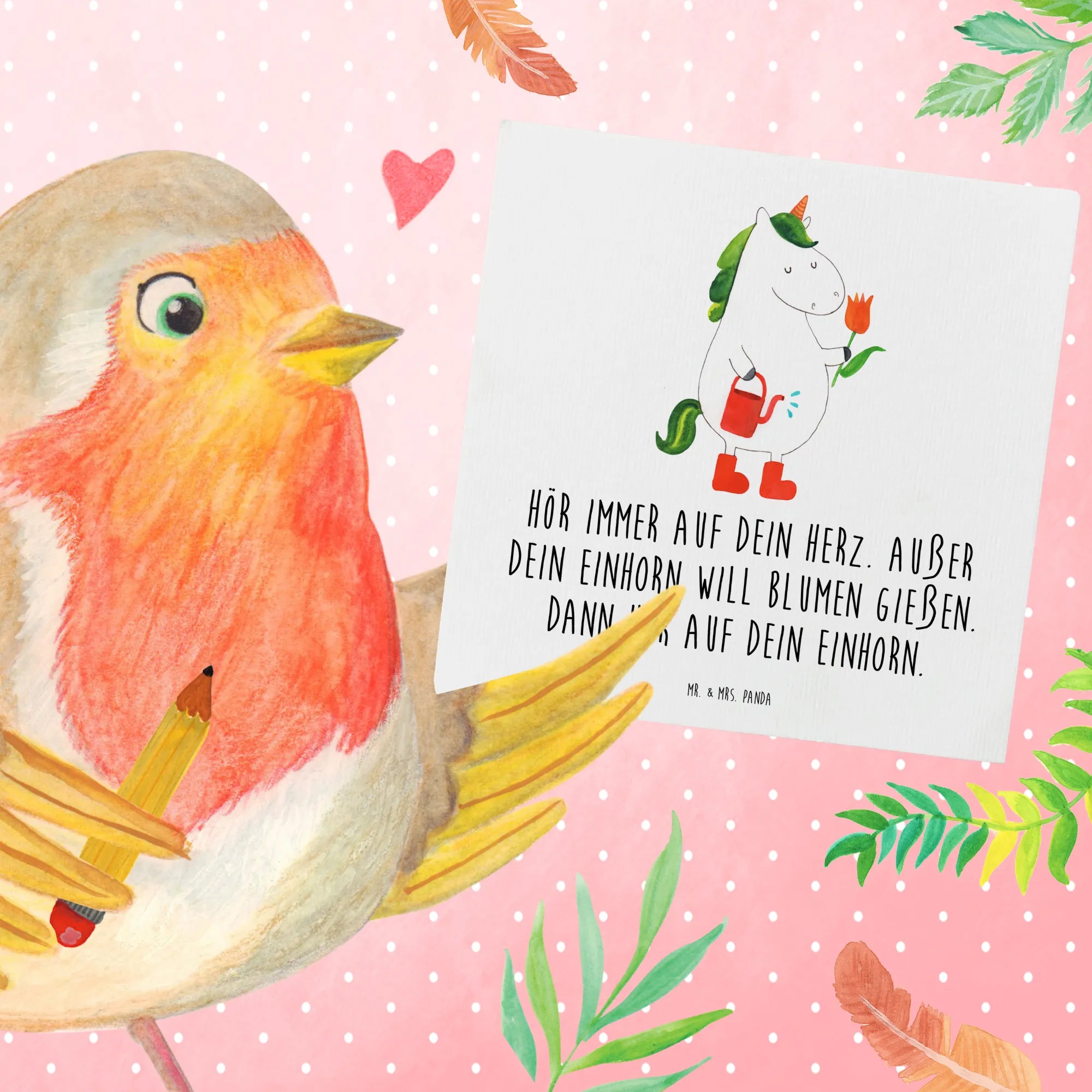 Mit dem Spruch "Hör immer auf dein Herz. Außer dein Einhorn will Blumen gießen. Dann hör auf dein Einhorn." verleiht die Karte jedem besonderen Anlass eine verspielte Note. Die Karte misst 140 mm x 140 mm und besteht aus hochwertigem Karton, der sich perfekt für individuelle Grüße und Glückwünsche eignet.