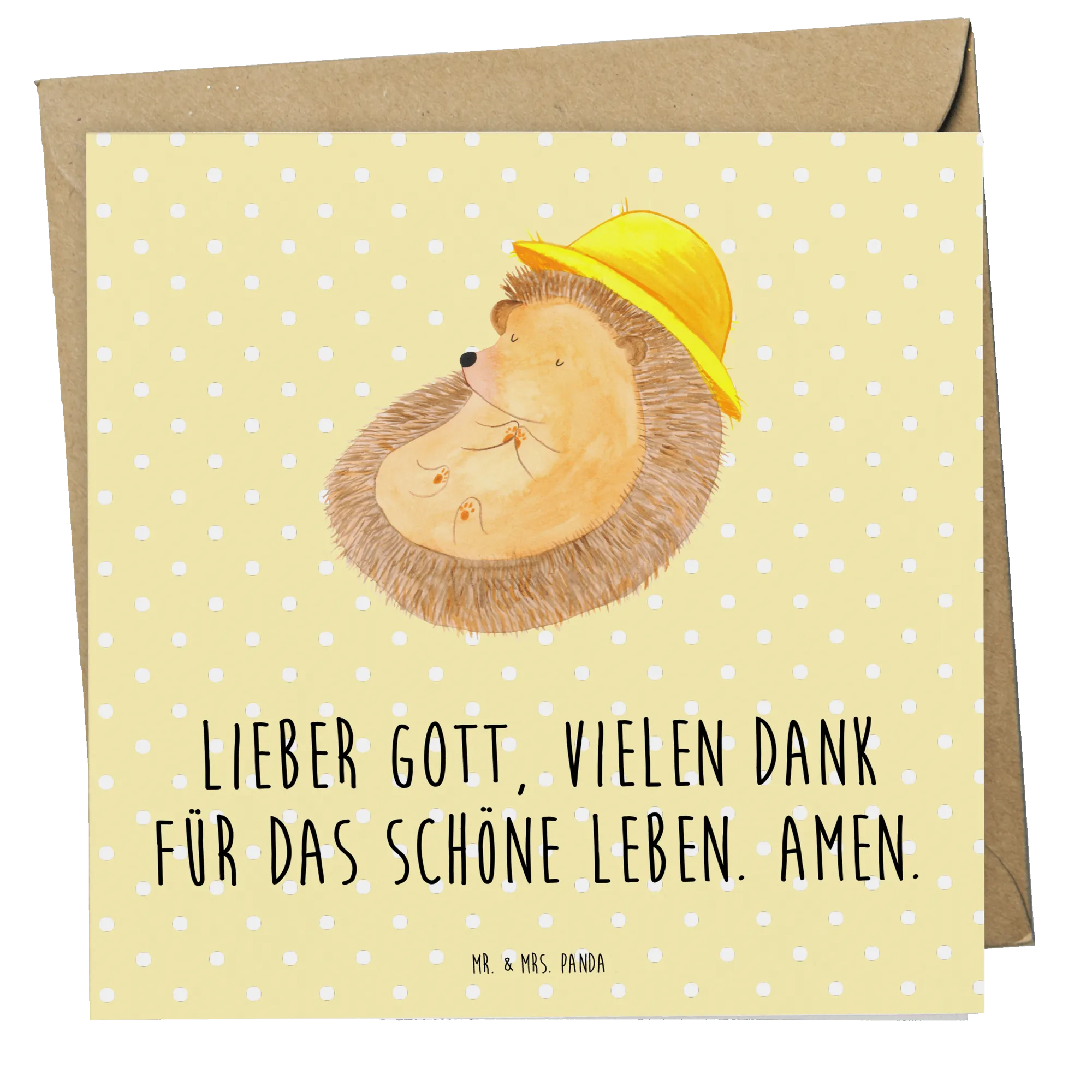 Deluxe Karte Igel Beten Hochzeitskarte, Geburtstagskarte, Klappkarte, Grußkarte, Karte, Hochwertige Klappkarte, Einladungskarte, Glückwunschkarte, Hochwertige Grußkarte, Tiermotive, Gute Laune, lustige Sprüche, Tiere, Amen, Igel, Sonnenhut, Dankbarkeit, Leben, Igel mit Hut, genießen, Gott, beten, Dankbar sein, dankbar