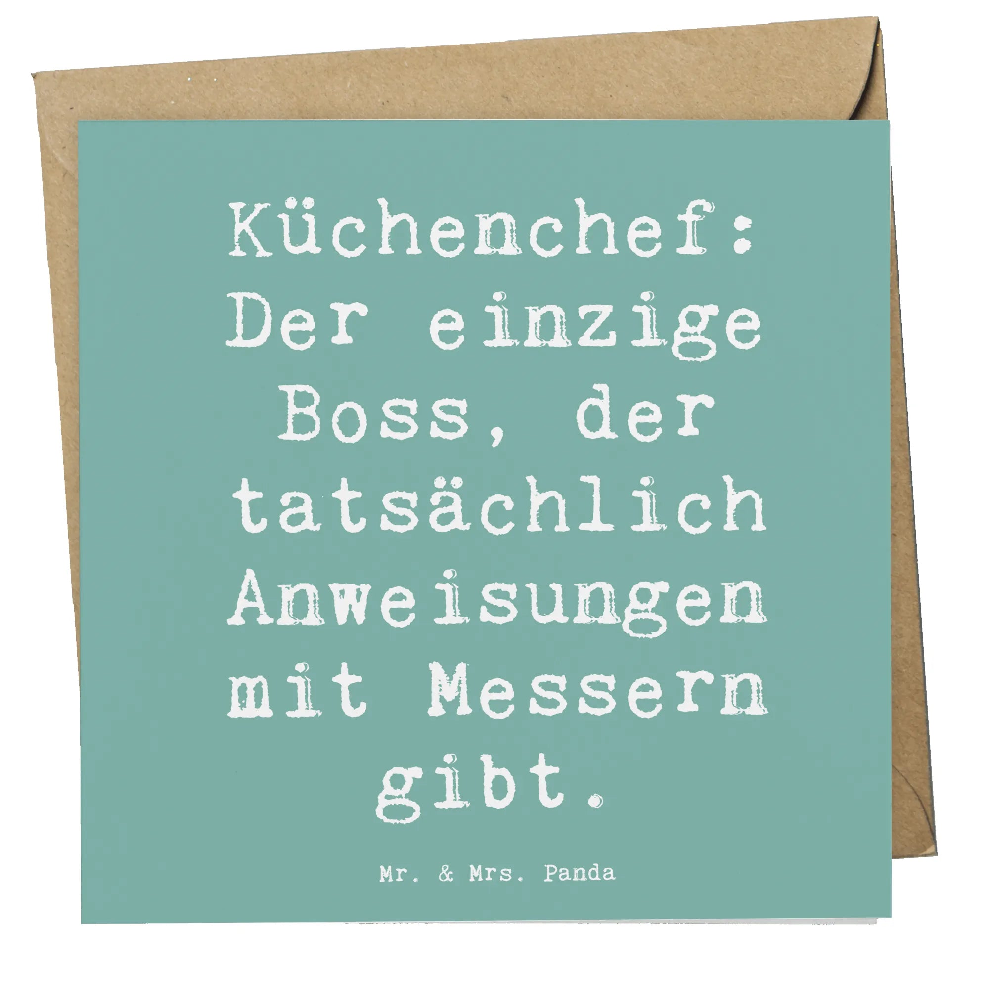 Die Deluxe Karte zum Thema Koch aus der besonderen Kollektion Berufe von Mr. & Mrs. Panda ist das perfekte Geschenk für alle, die die Küchenleidenschaft in ihrem Beruf leben! Mit dem liebevoll gestalteten Motiv und dem witzigen Spruch "Küchenchef: Der einzige Boss, der tatsächlich Anweisungen mit Messern gibt." bringt diese Karte nicht nur Freude, sondern auch ein Lächeln auf die Gesichter Deiner Freunde, Kollegen oder Familienmitglieder.
