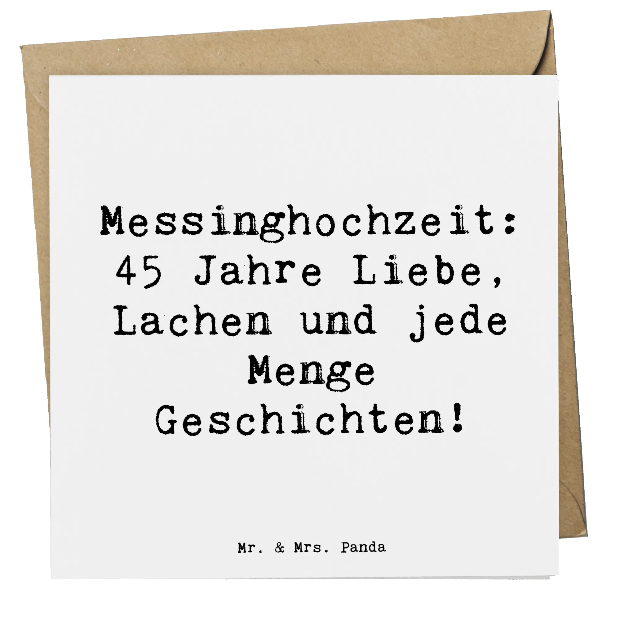 Die Deluxe Karte zum 45. Hochzeitstag, auch bekannt als Messinghochzeit, von Mr. & Mrs. Panda ist die perfekte Wahl, um das außergewöhnliche Jubiläum eines Paares zu feiern. Diese wunderschöne und besonders hochwertige quadratische Karte misst 140 mm x 140 mm und besteht aus hochwertigem 300 Gramm Karton. Mit ihrem eleganten Design und dem spritzigen Spruch: „Messinghochzeit: 45 Jahre Liebe, Lachen und jede Menge Geschichten!“ bringt sie ein Lächeln auf die Lippen des Beschenkten und fängt die wunderbaren Momente dieser langanhaltenden Liebe ein.