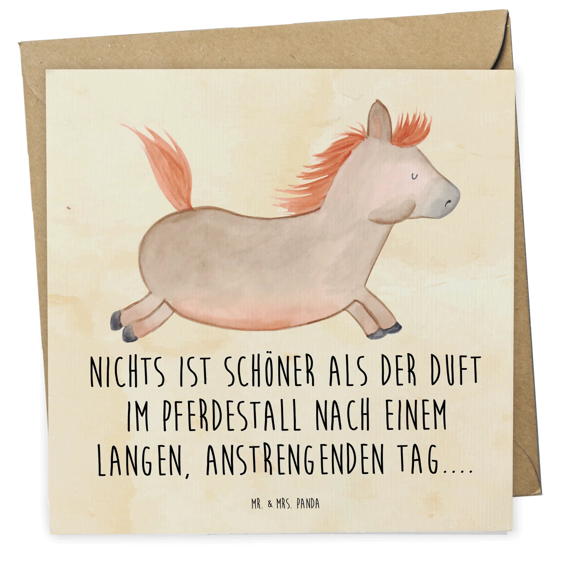 Die glänzend veredelten Vorder- und Rückseiten sorgen für einen tollen visuellen Eindruck, während die matte Innenseite Dir die Möglichkeit gibt, Deine persönlichen Worte zu hinterlassen. Mit dem Slogan "Nichts ist schöner als der Duft im Pferdestall nach einem langen, anstrengenden Tag..." spricht die Karte all die tollen Erinnerungen an, die man mit der Pferdepflege und dem Reiten verbindet.