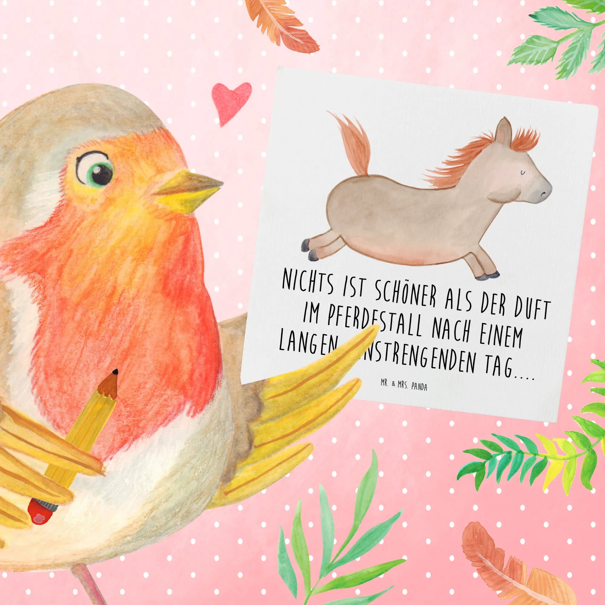 Jedes Motiv wird mit Liebe von Mrs. Panda handgezeichnet. Die Deluxe Karte "Pferd springt" ist nicht nur eine Karte, sondern ein kleines Stück Freude, das Du teilen kannst.