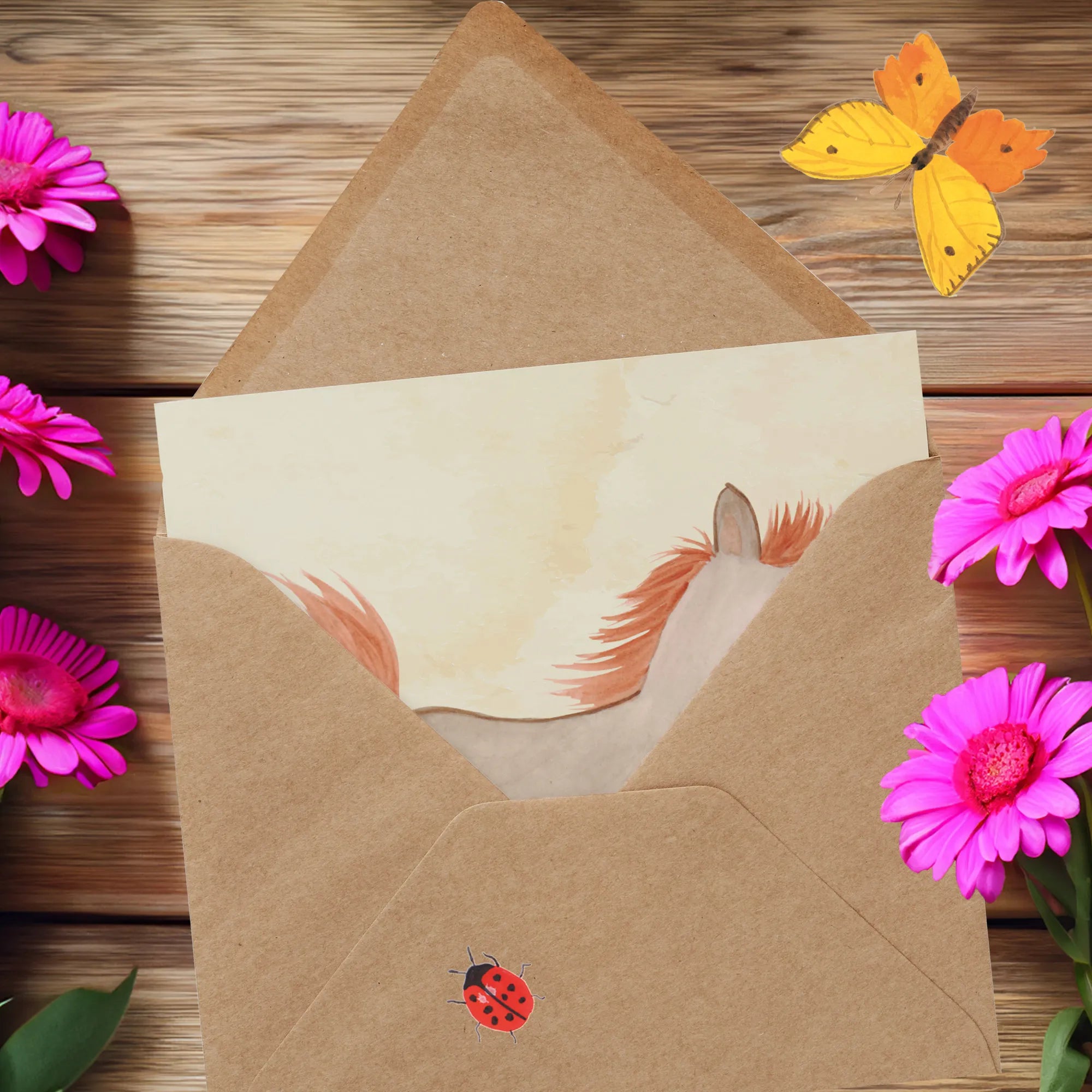 Die Innenseite der Karte ist in einem matten Design gehalten, sodass du sie ganz nach deinen Vorstellungen beschriften kannst. Du möchtest jemandem für den tollen Tag im Stall danken oder einfach nur "Hallo" sagen? Mit dieser Karte machst du alles richtig!