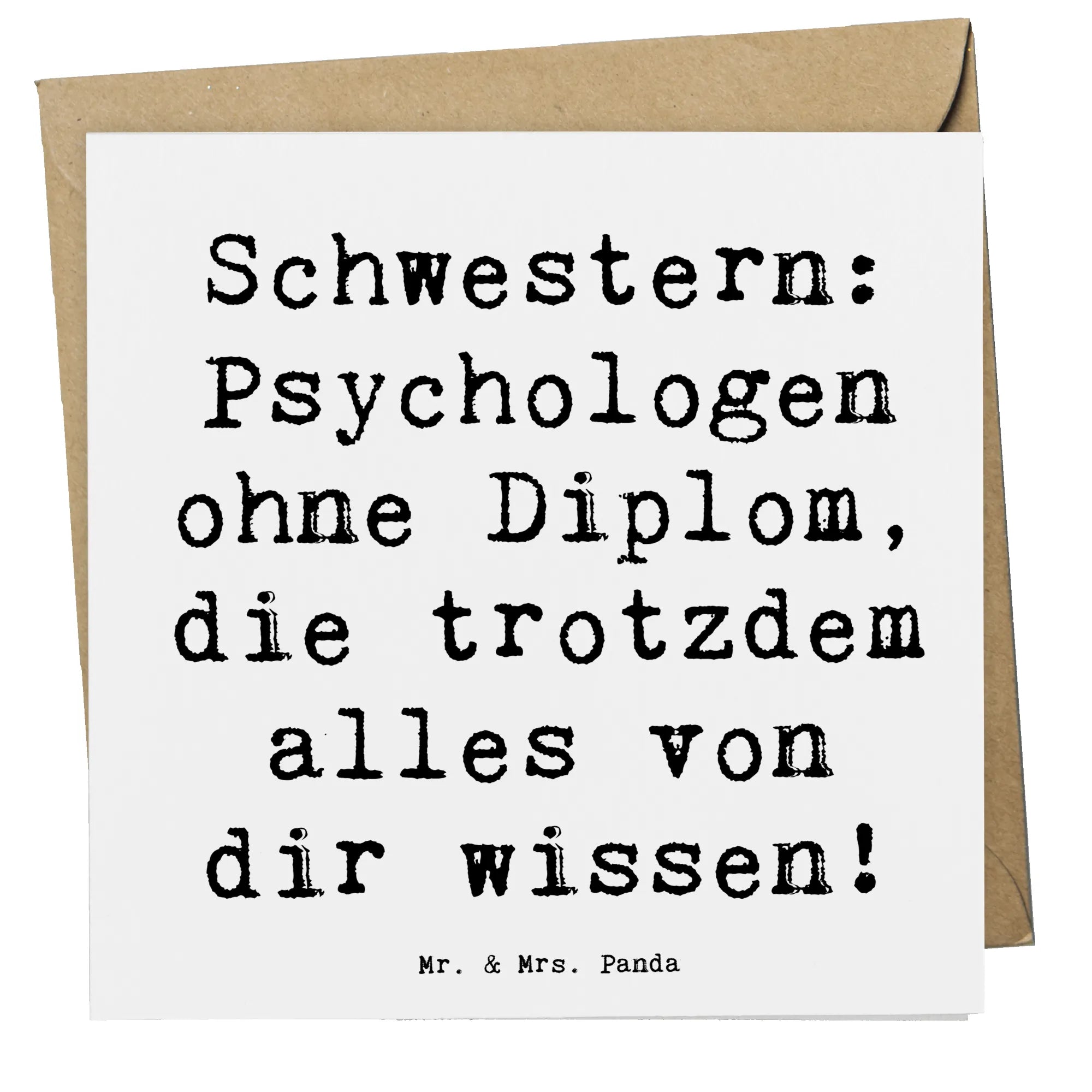 Ob ältere Schwester, kleine Schwester oder Zwillingsschwester, jede Rolle bringt ihre eigenen dynamischen und liebevollen Eigenschaften in das Familienleben ein. Diese Karte ist nicht nur ein einfacher Gruß; sie ist ein Ausdruck von Dankbarkeit und Liebe. Mit dem charmanten Spruch "Schwestern: Psychologen ohne Diplom, die trotzdem alles von dir wissen!" auf der Vorderseite zaubert sie jedem ein Lächeln ins Gesicht.