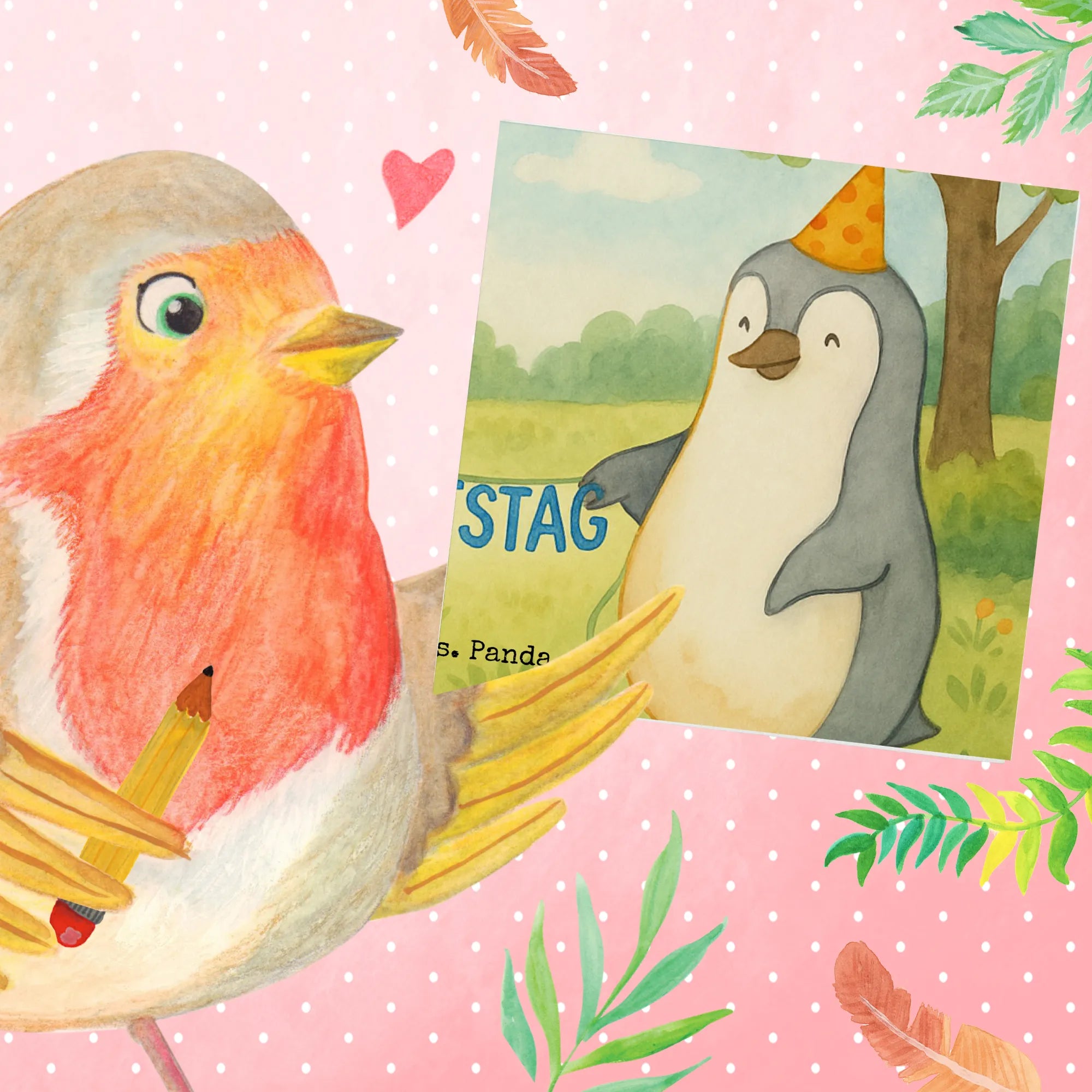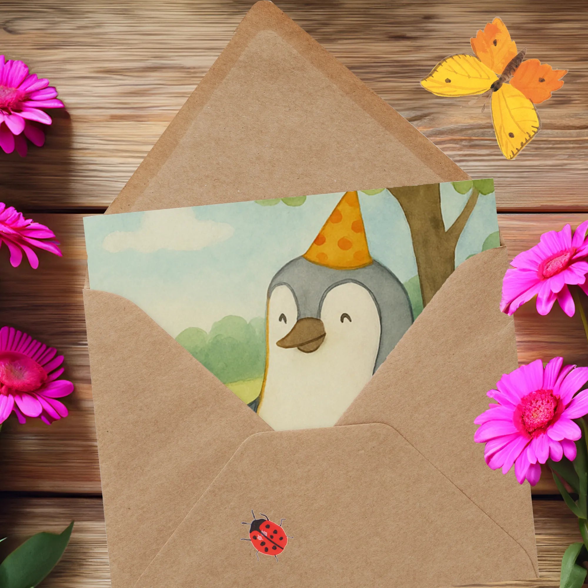 Karta Deluxe Mysz Pingwin urodziny Design - z napisem