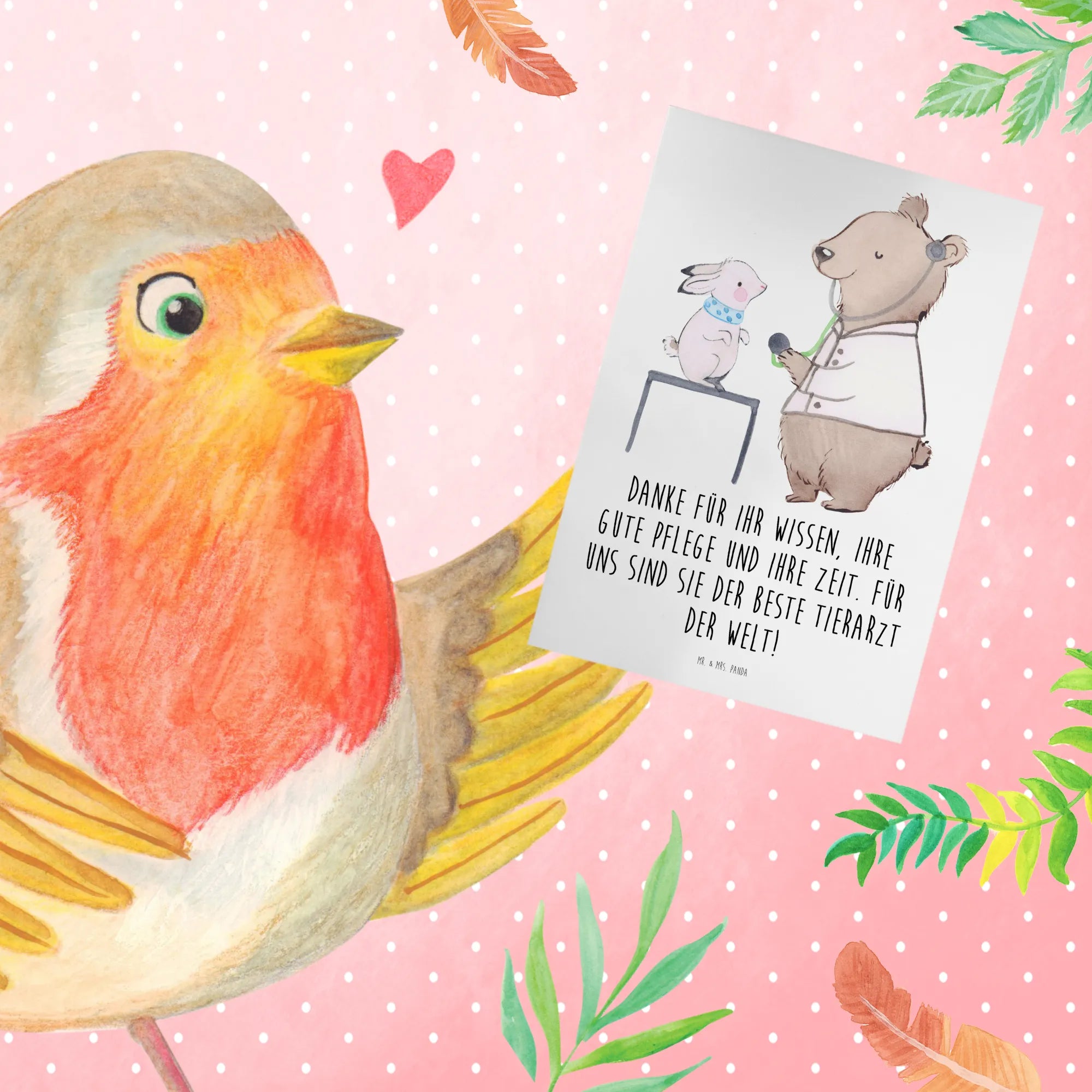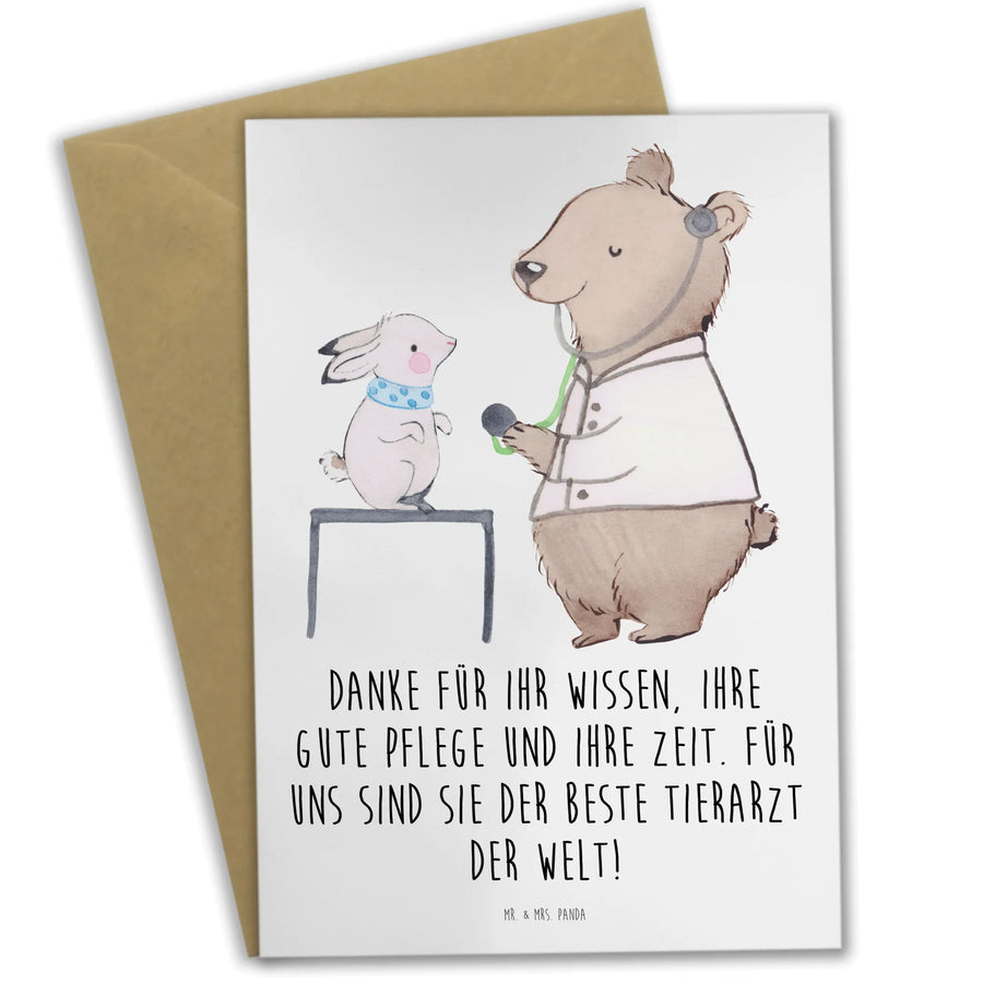 Du möchtest Deinem Tierarzt oder dem Praxisteam von Herzen Danke sagen? Unsere liebevolle Grußkarte „Tierarzt“ aus der Danke-Kollektion von Mr. & Mrs. Panda trifft genau den richtigen Ton. Auf der Vorderseite steht der herzliche Spruch: „Danke für Ihr Wissen, Ihre gute Pflege und Ihre Zeit. Für uns sind Sie der beste Tierarzt der Welt!” – eine warme Botschaft, die berührt. ❤️