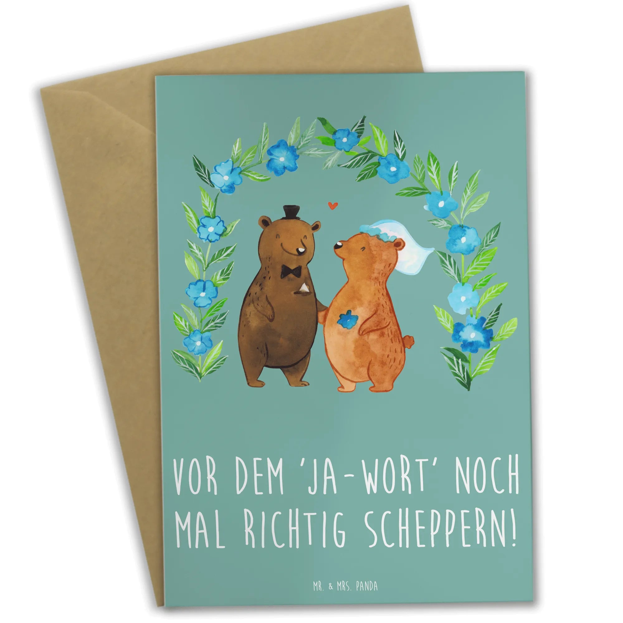 Diese liebevoll gestaltete Polterabend Karte aus der Hochzeit-Kollektion von Mr. & Mrs. Panda bringt Stimmung in jede Feier. Mit dem Slogan „Vor dem 'Ja-Wort' noch mal richtig scheppern!“ trifft sie genau den Ton, den Freunde, Trauzeugen und Familie bei einem ausgelassenen Polterabend lieben. Ob als Einladung, Glückwunschkarte oder Beilage zum Geschenk – diese Karte macht einfach Freude.
