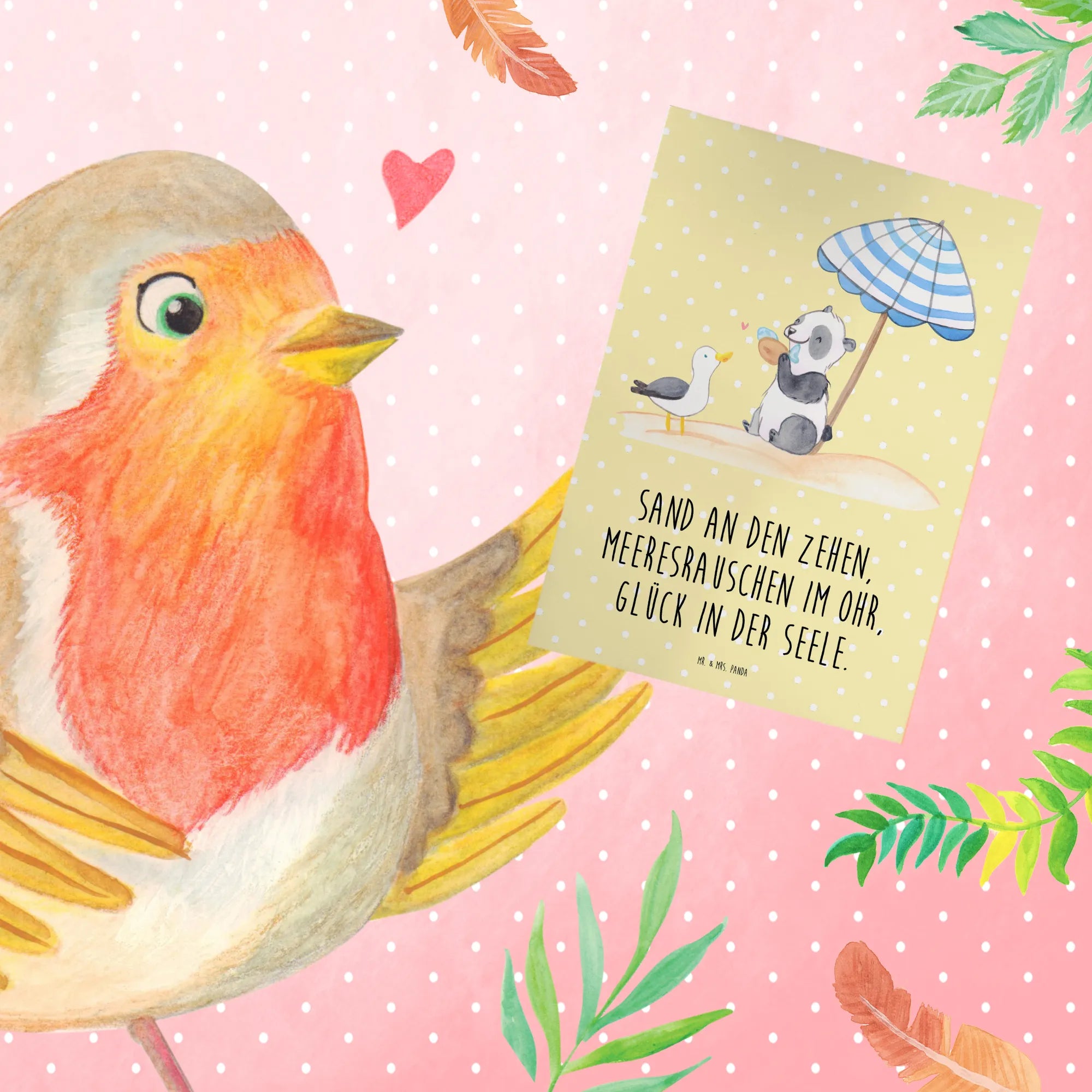 Die wunderschöne Sommerkarte von Mr. & Mrs. Panda ist der perfekte Gruß für alle, die das Meer, den Strand und die entspannte Sommerzeit lieben! Mit einem zauberhaften Motiv, das pure Lebensfreude ausstrahlt, ist diese Karte ideal für Einladungen zu einem Strandurlaub oder einfach nur, um deine liebsten Menschen an die schönste Zeit des Jahres zu erinnern. Der Spruch „Sand an den Zehen, Meeresrauschen im Ohr, Glück in der Seele.“ lädt zu Träumereien und Erinnerungen an unvergessliche Sommermomente ein.