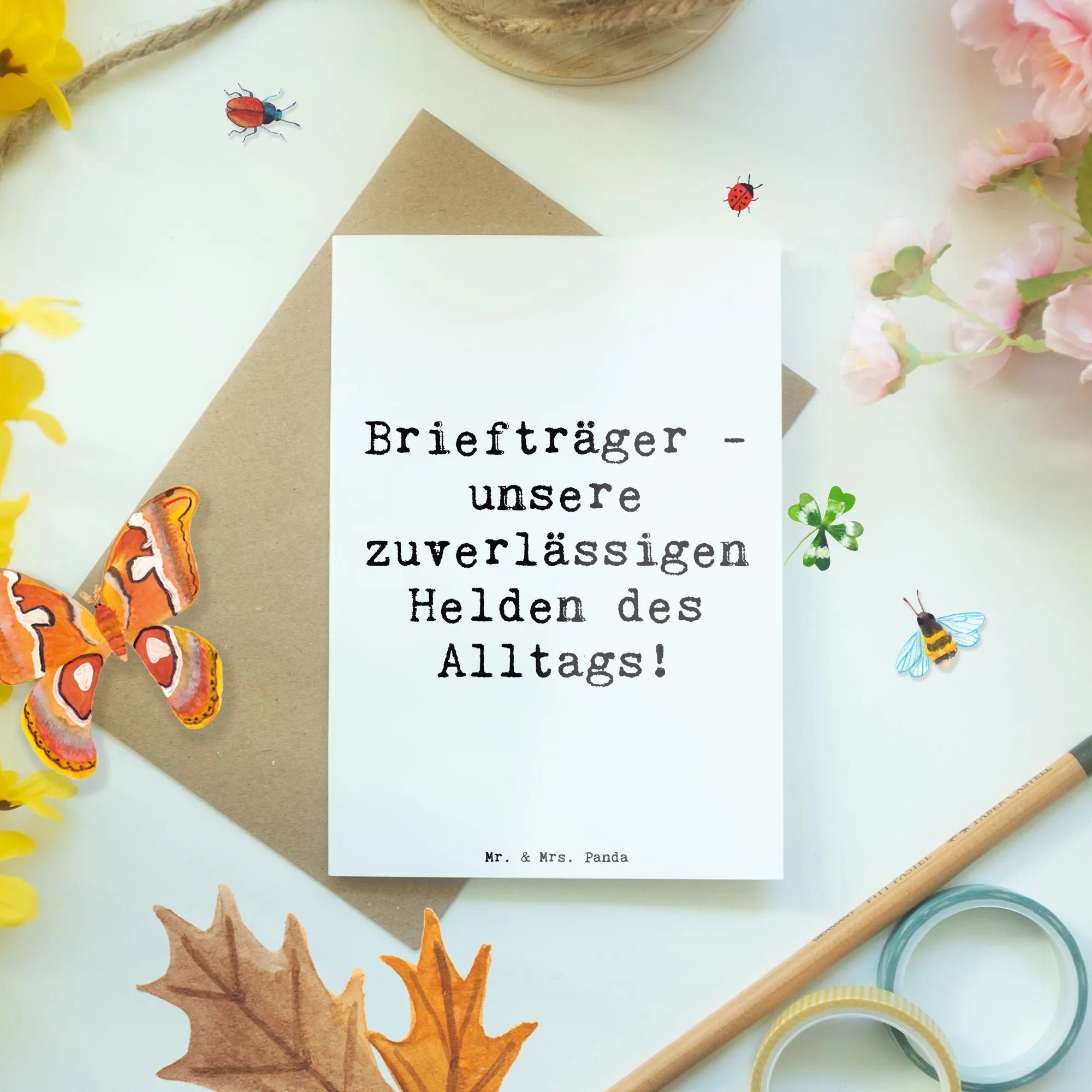Die Grußkarte "Briefträger - unsere zuverlässigen Helden des Alltags!" aus der wunderschönen Danke-Kollektion von Mr. & Mrs. Panda ist das perfekte Geschenk, um Dankbarkeit auszudrücken.
