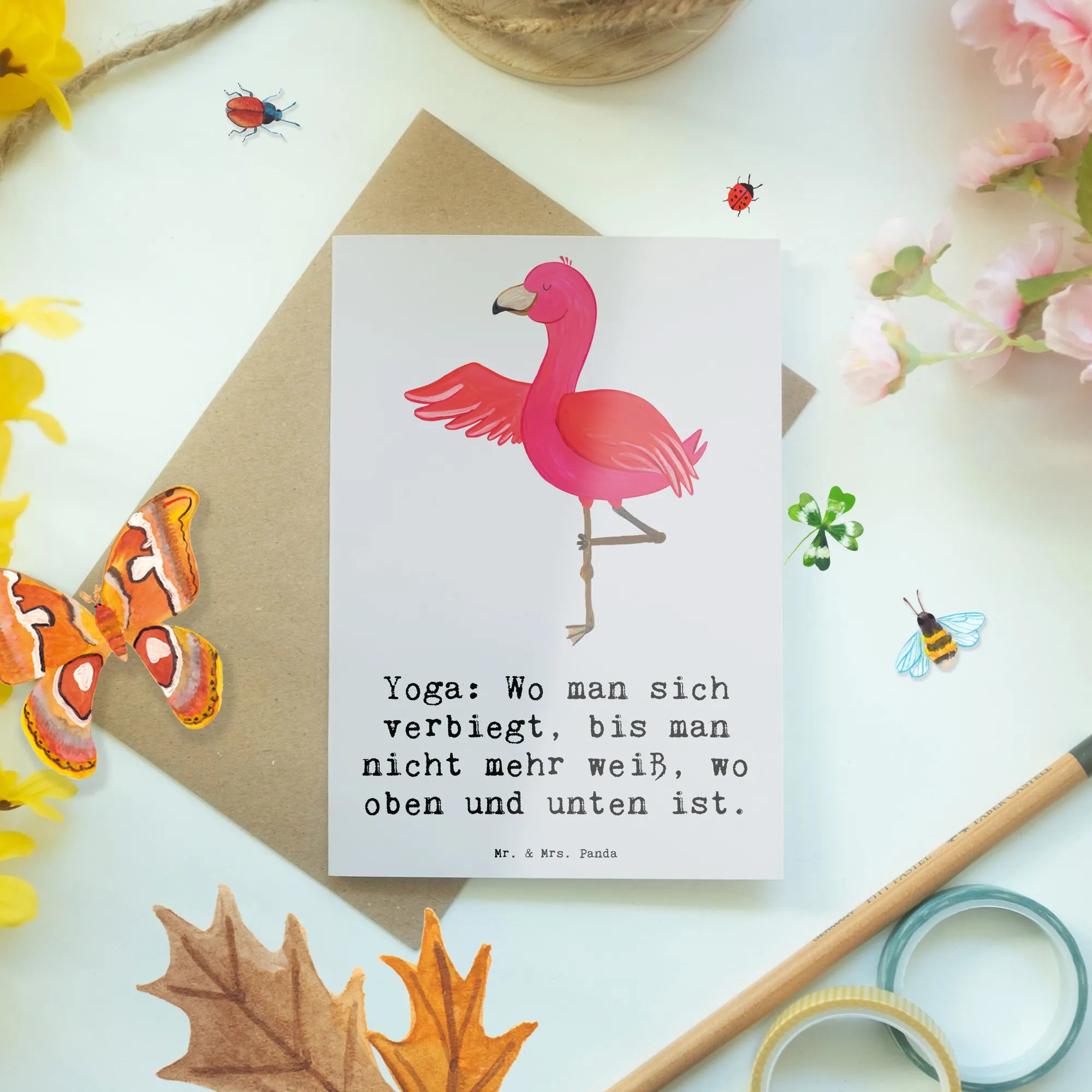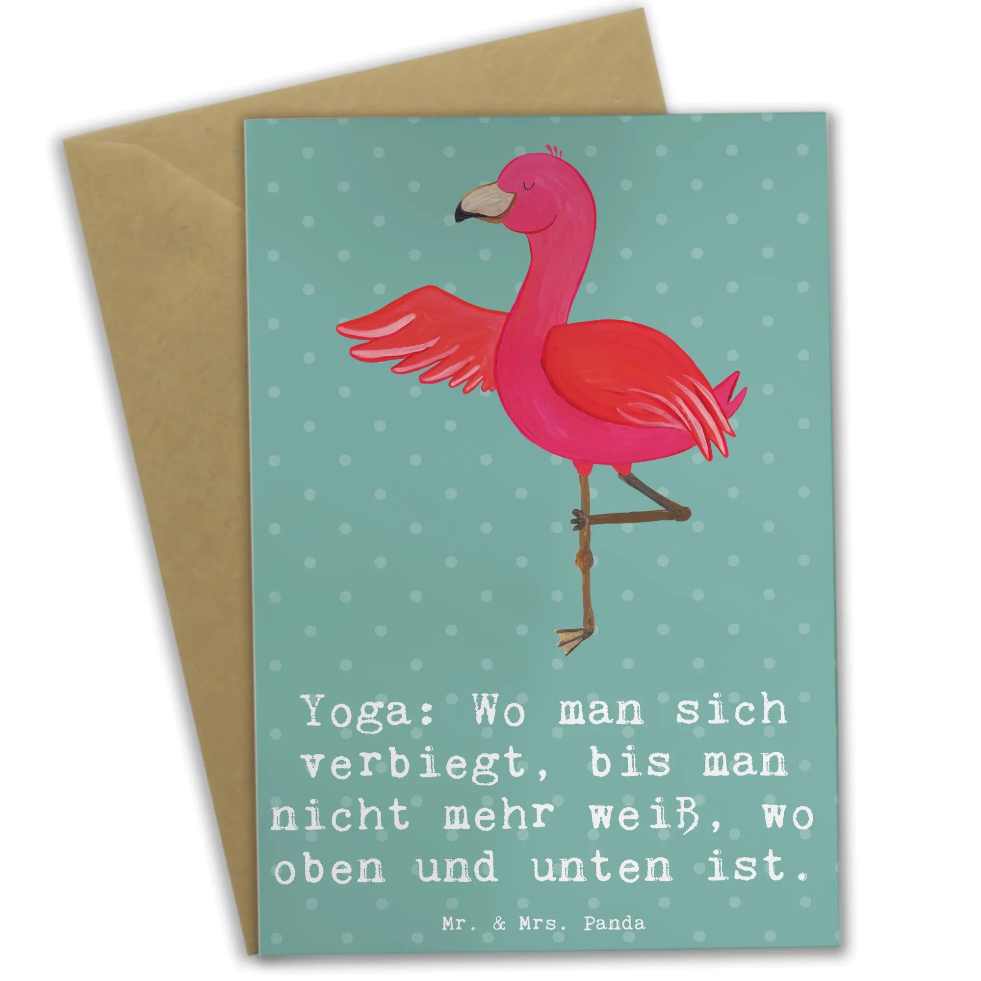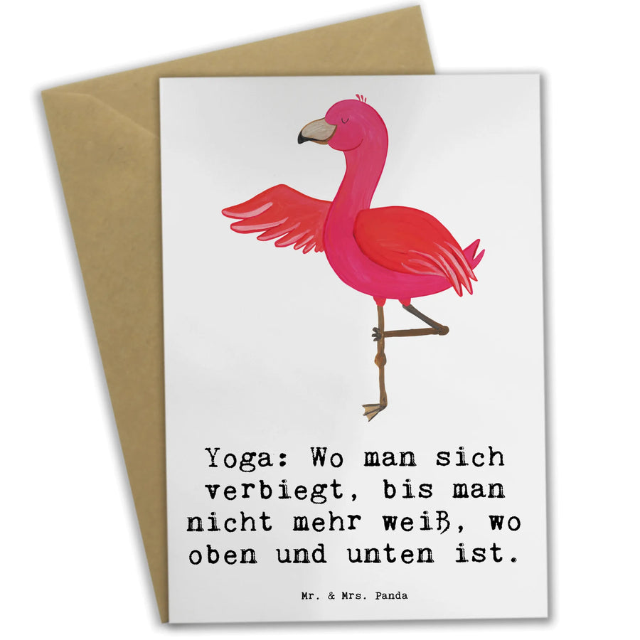 Entdecke die perfekte Grußkarte für Yoga-Enthusiasten von Mr. & Mrs. Panda! Diese einzigartige Klappkarte ist nicht nur ein einfacher Gruß, sondern ein kleines Kunstwerk, das Deinen Freunden und Verwandten ein Lächeln ins Gesicht zaubern wird. Mit dem charmanten Motiv "Yoga: Wo man sich verbiegt, bis man nicht mehr weiß, wo oben und unten ist." ist sie ein wunderbares Geschenk zu jedem Anlass, sei es ein Geburtstag, eine Hochzeit oder simply um jemandem einen schönen Tag zu wünschen.