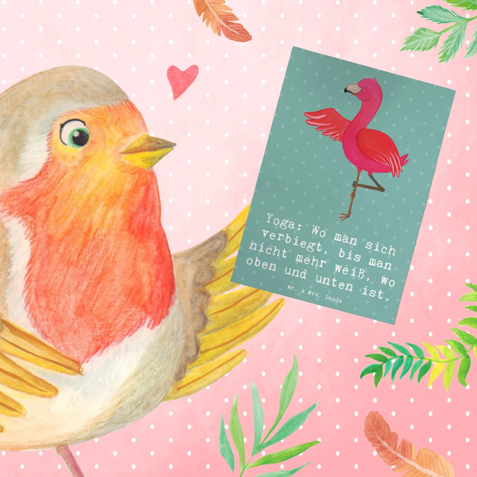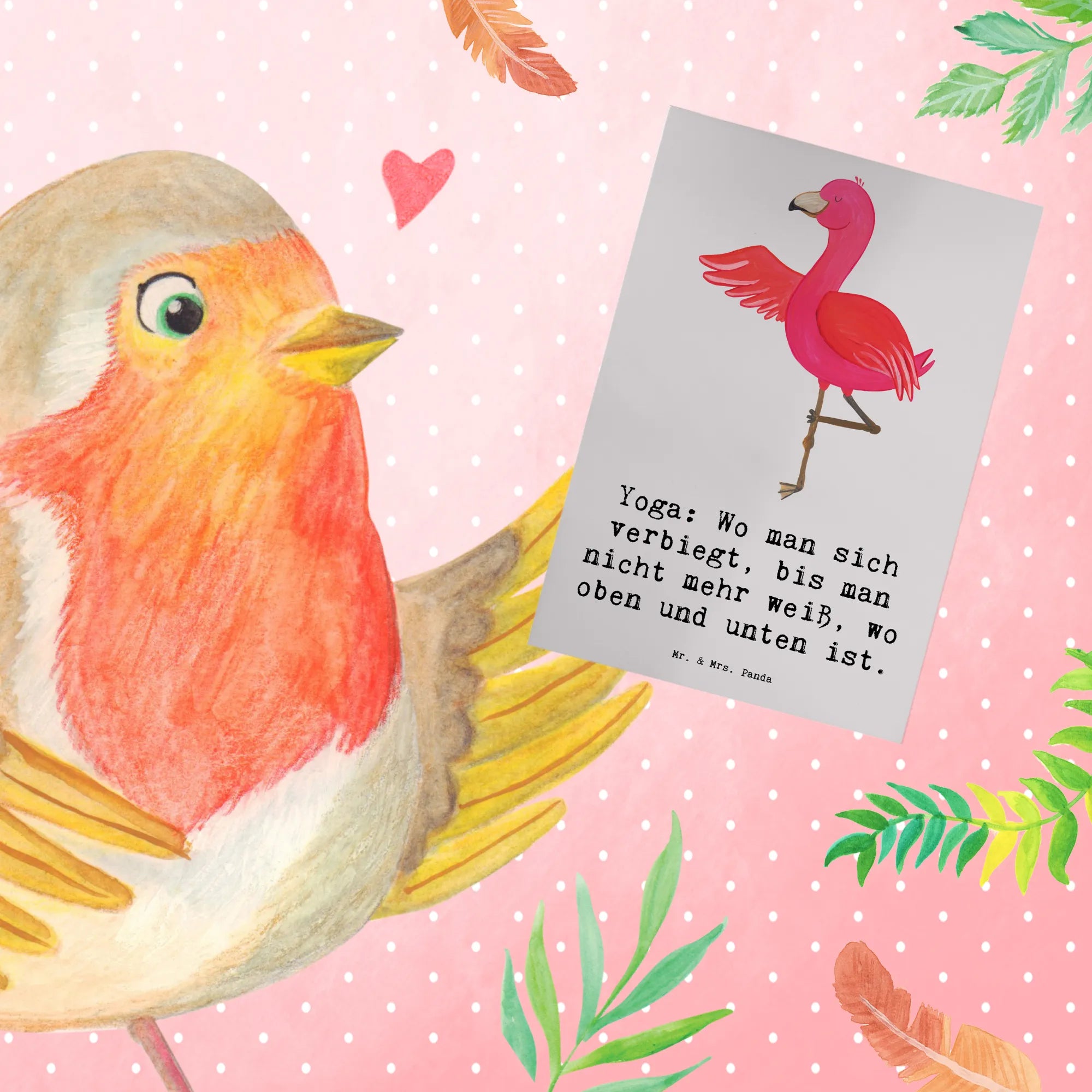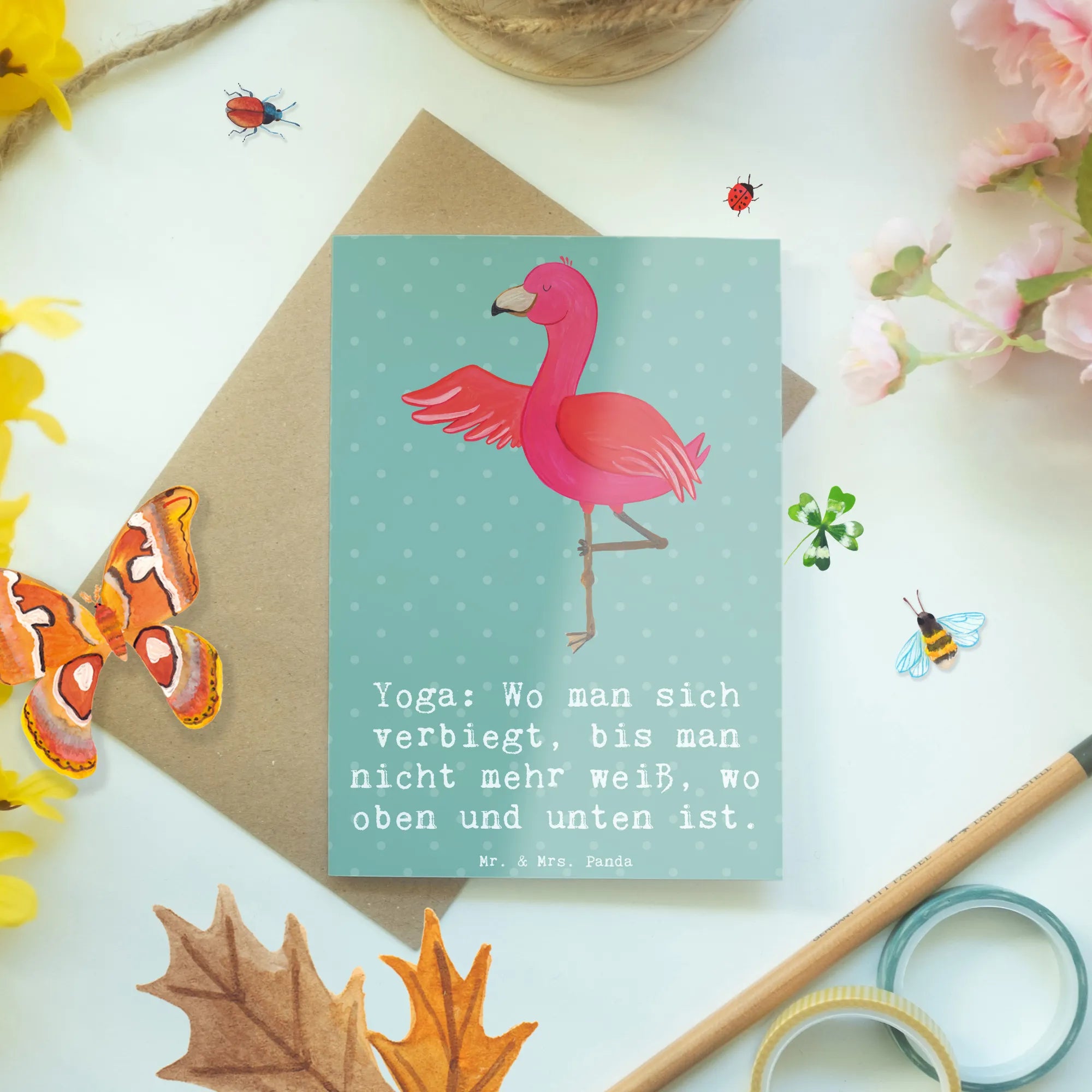 Entdecke die perfekte Grußkarte für Yoga-Enthusiasten von Mr. & Mrs. Panda! Diese einzigartige Klappkarte ist nicht nur ein einfacher Gruß, sondern ein kleines Kunstwerk, das Deinen Freunden und Verwandten ein Lächeln ins Gesicht zaubern wird. Mit dem charmanten Motiv "Yoga: Wo man sich verbiegt, bis man nicht mehr weiß, wo oben und unten ist." ist sie ein wunderbares Geschenk zu jedem Anlass, sei es ein Geburtstag, eine Hochzeit oder simply um jemandem einen schönen Tag zu wünschen.