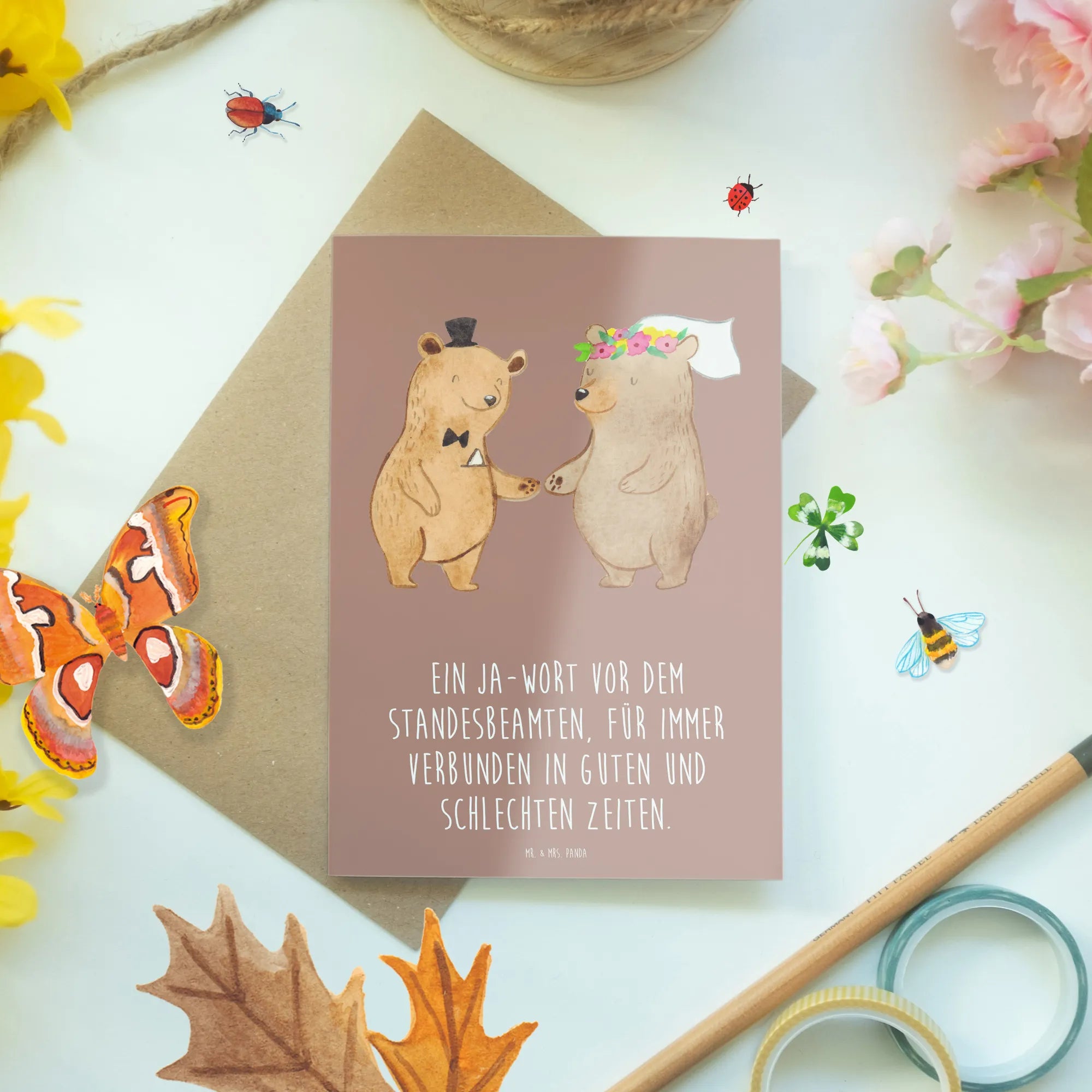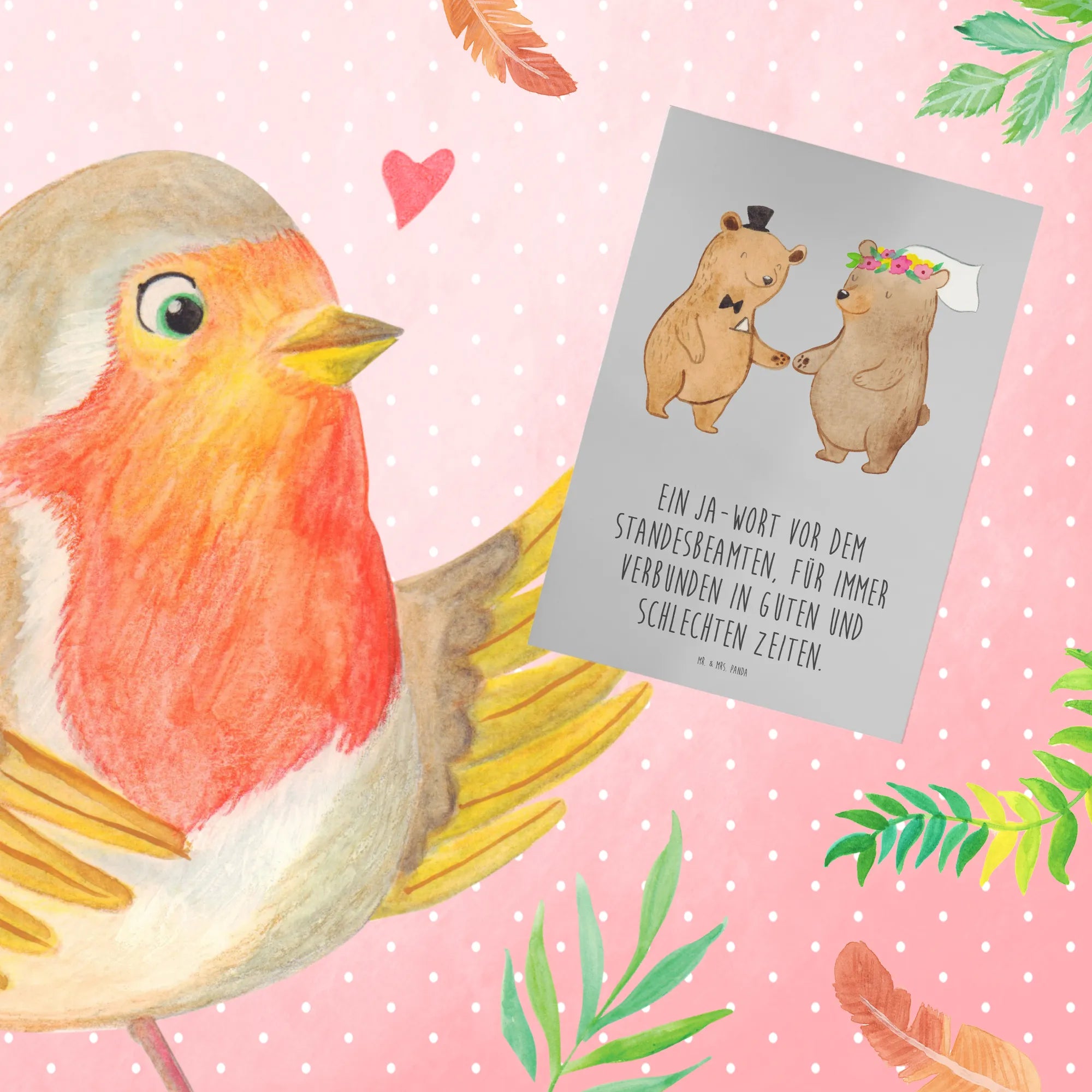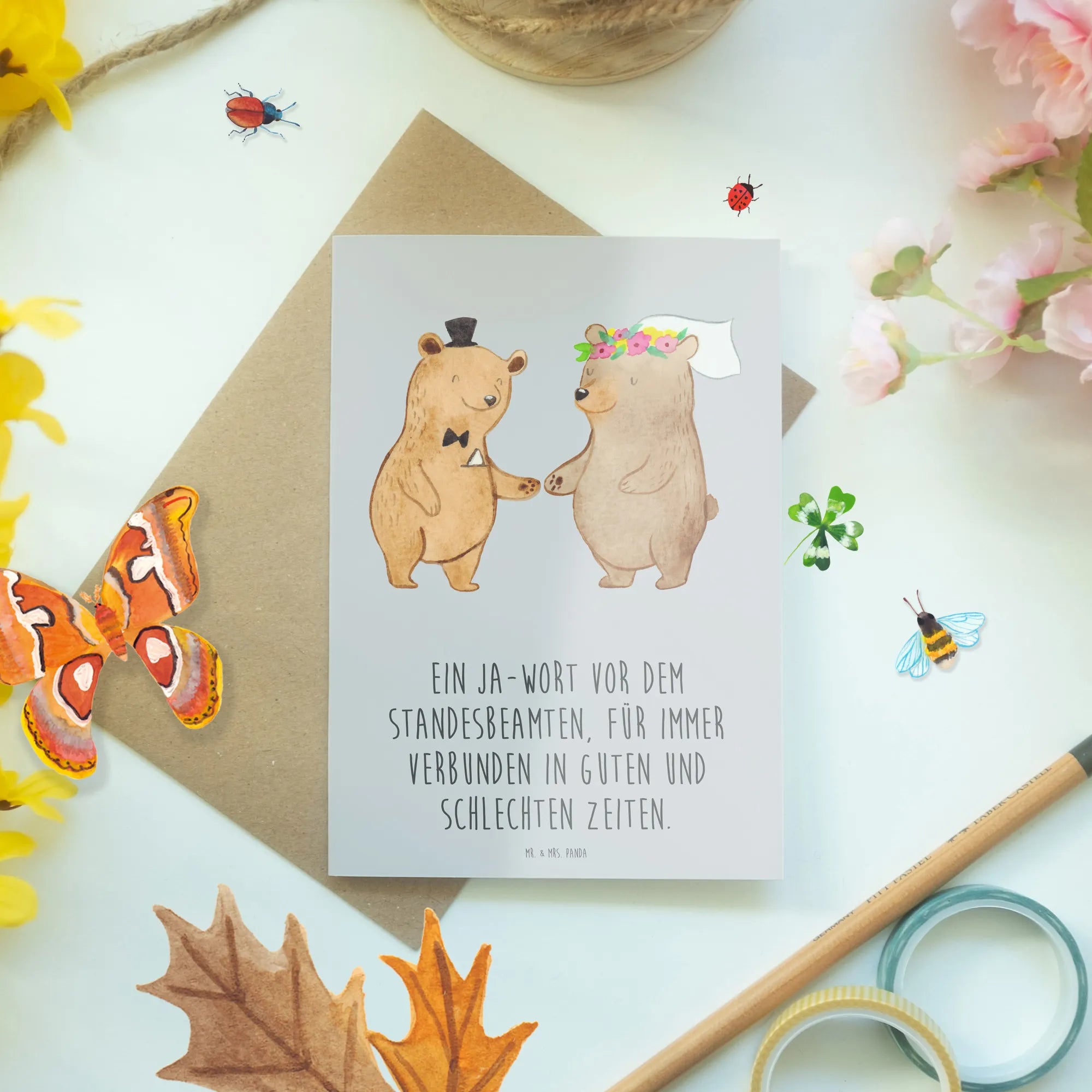 Kartka okolicznościowa Ein Ja-Wort vor dem Standesbeamten, für immer verbunden in guten und schlechten Zeiten. - biały