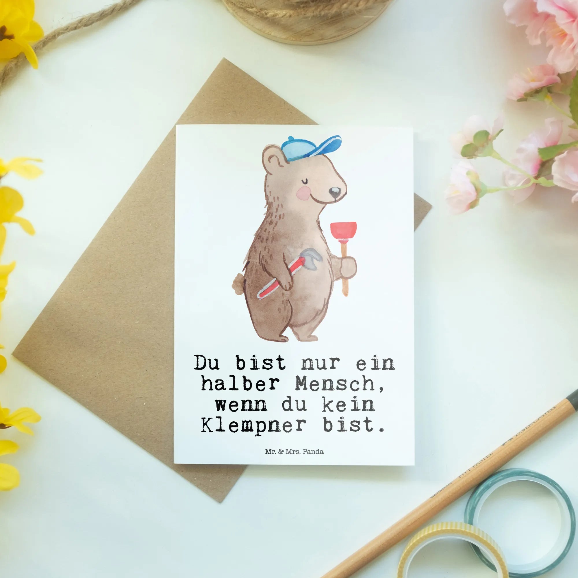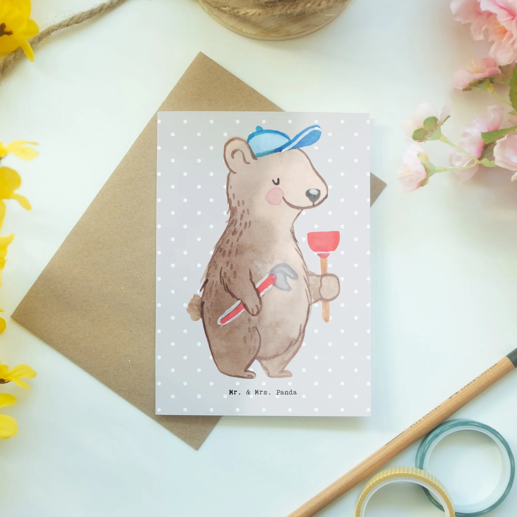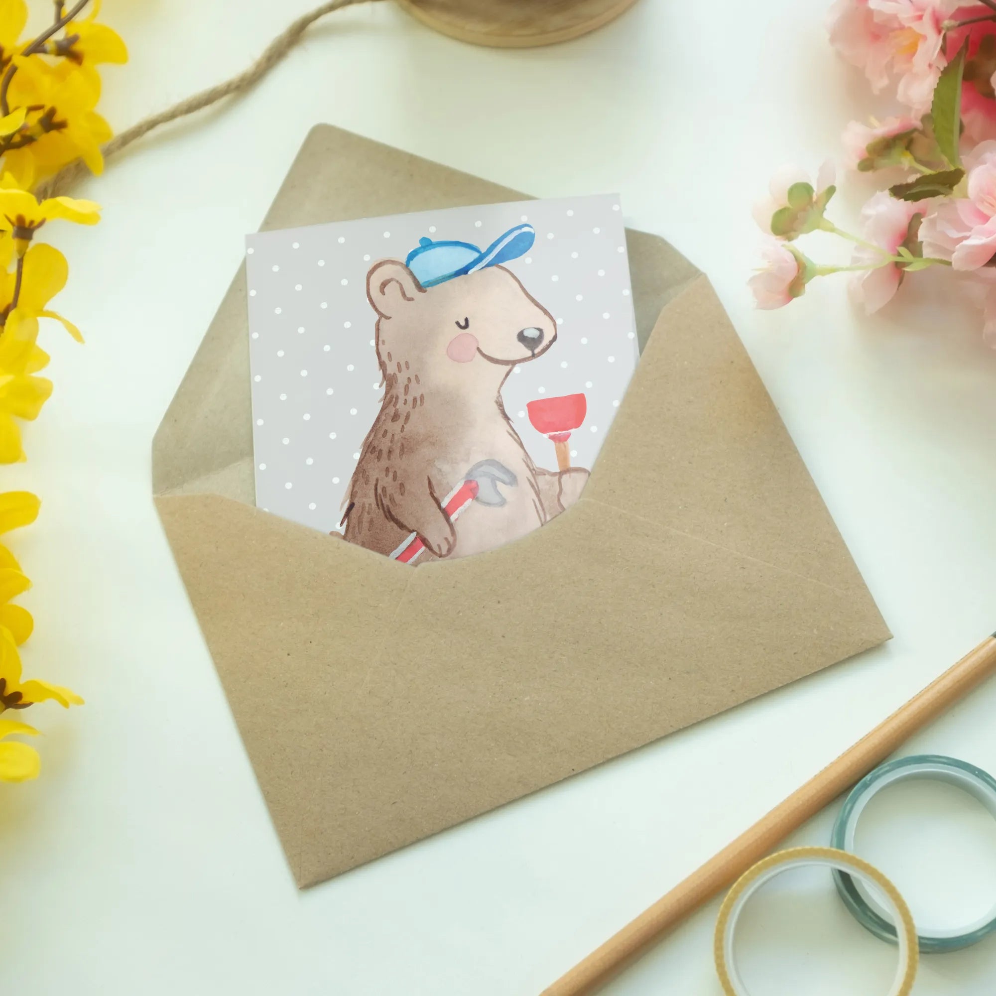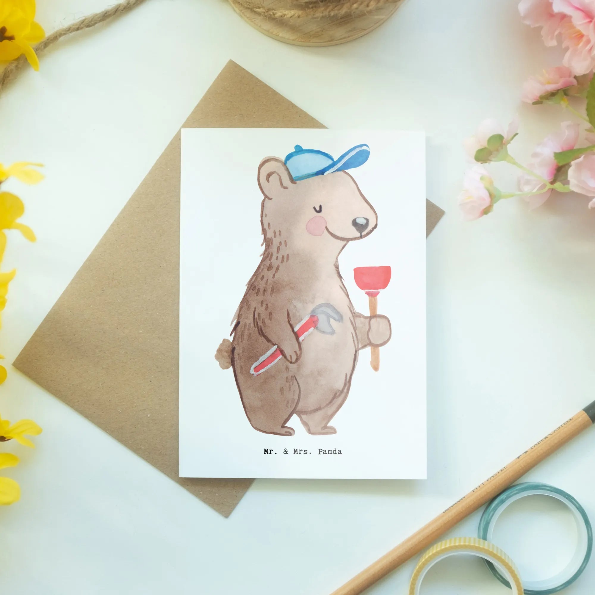Kartka okolicznościowa hydraulik serce - z napisem - Biały