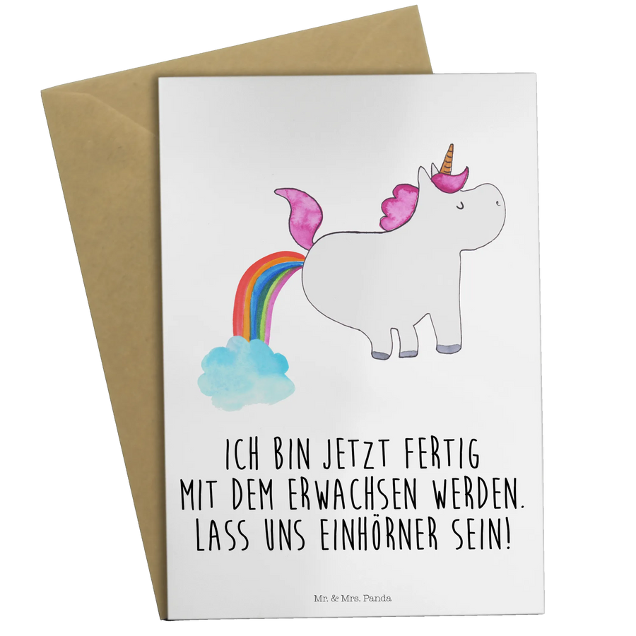 Kartka okolicznościowa Jednorożec puszczać bąki - z napisem - Biały