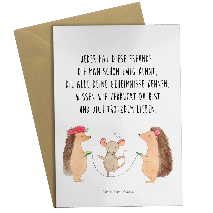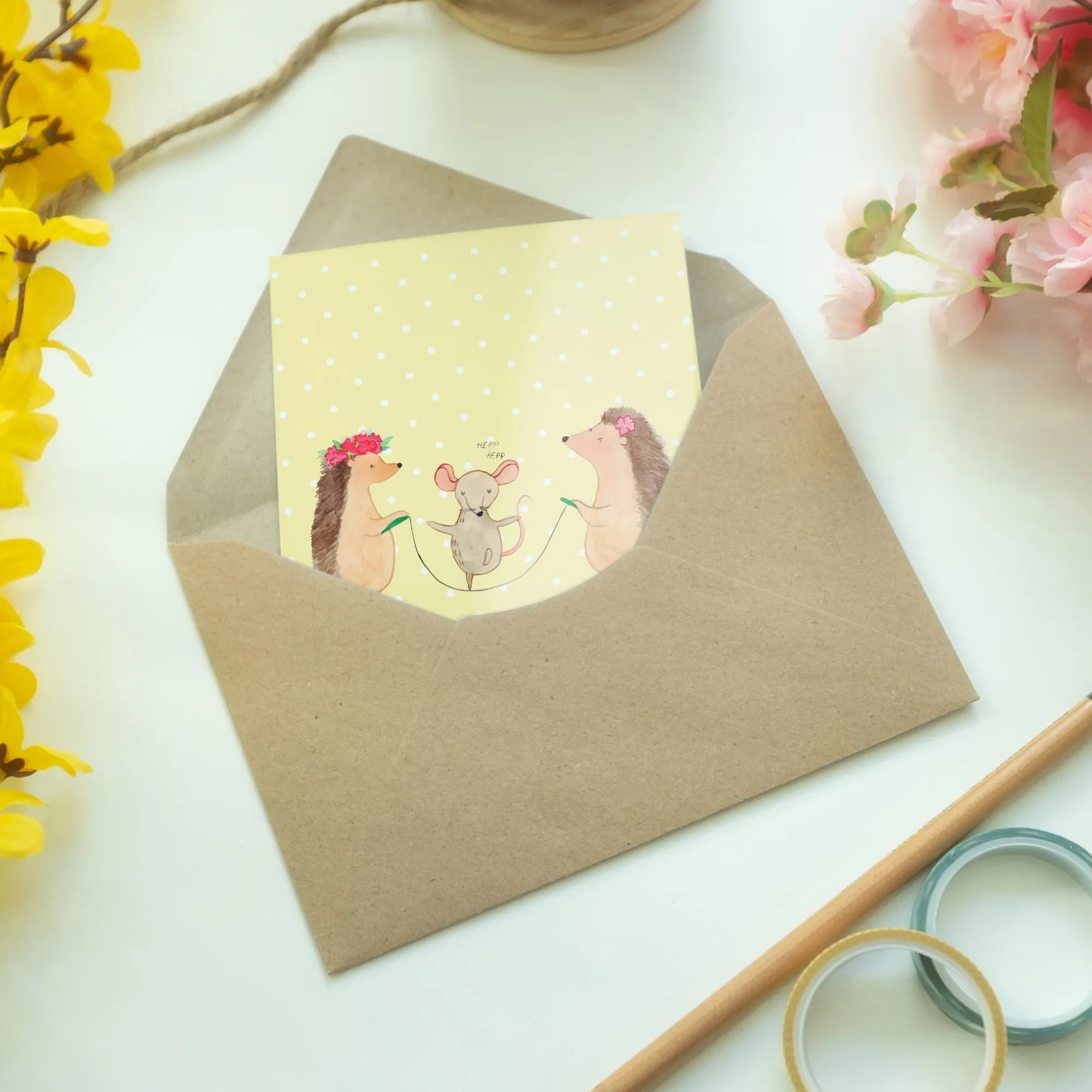 Kartka okolicznościowa jeż Skakanie na skakance - z napisem - Biały