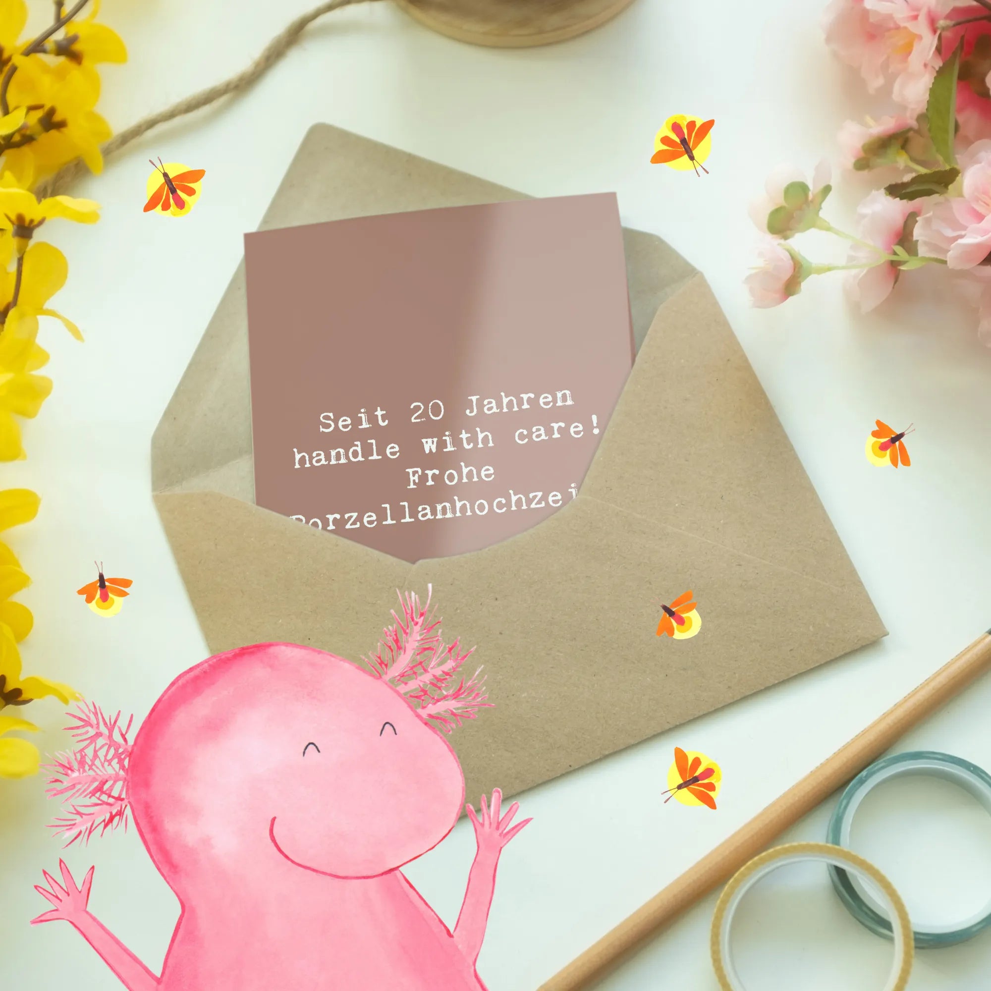Kartka okolicznościowa Powiedzenie Seit 20 Jahren handle with care! Frohe Porzellanhochzeit! - biały