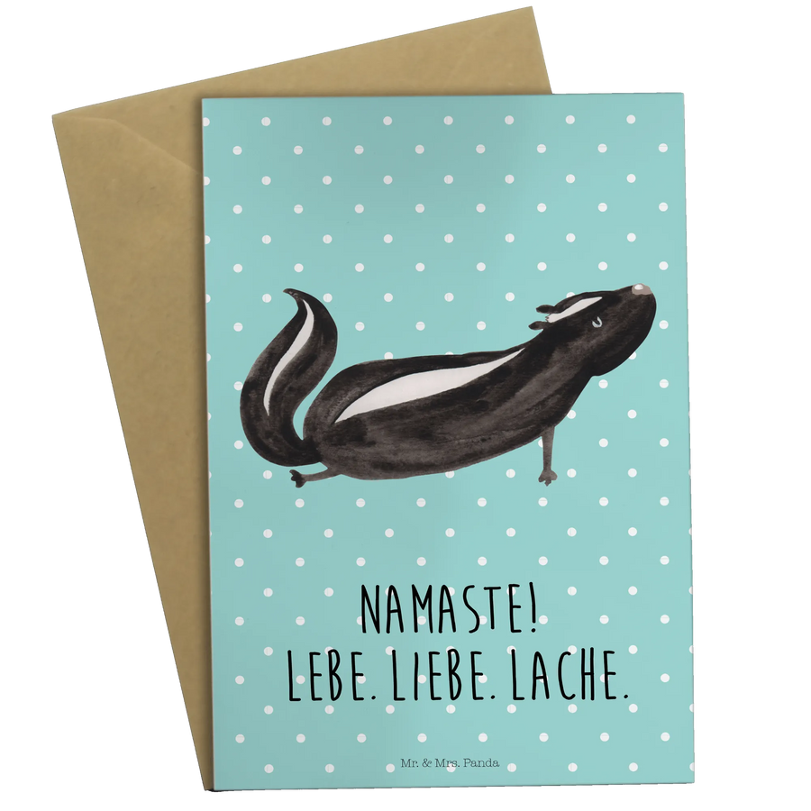 Kartka okolicznościowa skunks Joga - z napisem - Turkusowy Pastel