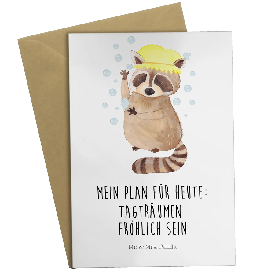 Kartka okolicznościowa Szop pracz - z napisem - Biały