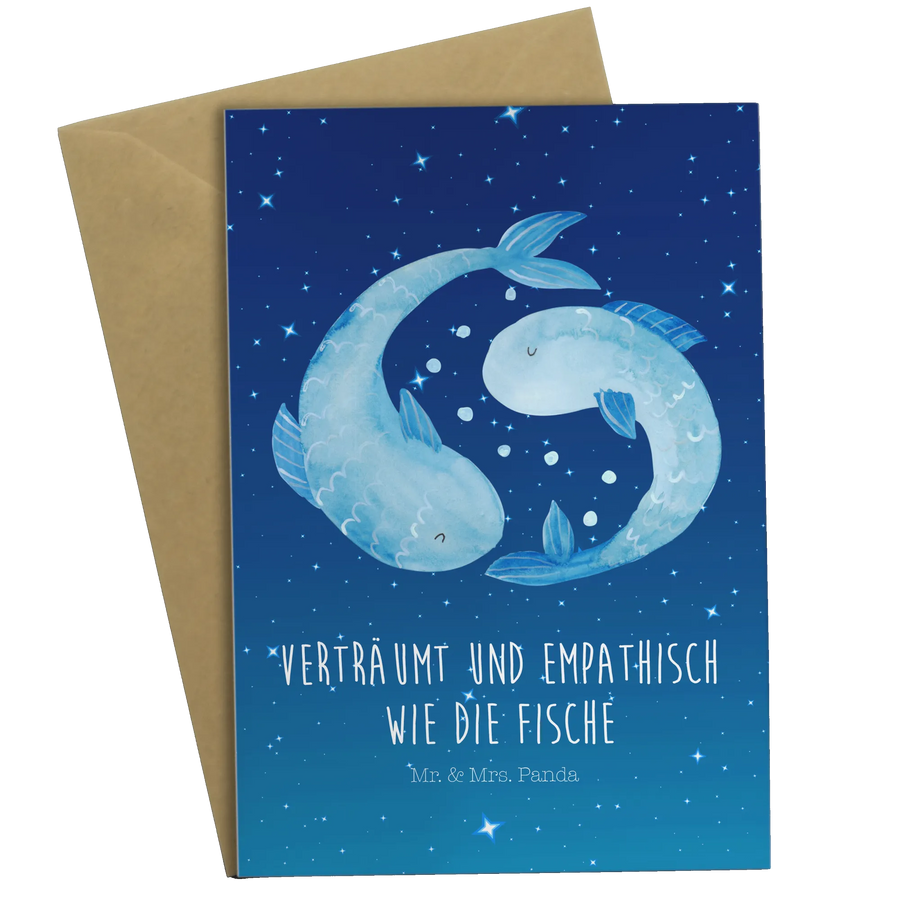 Kartka okolicznościowa znak zodiaku Ryby - z napisem - Sternenhimmel Blau