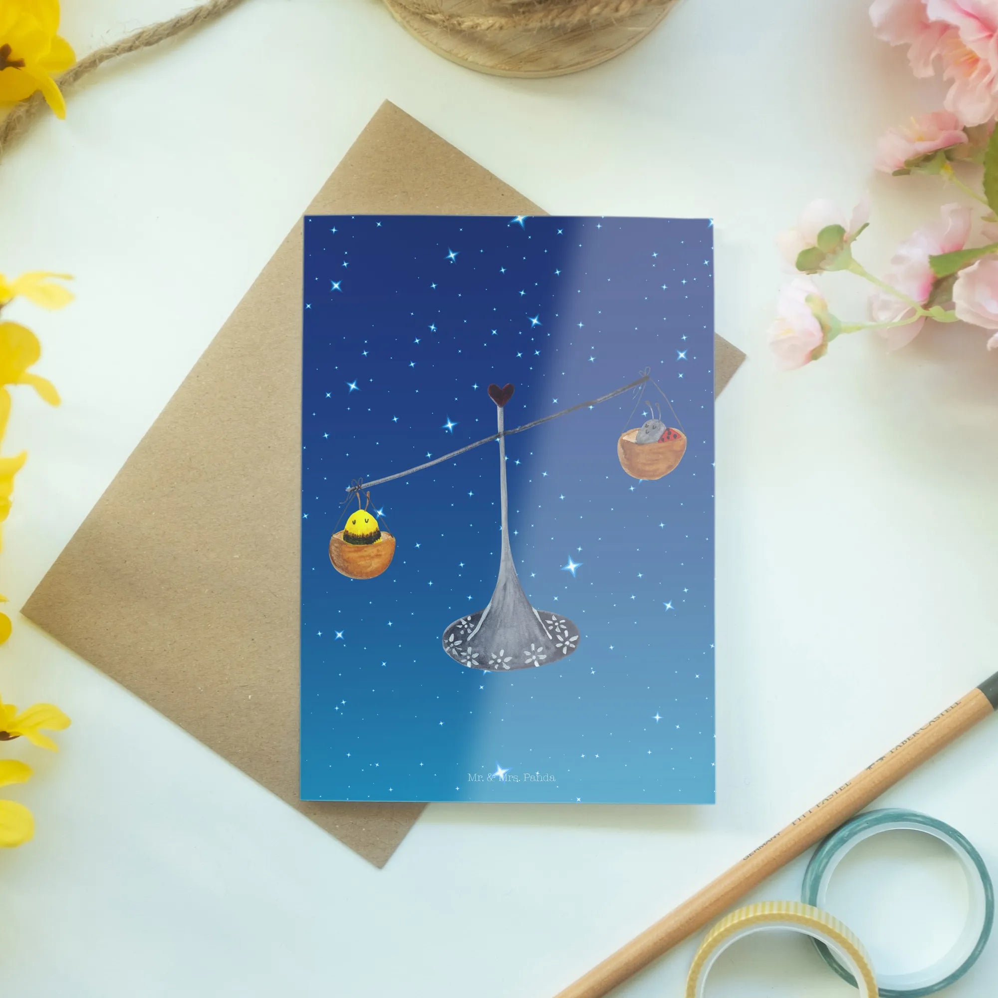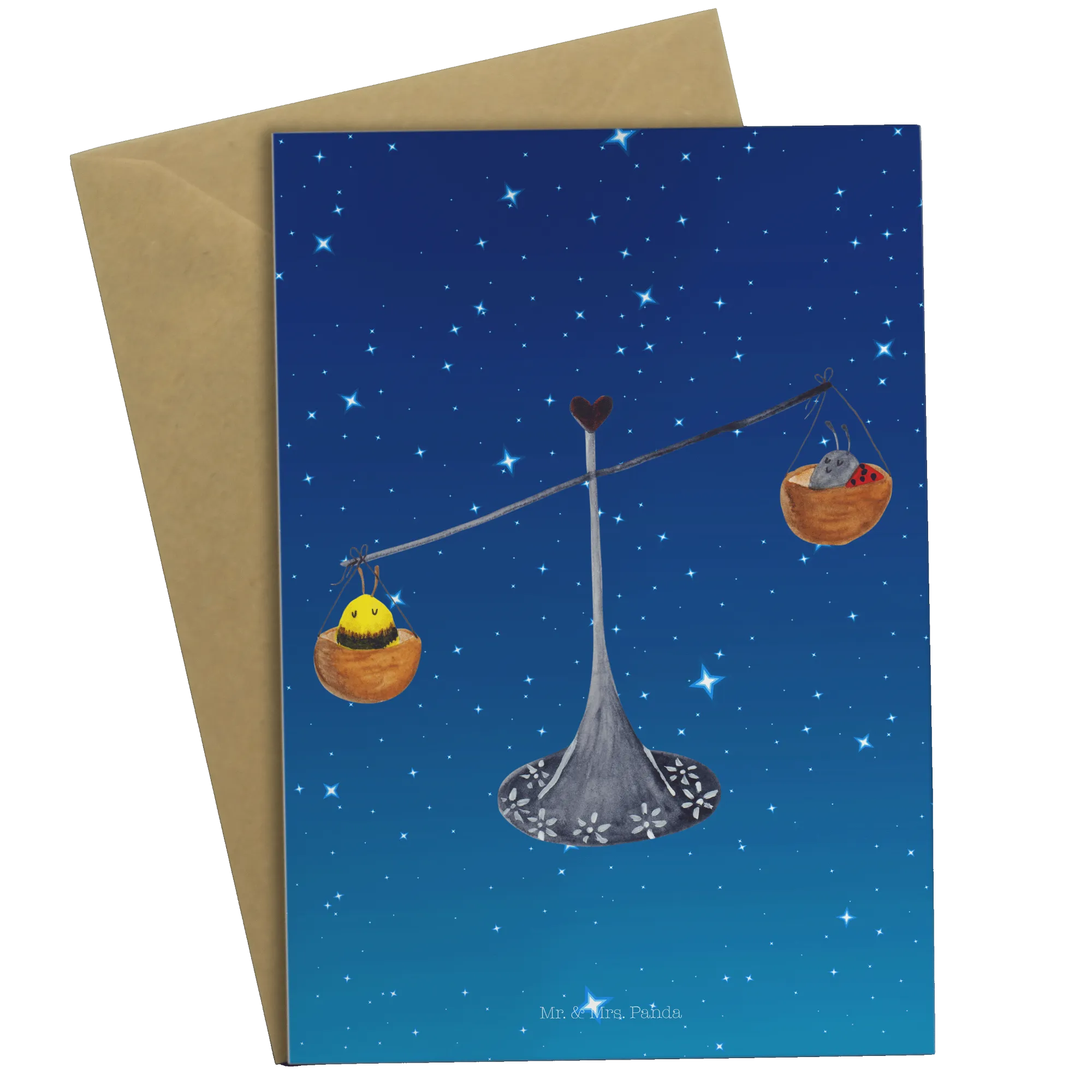 Kartka okolicznościowa Znak zodiaku waga - z napisem - Sternenhimmel Blau