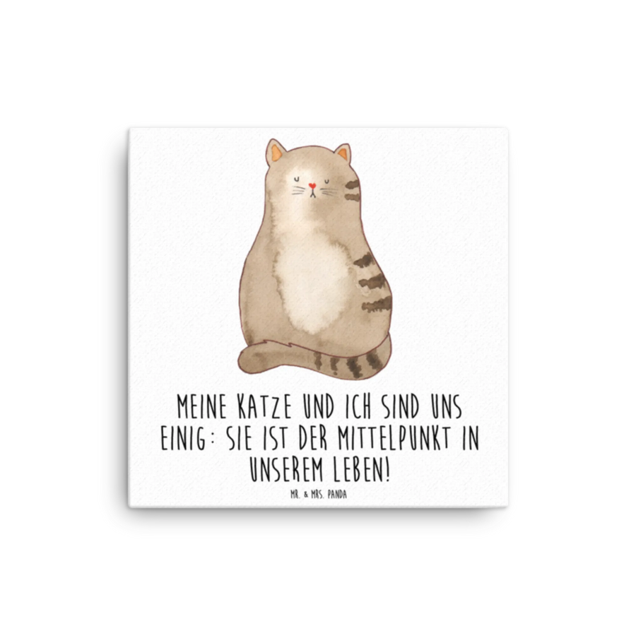 Leinwand Bild Katze Sitzen - mit Spruch - Weiß
