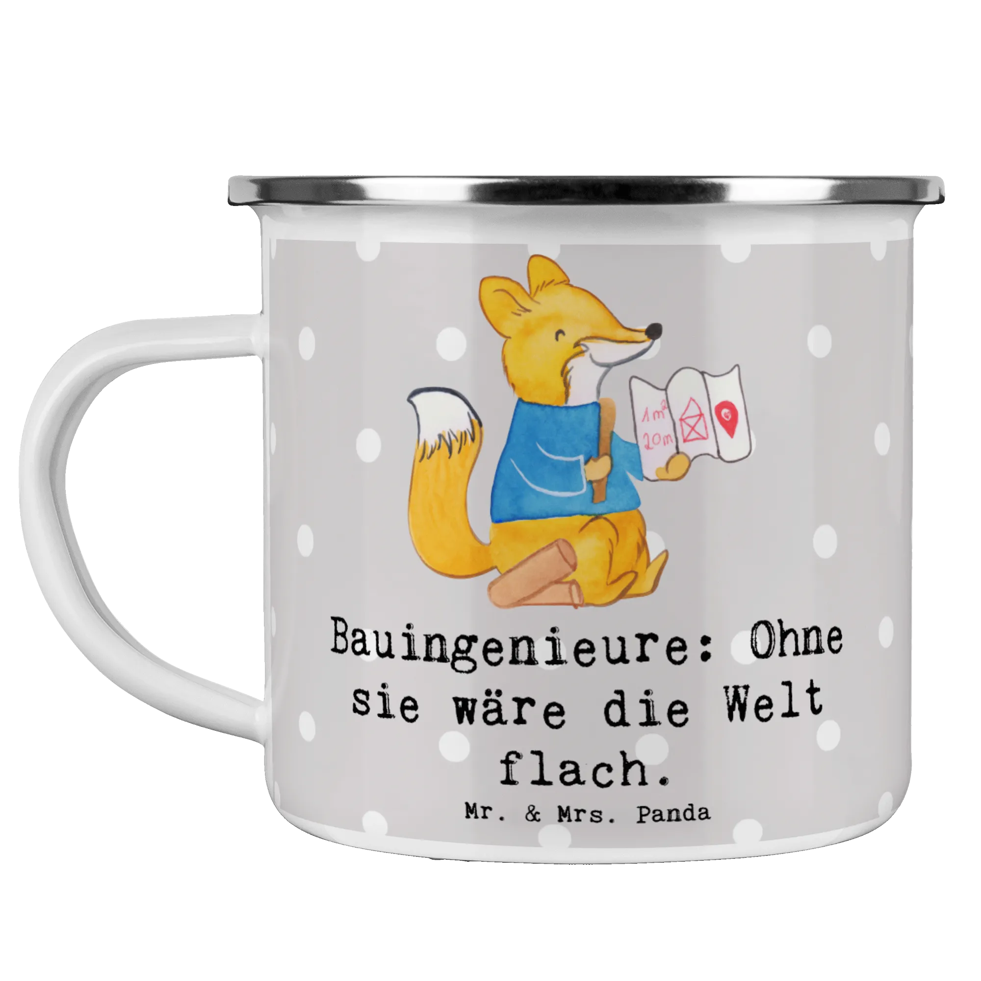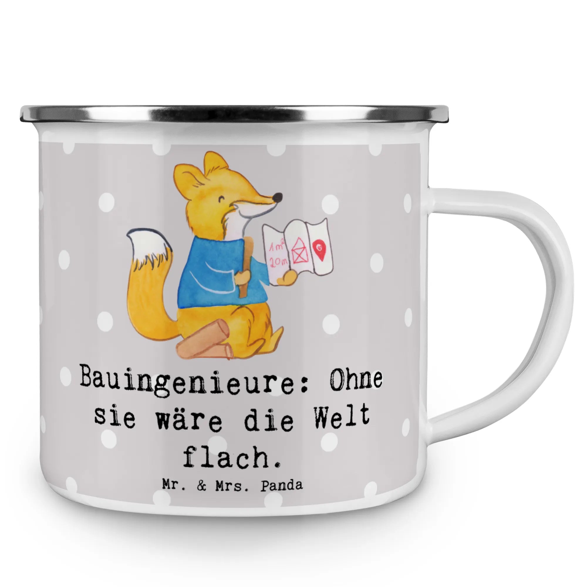 Die Camping Emaille Tasse "Bauingenieur: Ohne sie wäre die Welt flach." von Mr. & Mrs. Panda ist die perfekte Wahl für alle, die das Abenteuer lieben! Ideal für Campingausflüge und Wanderungen, vereint diese Tasse Funktionalität mit einem bezaubernden Design.