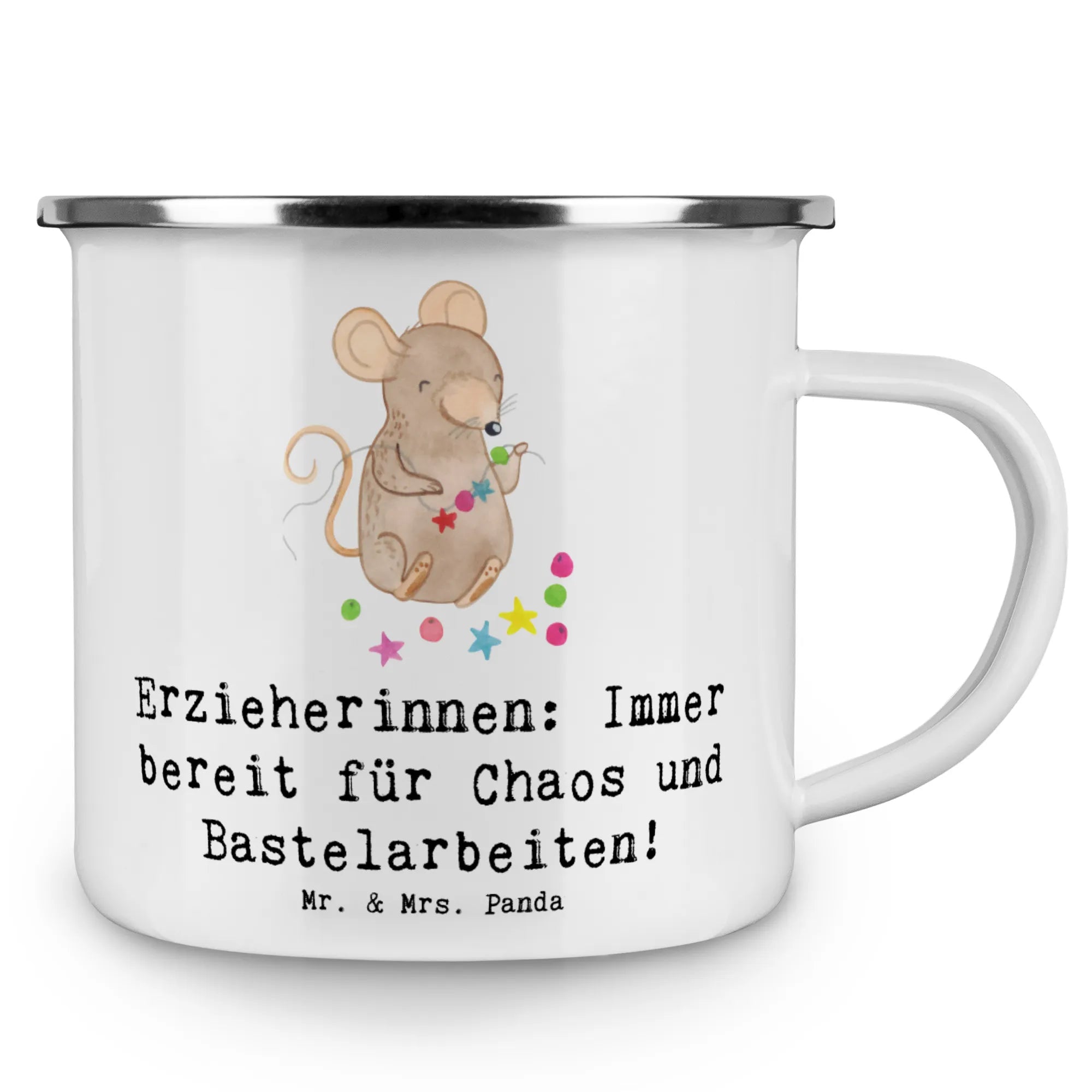 Die wunderschöne Camping Emaille Tasse von Mr. & Mrs. Panda ist das perfekte Geschenk für alle Erzieherinnen, die es lieben, die Natur zu erkunden und dabei ihre Lieblingsgetränke zu genießen. Mit dem liebevollen Slogan „Erzieherinnen: Immer bereit für Chaos und Bastelarbeiten!“ bringt sie ein Lächeln auf die Gesichter und eignet sich hervorragend für den Campingausflug oder die nächste Wanderung.