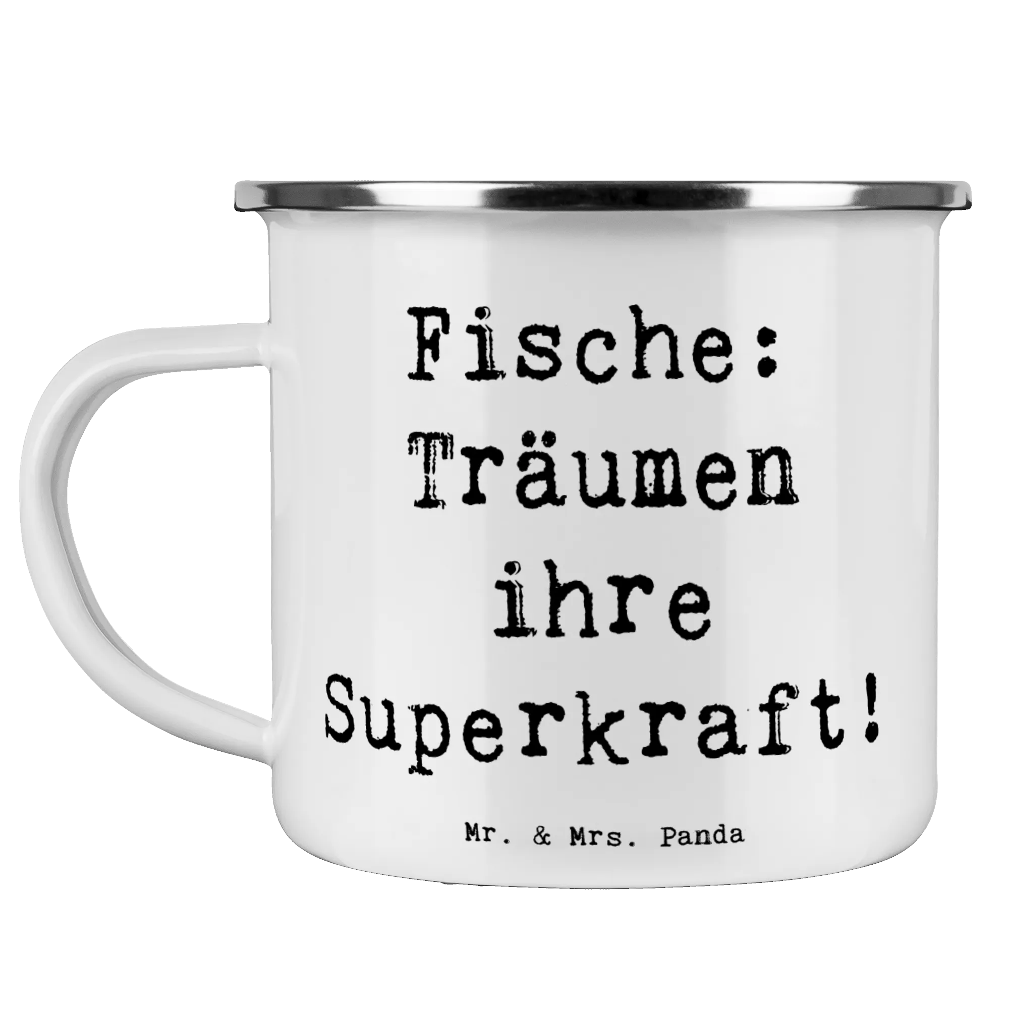 Entdecke die bezaubernde Camping Emaille Tasse von Mr. & Mrs. Panda mit dem liebevollen Motiv 'Fische: Träumen ihre Superkraft!'. Diese hochwertige Metalltasse ist der perfekte Begleiter für alle Abenteurer, die das Leben in der Natur genießen. Egal, ob du beim Camping, Wandern oder einfach nur im Garten entspannst, diese Tasse sorgt dafür, dass deine Lieblingsgetränke immer optimal temperiert sind.