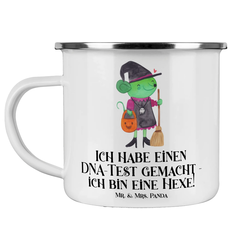 Die Camping Emaille Tasse von Mr. & Mrs. Panda ist der perfekte Begleiter für alle Abenteuerlustigen und Halloween-Fans. Diese wunderschöne und beständige Tasse bringt nicht nur Funktionalität, sondern auch ein Hauch von Grusel in dein Camping-Erlebnis. Ob beim gemütlichen Lagerfeuer oder beim Ausblick auf die Herbstlandschaft - mit dem lustigen Spruch "Ich habe einen DNA-Test gemacht - ich bin eine Hexe!" zauberst du ein Lächeln in jedes Gesicht.