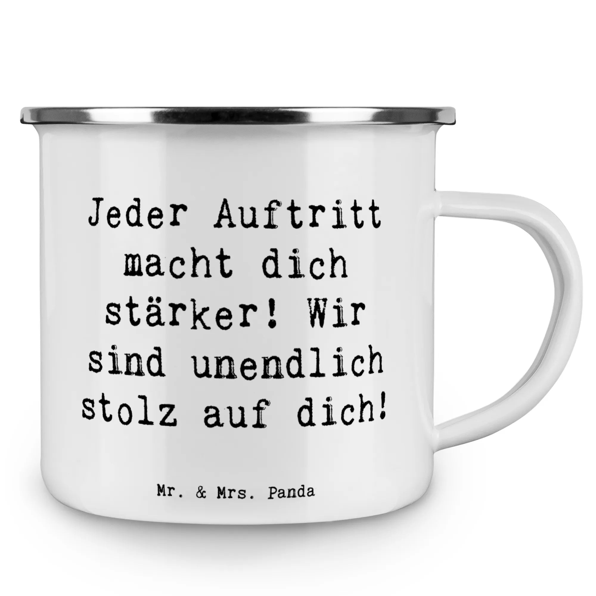 Die Camping Emaille Tasse 'Vokale und musikalische Auftritte meistern' aus der zauberhaften Mutmacher Kollektion von Mr. & Mrs. Panda ist das perfekte Geschenk für alle, die den Prüfungen des Lebens standhalten und ihre Talente mit Zuversicht präsentieren möchten. Diese Tasse, gefertigt aus kratzfester Emaille, ist ideal für die Outdoor-Liebhaber unter uns. Ob beim Camping oder beim gemütlichen Wanderurlaub, sie sorgt dafür, dass Deine Lieblingsgetränke immer griffbereit sind.