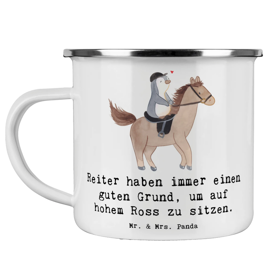 Camping Emaille Tasse Reitsport Stolz - Weiß
