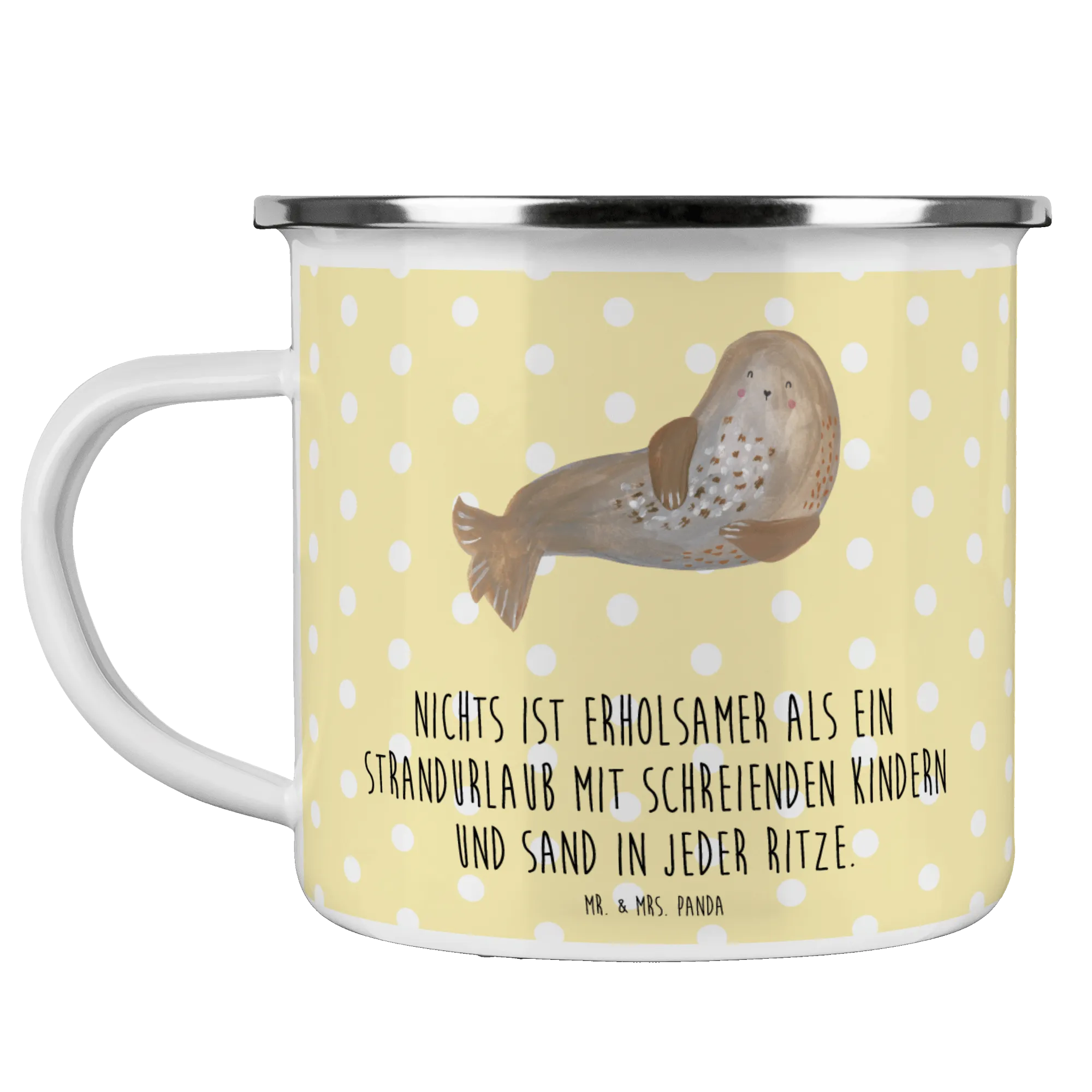 Lass dich von der Leichtigkeit und Fröhlichkeit des Sommers inspirieren und bringe einen Hauch von Urlaub in deinen Alltag mit der Camping Emaille Tasse von Mr. & Mrs. Panda.