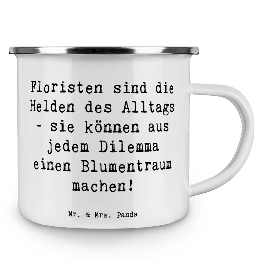 Die perfekte Camping Emaille Tasse für Floristen – ideal für Outdoor-Abenteuer! Diese wunderschöne und beständige Metalltasse von Mr. & Mrs. Panda ist mehr als nur ein Trinkbehälter; sie ist ein Ausdruck Deiner Leidenschaft für Blumen und die Natur. Bedruckt mit dem liebevollen Spruch "Floristen sind die Helden des Alltags - sie können aus jedem Dilemma einen Blumentraum machen!", wird diese Tasse schnell zu Deinem Begleiter bei all Deinen Ausflügen.