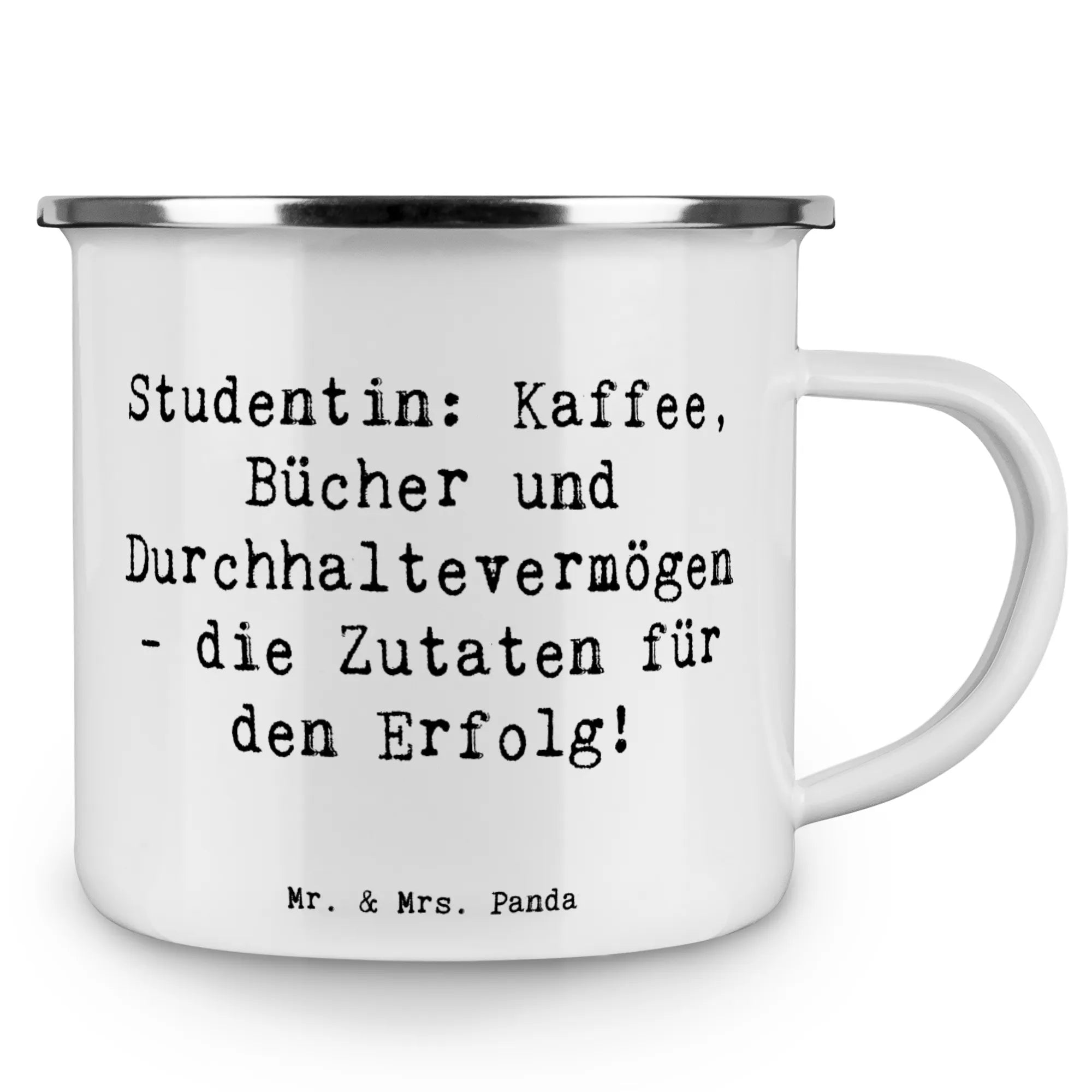 Camping Emaille Tasse Spruch Studentin: Kaffee, Bücher und Durchhaltevermögen - die Zutaten für den Erfolg!