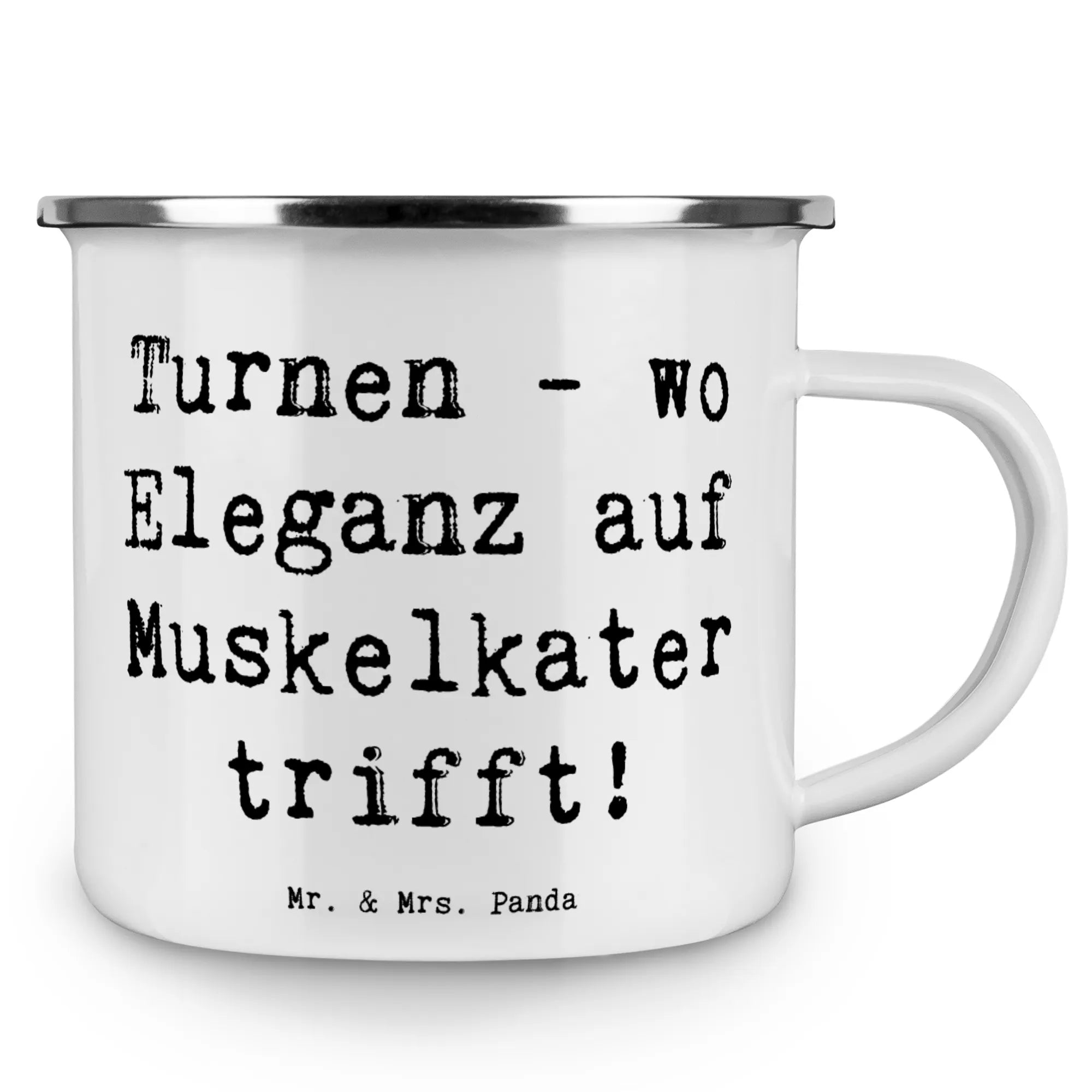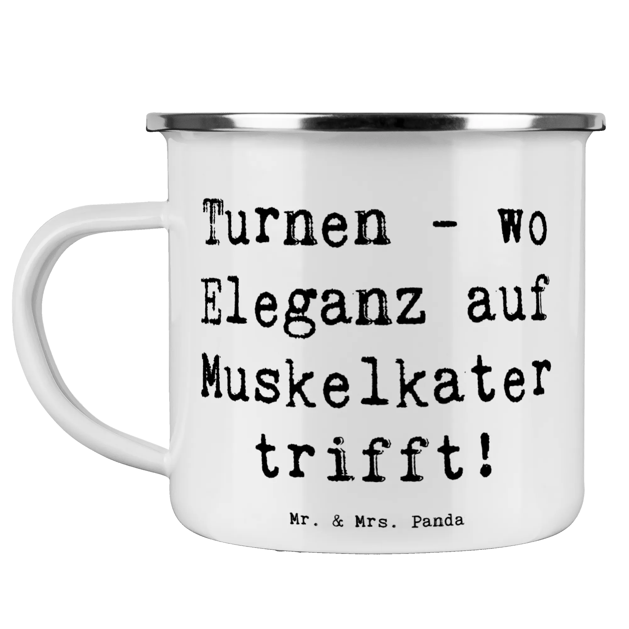 Die Camping Emaille Tasse "Turnen" von Mr. & Mrs. Panda ist das perfekte Geschenk für alle Sportbegeisterte, die mit Eleganz und Leidenschaft ihre Lieblingssportart ausüben. Mit dem Slogan "Turnen - wo Eleganz auf Muskelkater trifft!" vereint diese Tasse stilvolles Design und praktischen Nutzen. Ob beim Camping, in der Natur oder beim nächsten Wettkampf – diese Tasse ist stets zur Stelle.