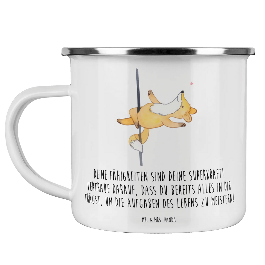 Die wunderschöne Camping Emaille Tasse von Mr. & Mrs. Panda ist mehr als nur ein praktisches Trinkgefäss – sie ist ein mutmachendes Symbol deiner inneren Stärke! Mit dem inspirierenden Spruch 'Deine Fähigkeiten sind deine Superkraft! Vertraue darauf, dass du bereits alles in dir trägst, um die Aufgaben des Lebens zu meistern!' ist diese Tasse der perfekte Begleiter für jeden, der gerne draußen ist, sei es beim Camping, Wandern oder einfach beim gemütlichen Ausflug ins Grüne.