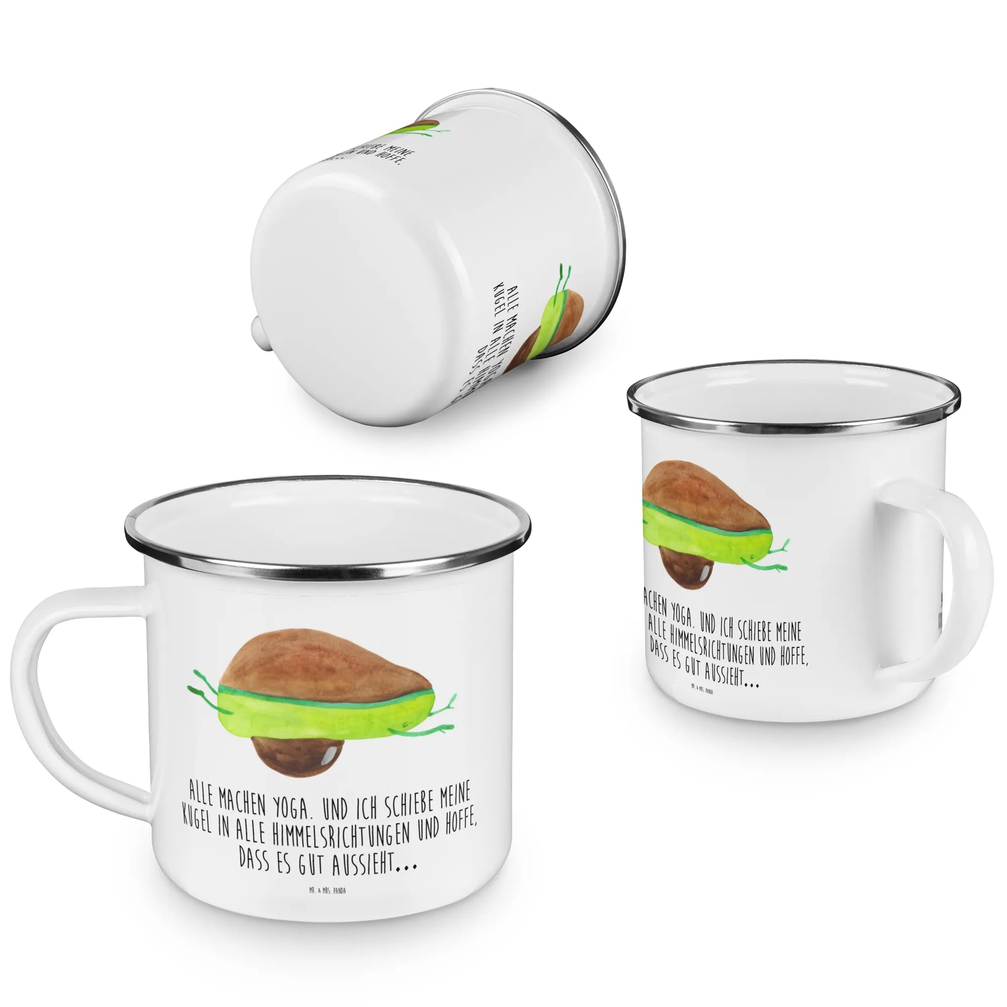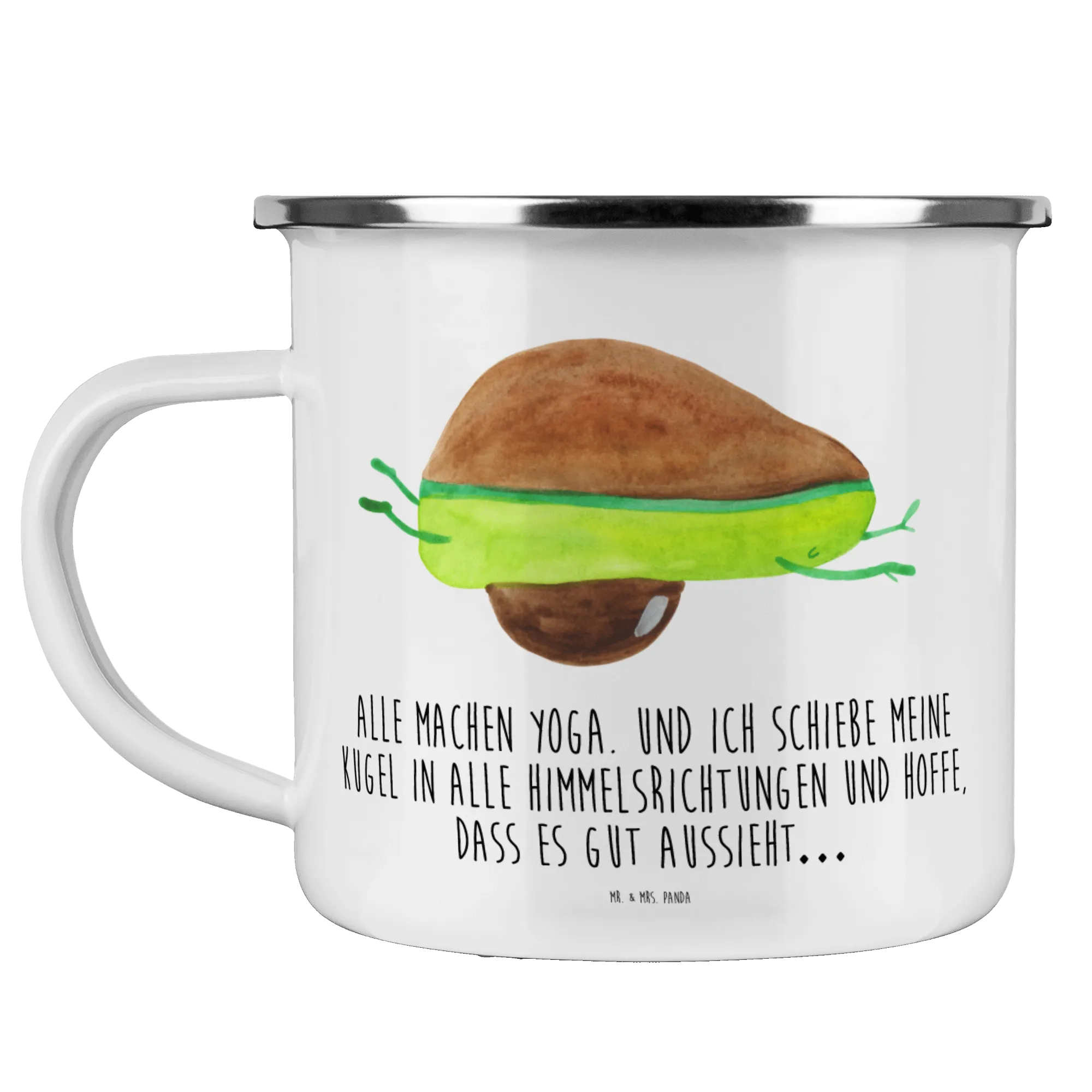 Kempingowy kubek emaliowany Awokado joga - z napisem - biały