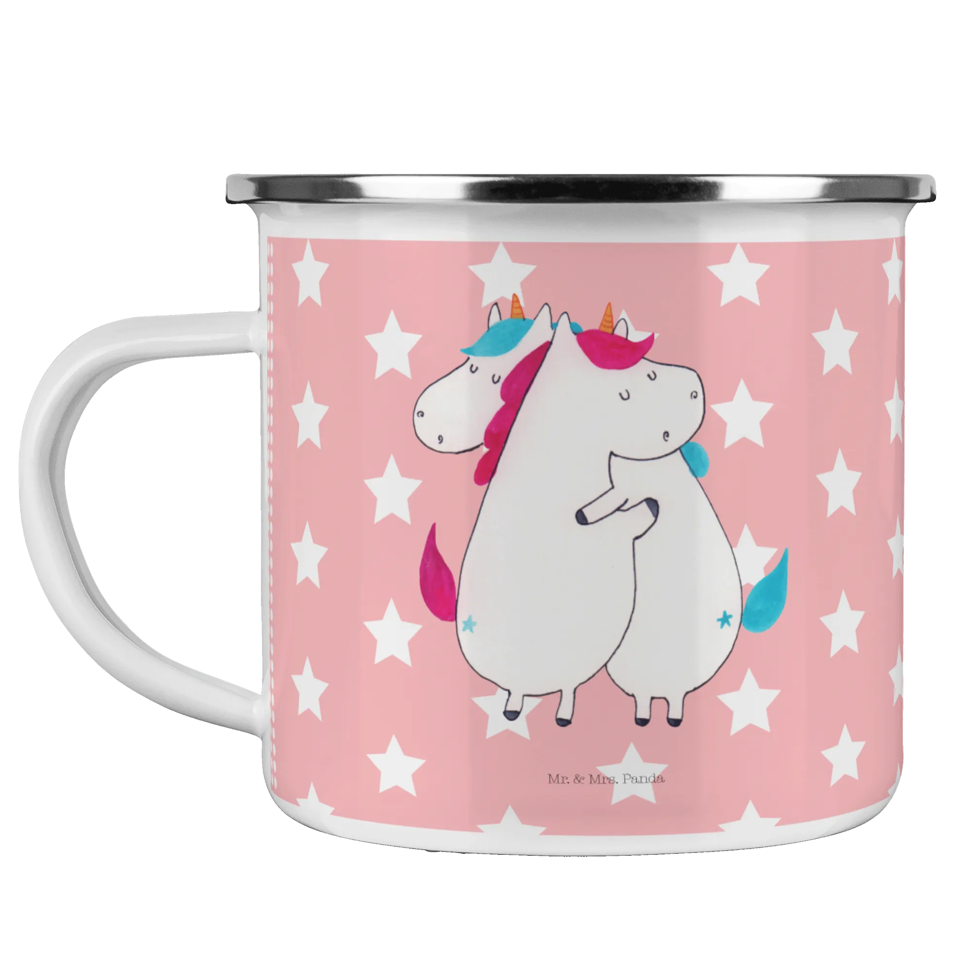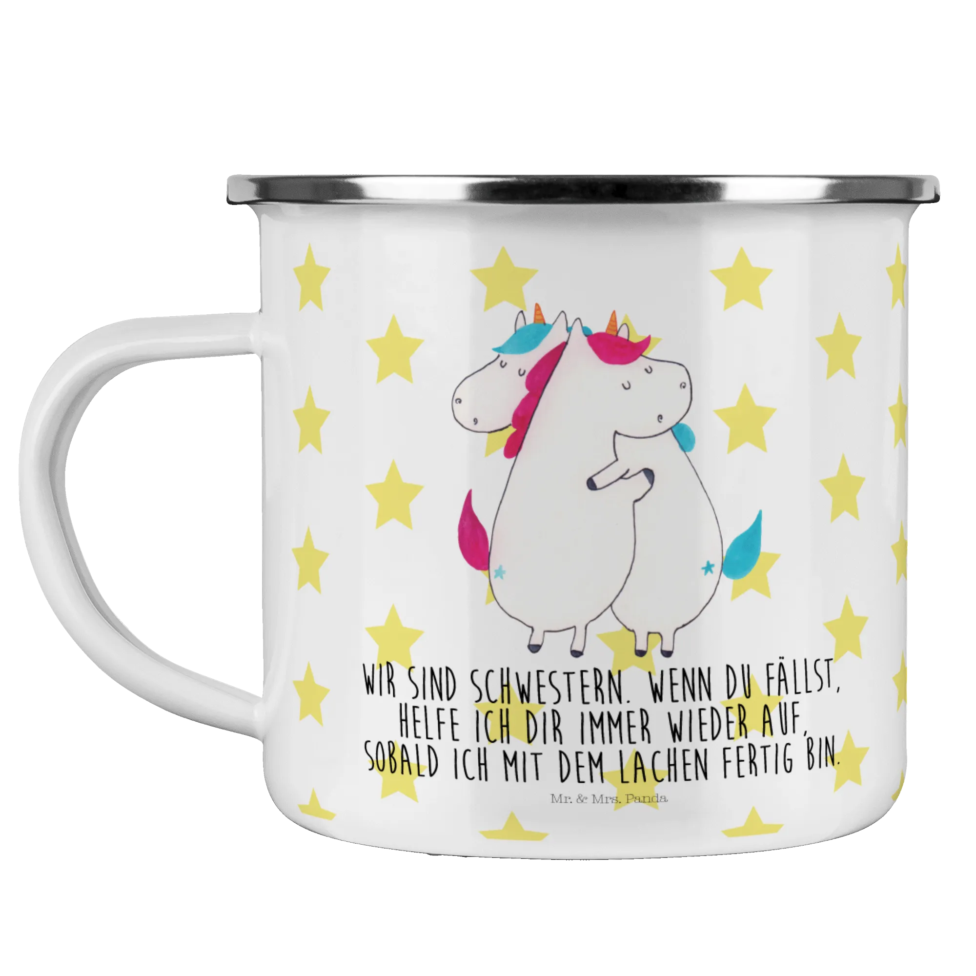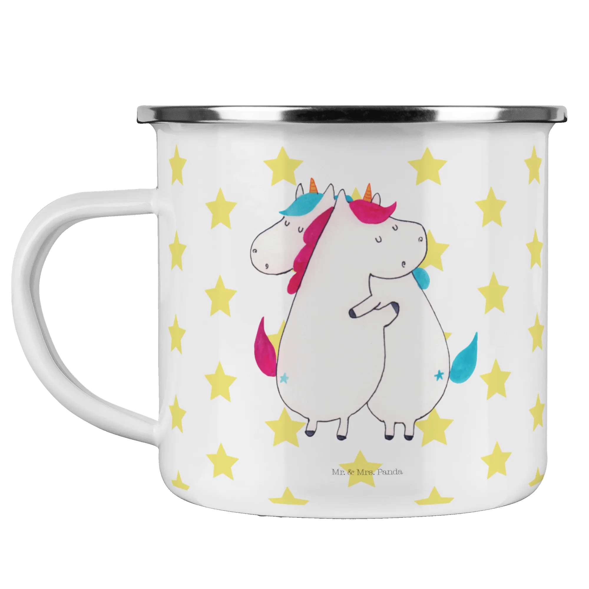 Kempingowy kubek emaliowany Jednorożce Przytulanie - z napisem - Biały