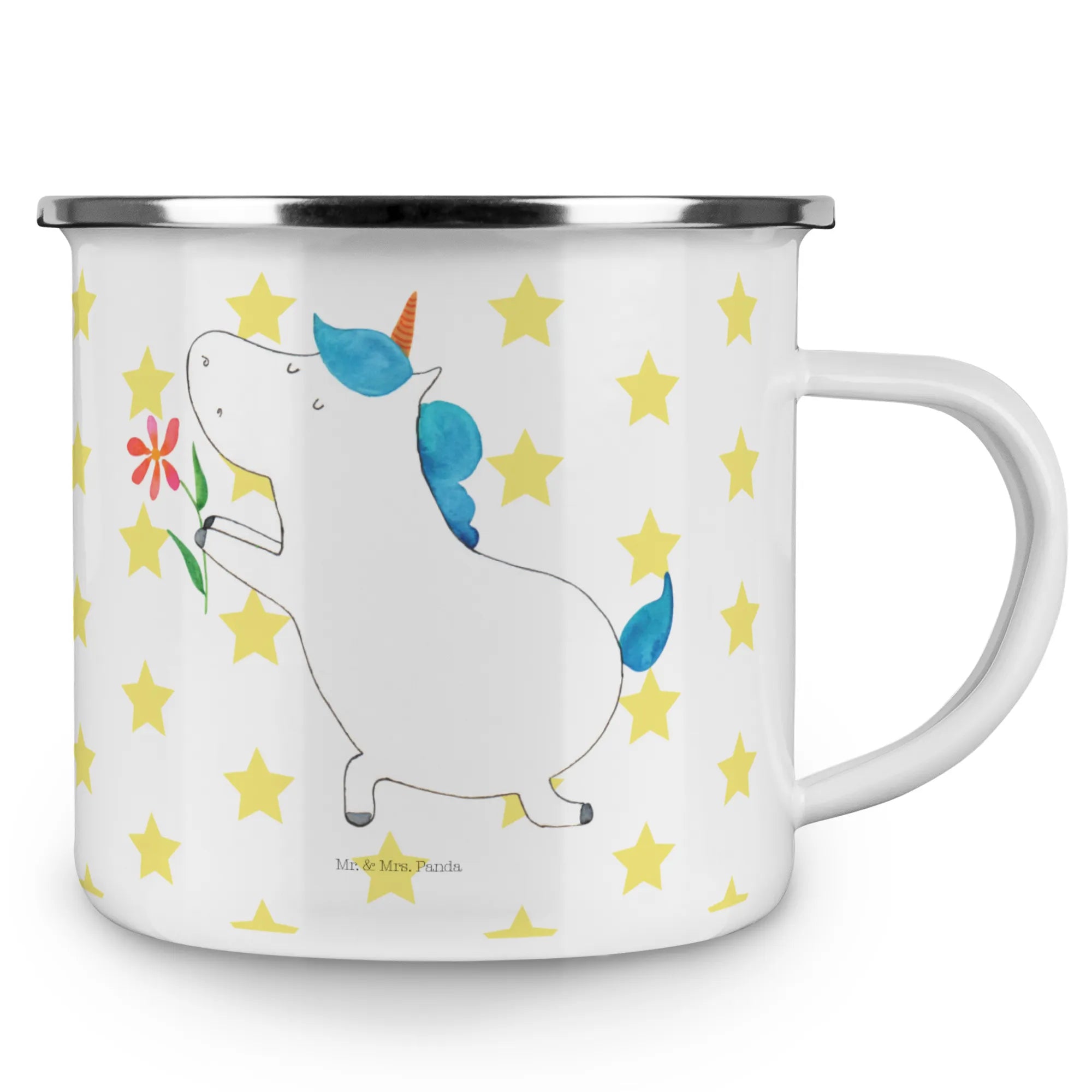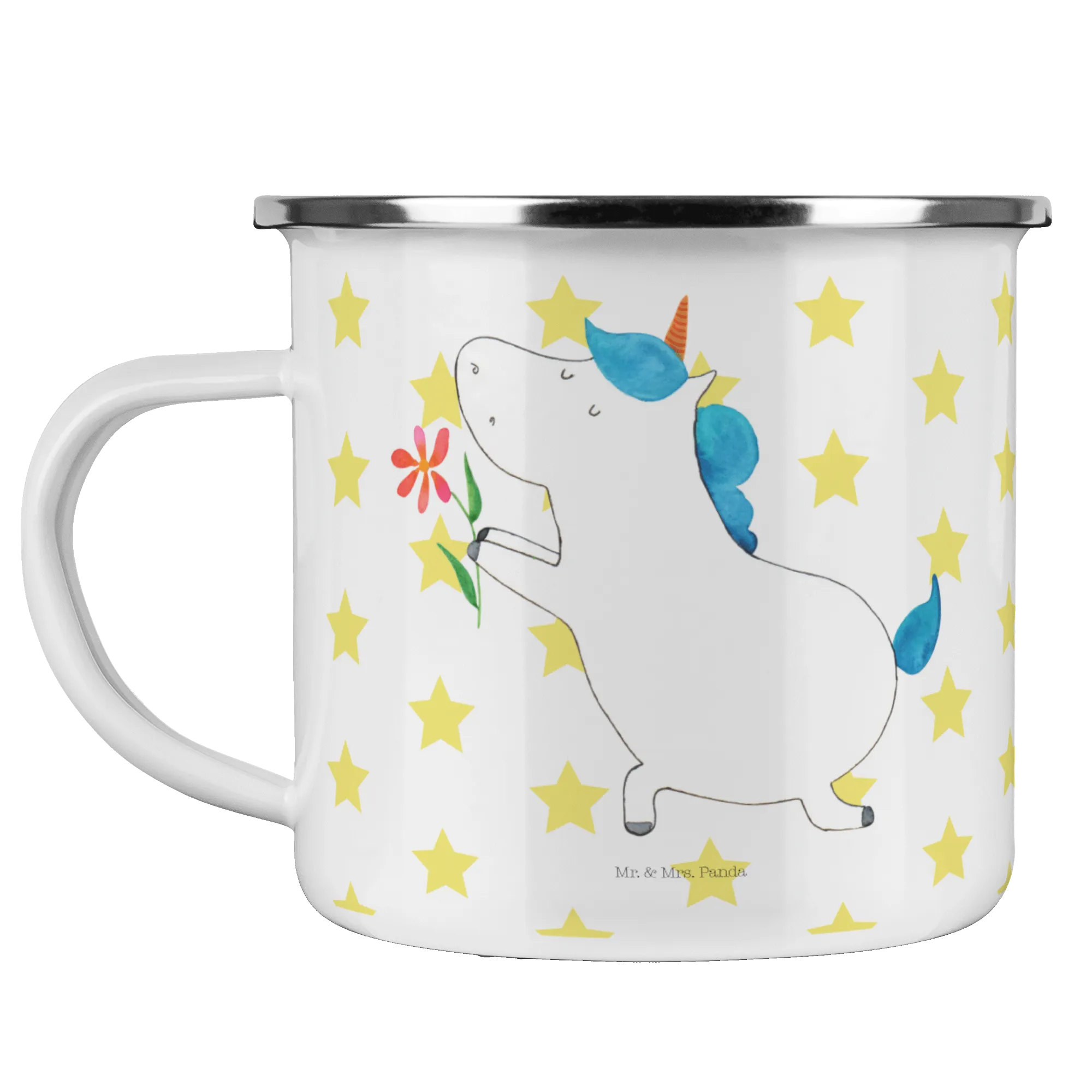 Kempingowy kubek emaliowany jednorożec kwiat - z napisem - biały