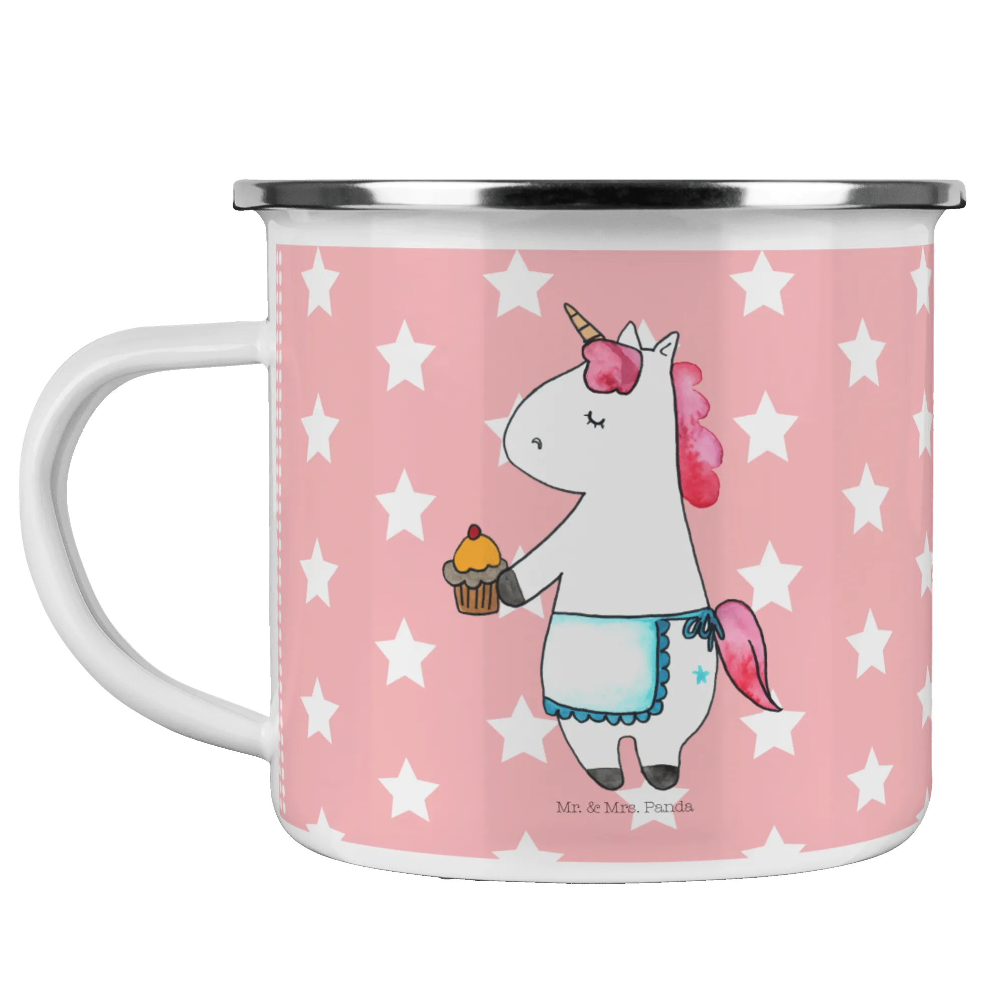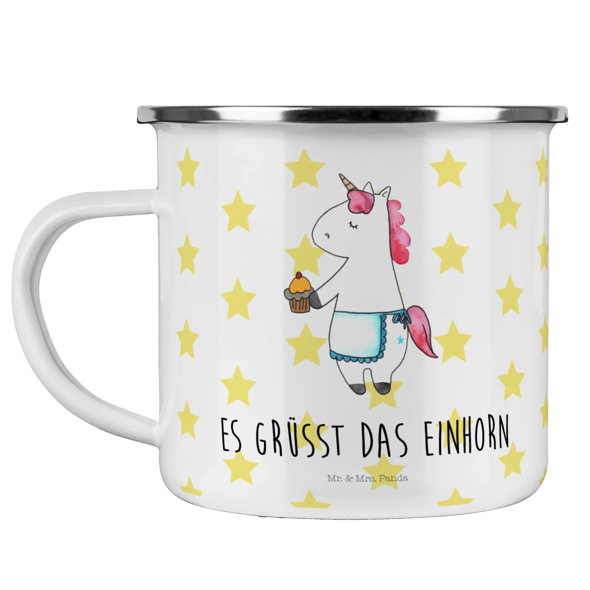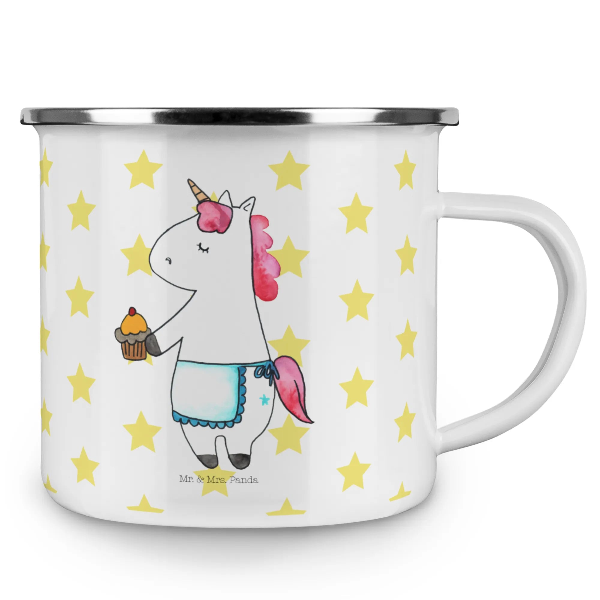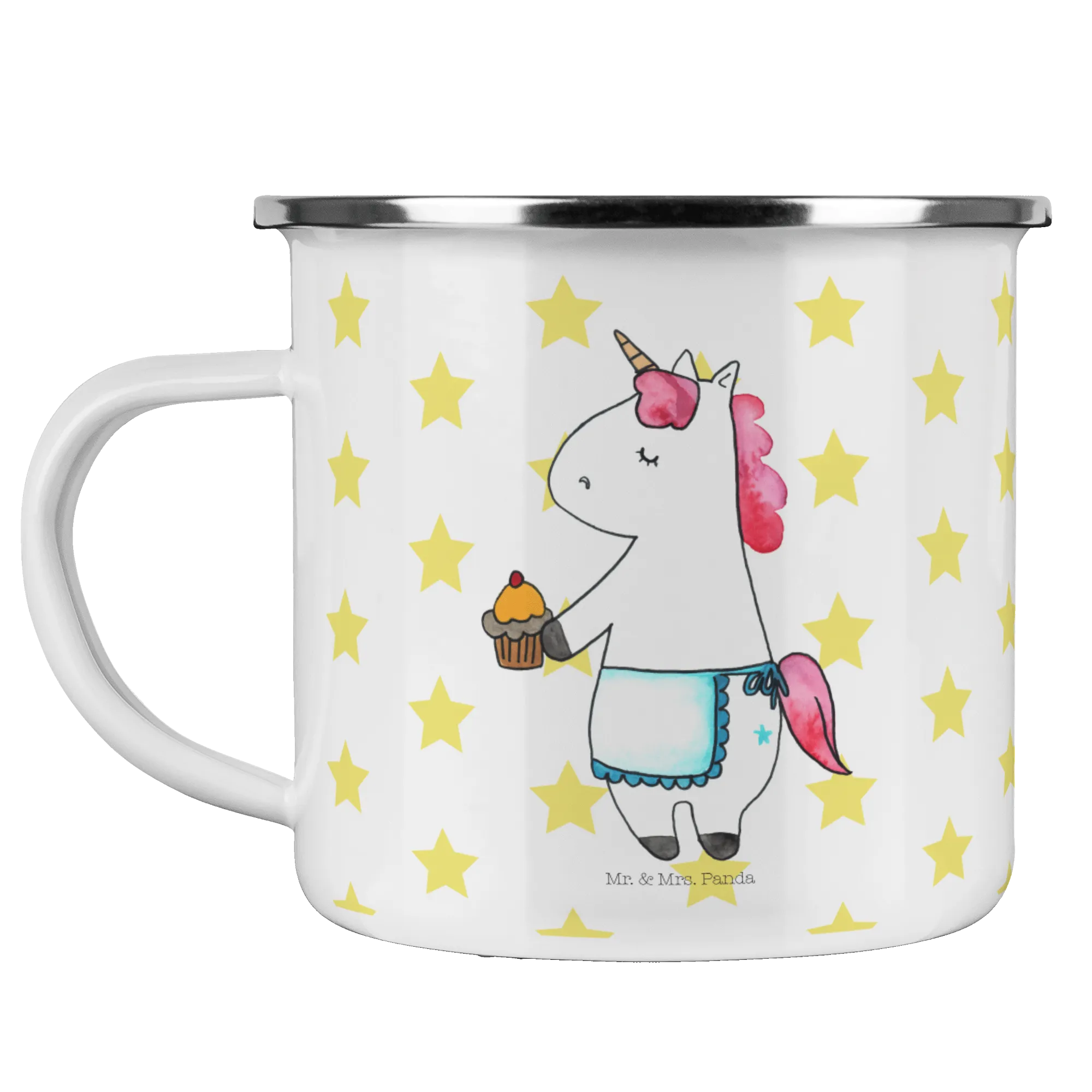 Kempingowy kubek emaliowany Jednorożec muffinka - z napisem - biały