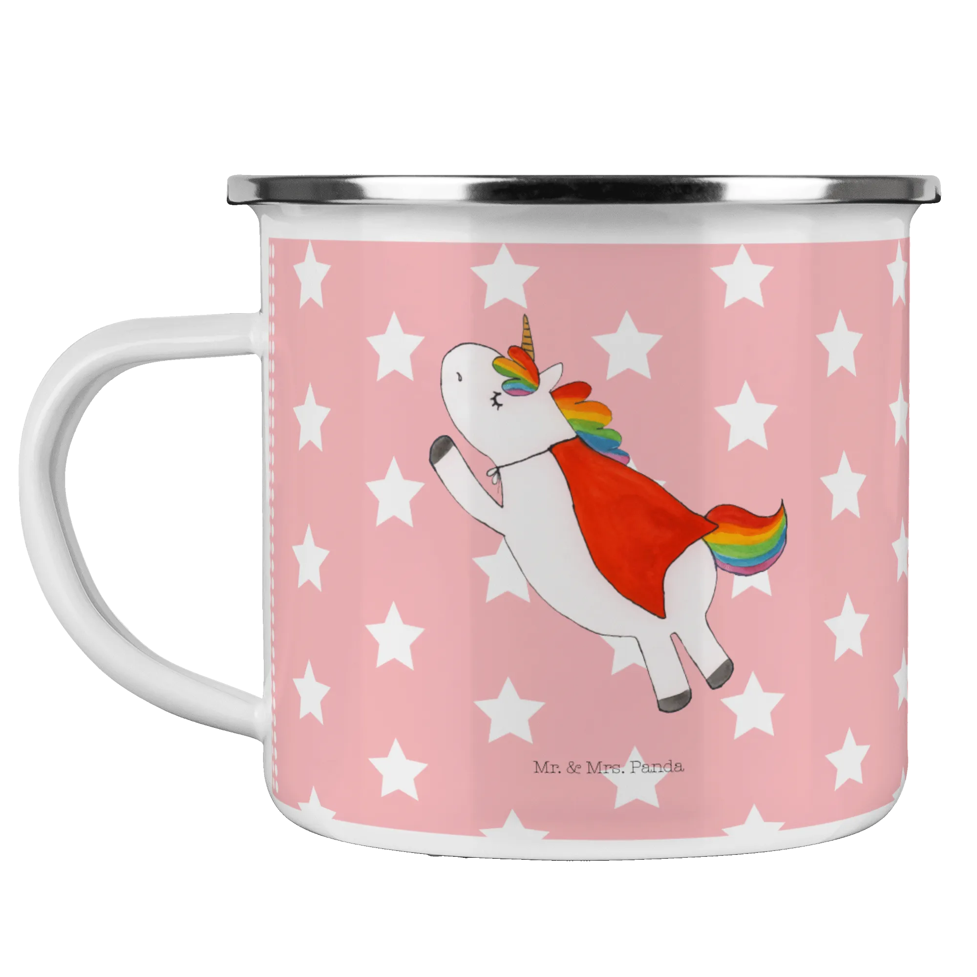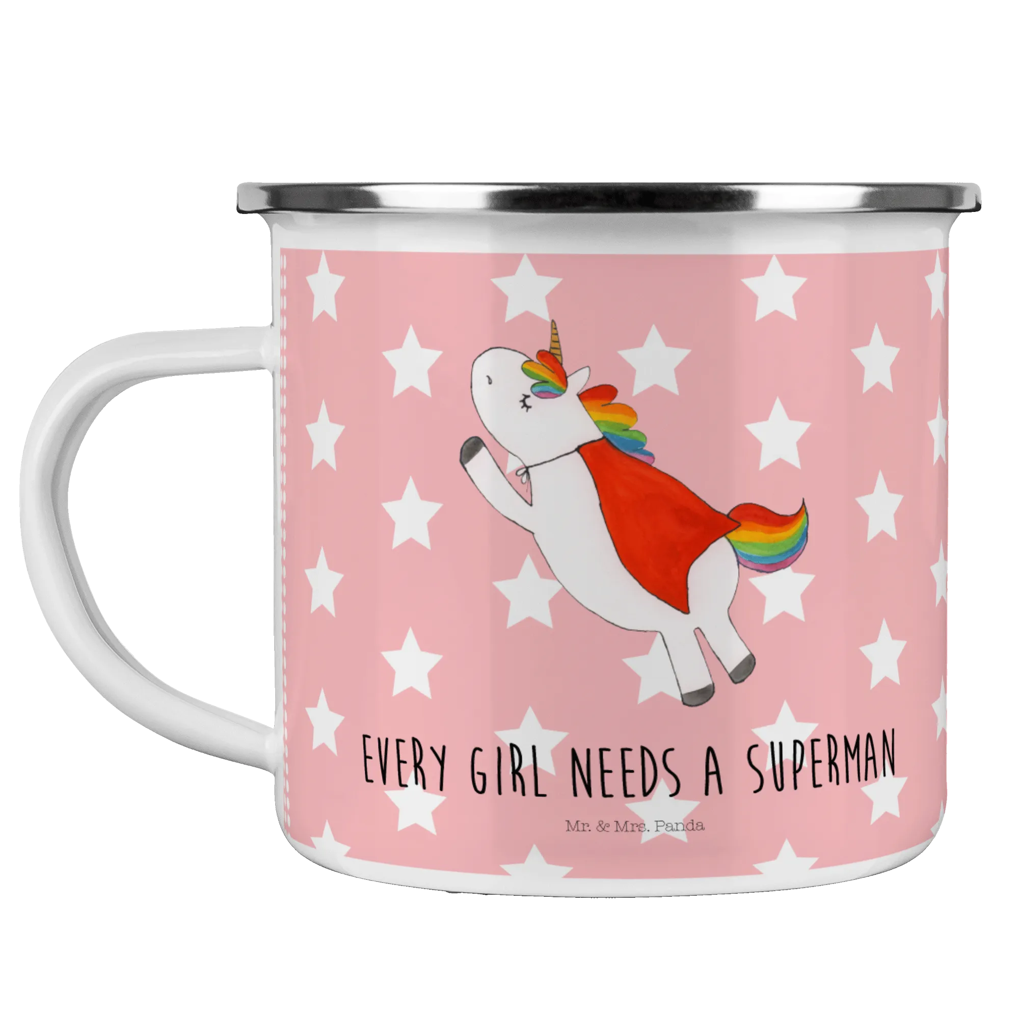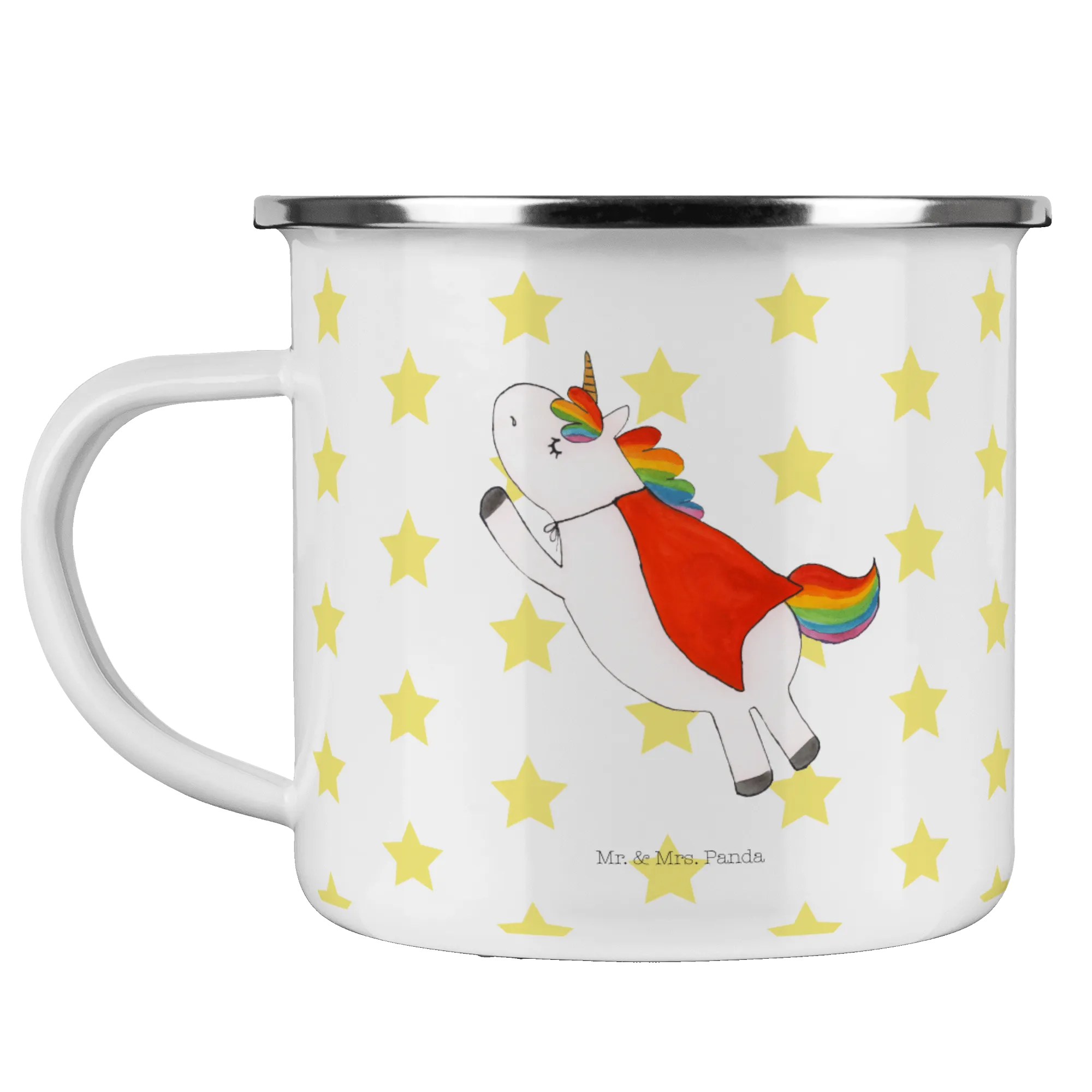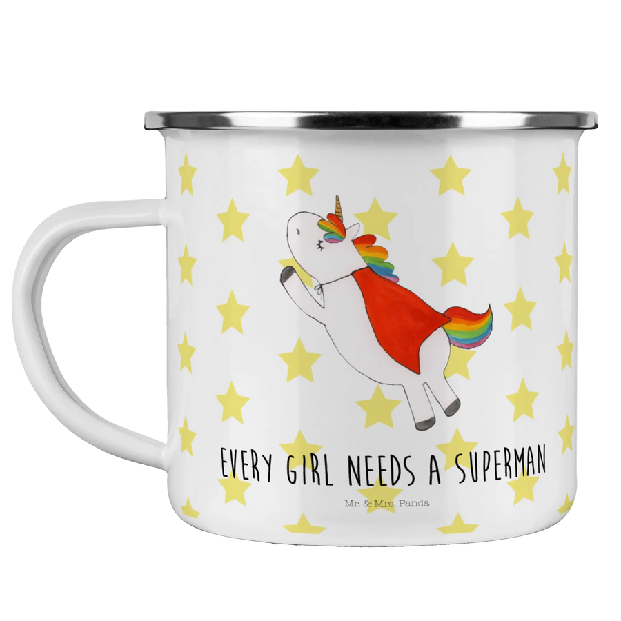 Kempingowy kubek emaliowany Jednorożec Super - z napisem - Biały