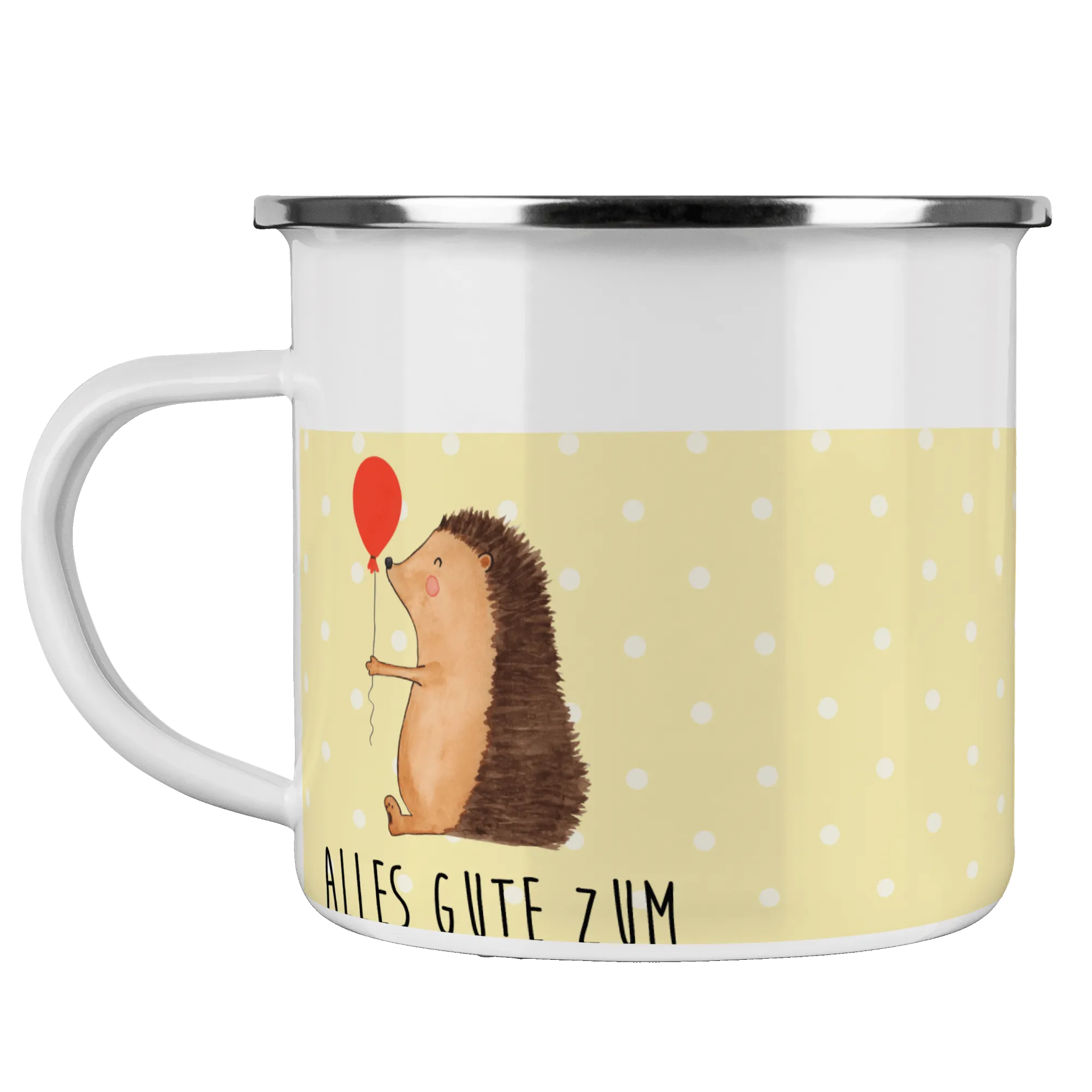 Kempingowy kubek emaliowany jeż balon - z napisem - biały
