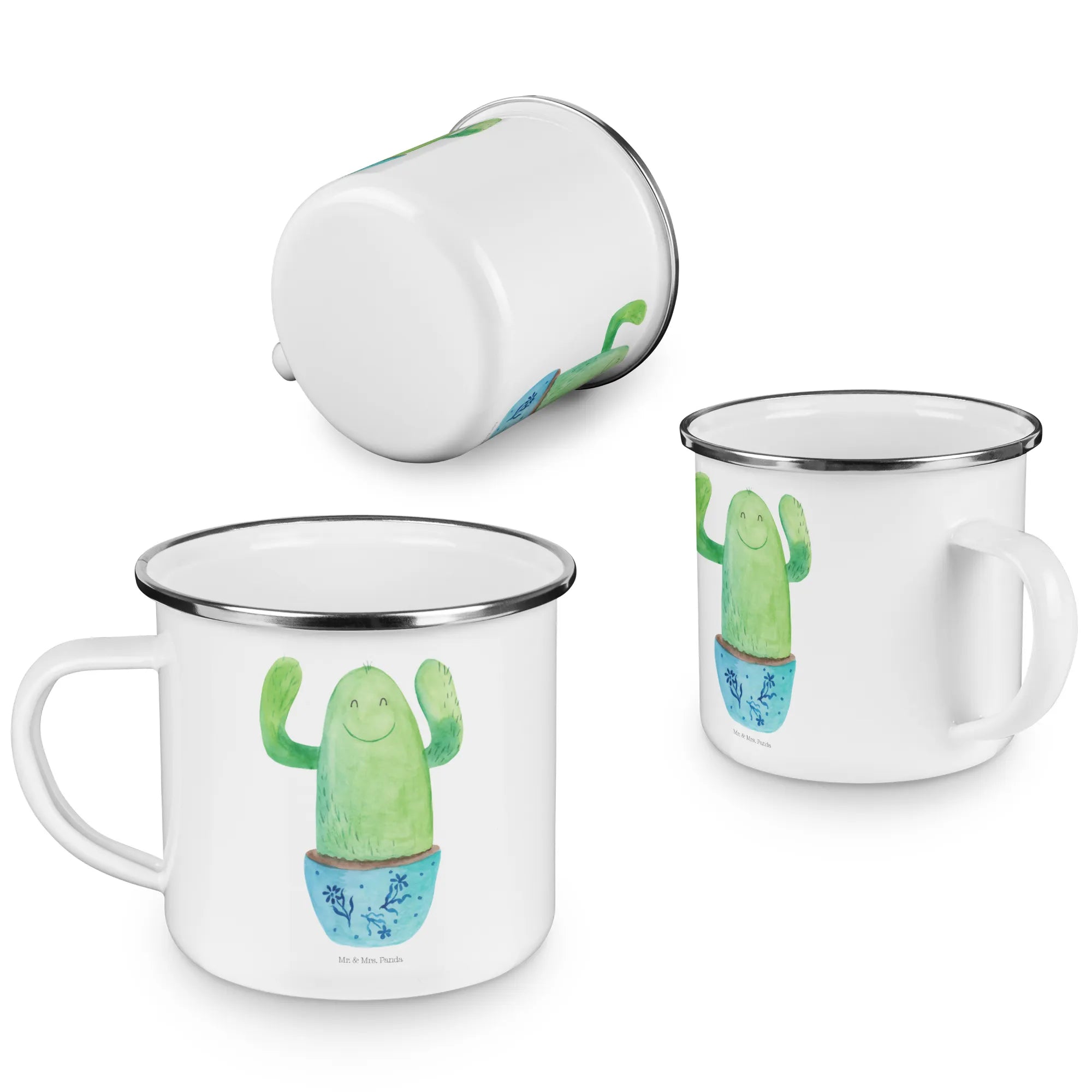 Kempingowy kubek emaliowany kaktus Szczęśliwy - mit Spruch