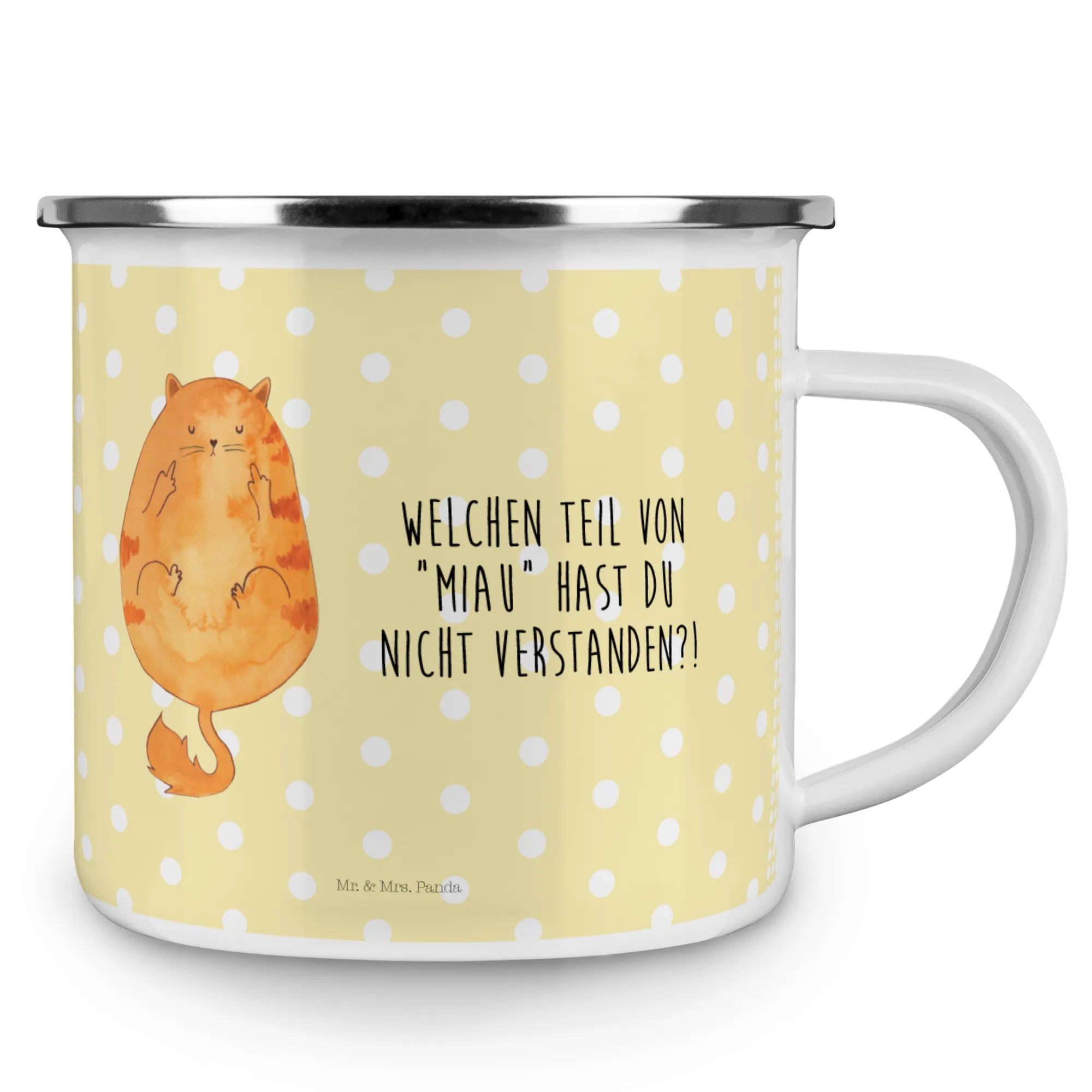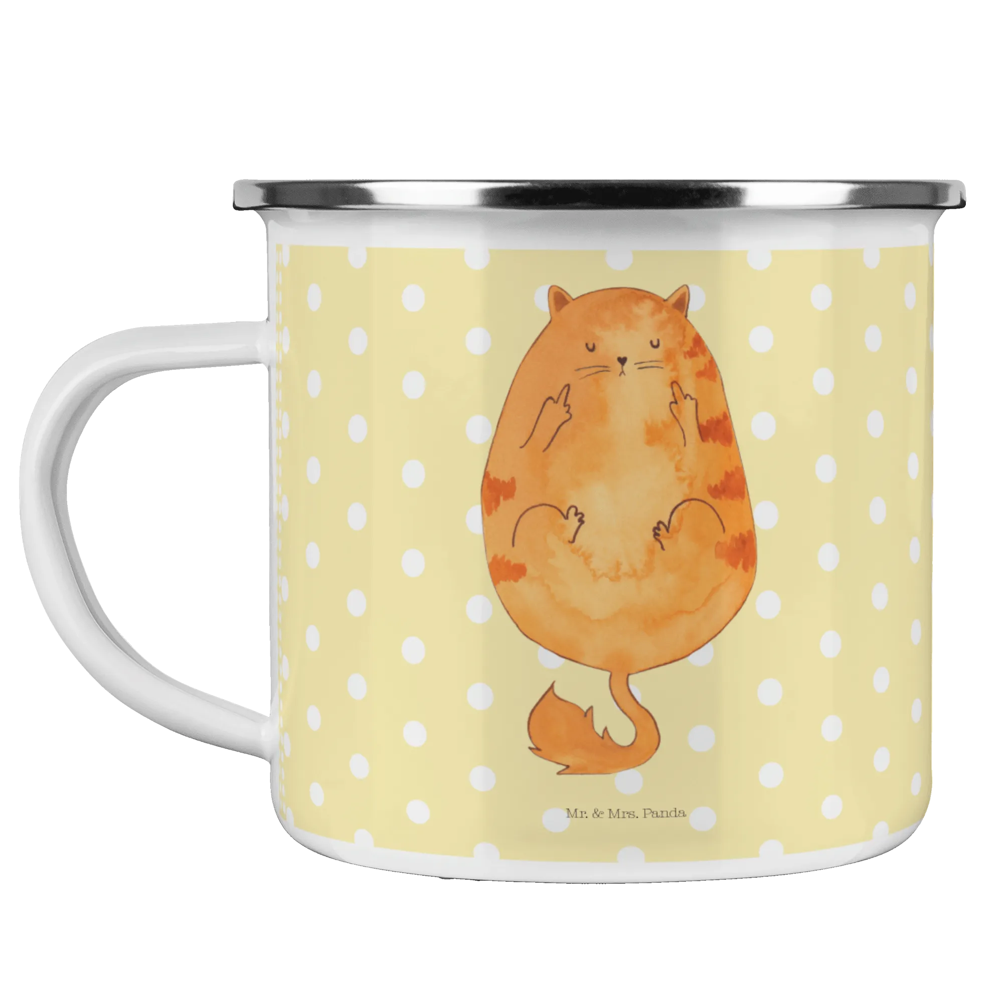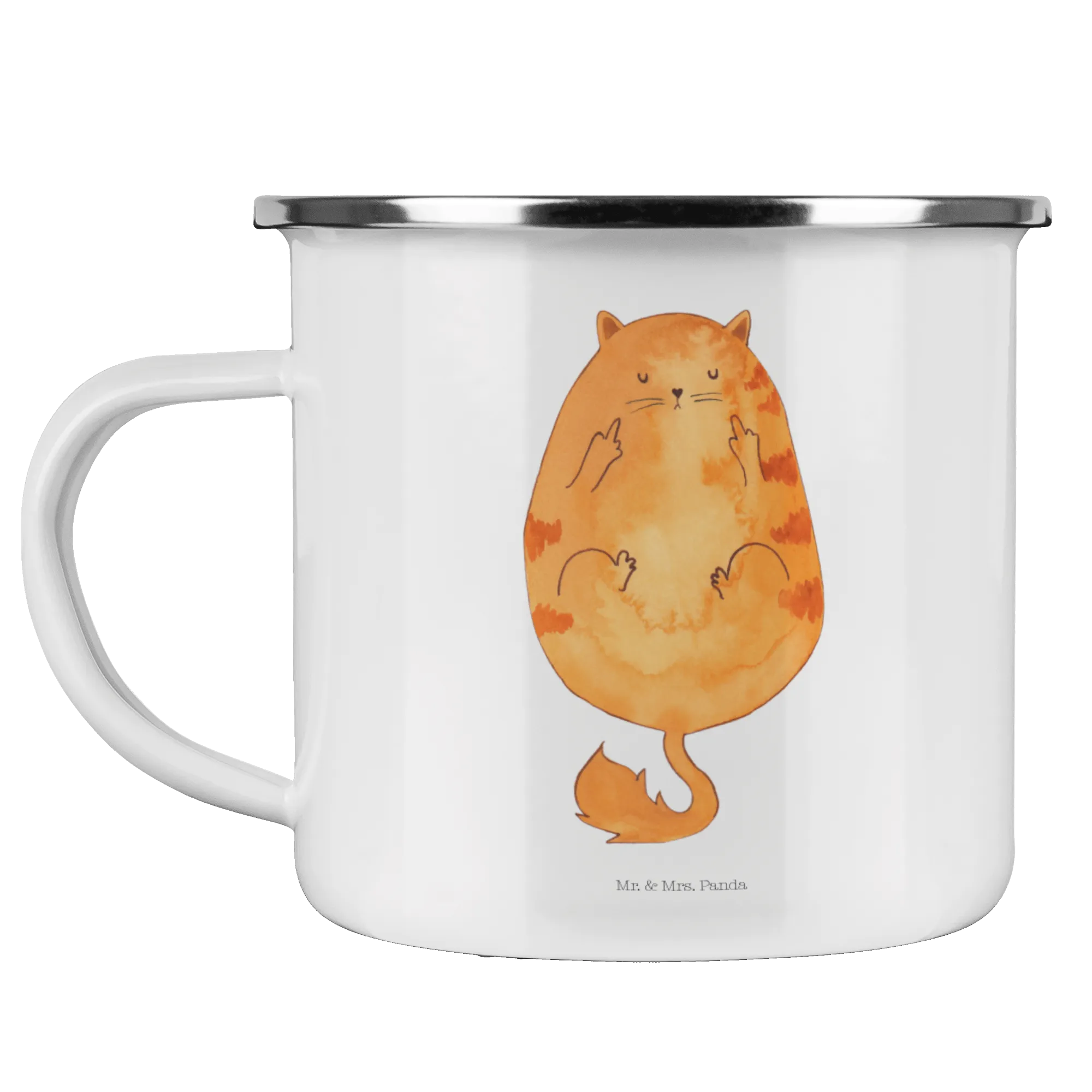 Kempingowy kubek emaliowany kot środkowy palec - z napisem - biały
