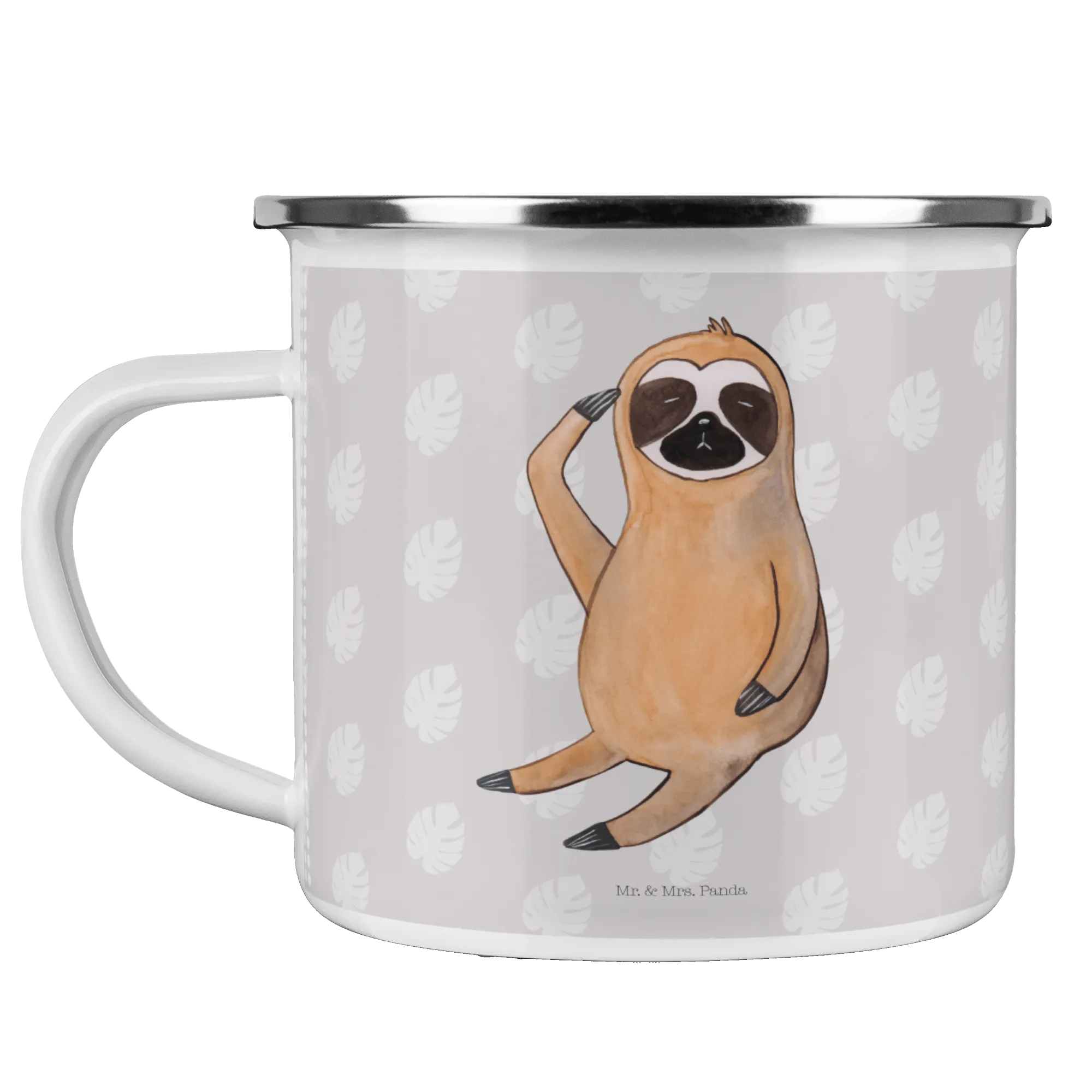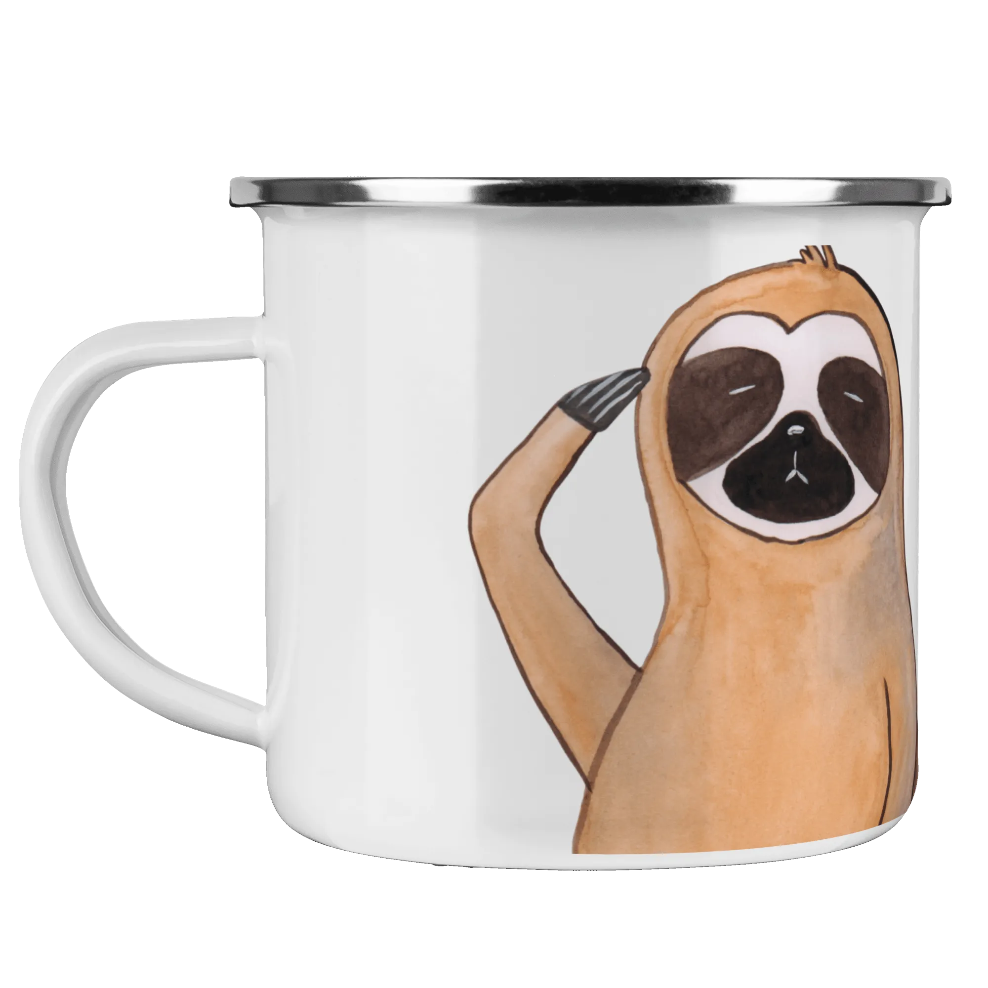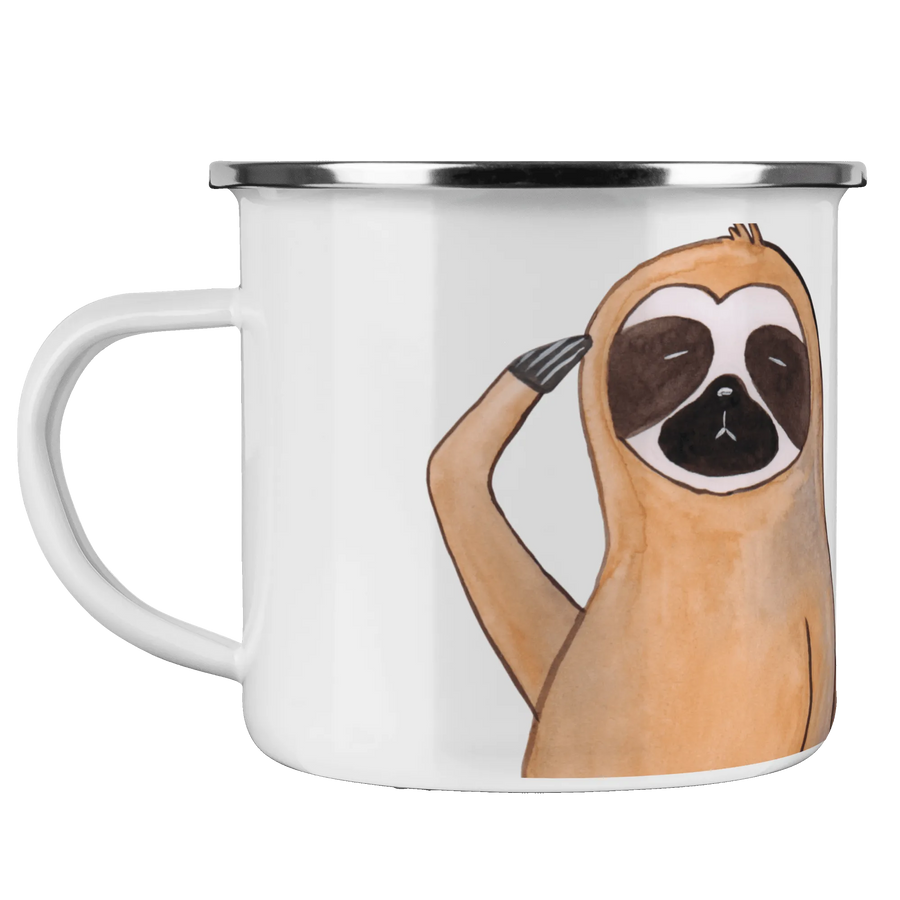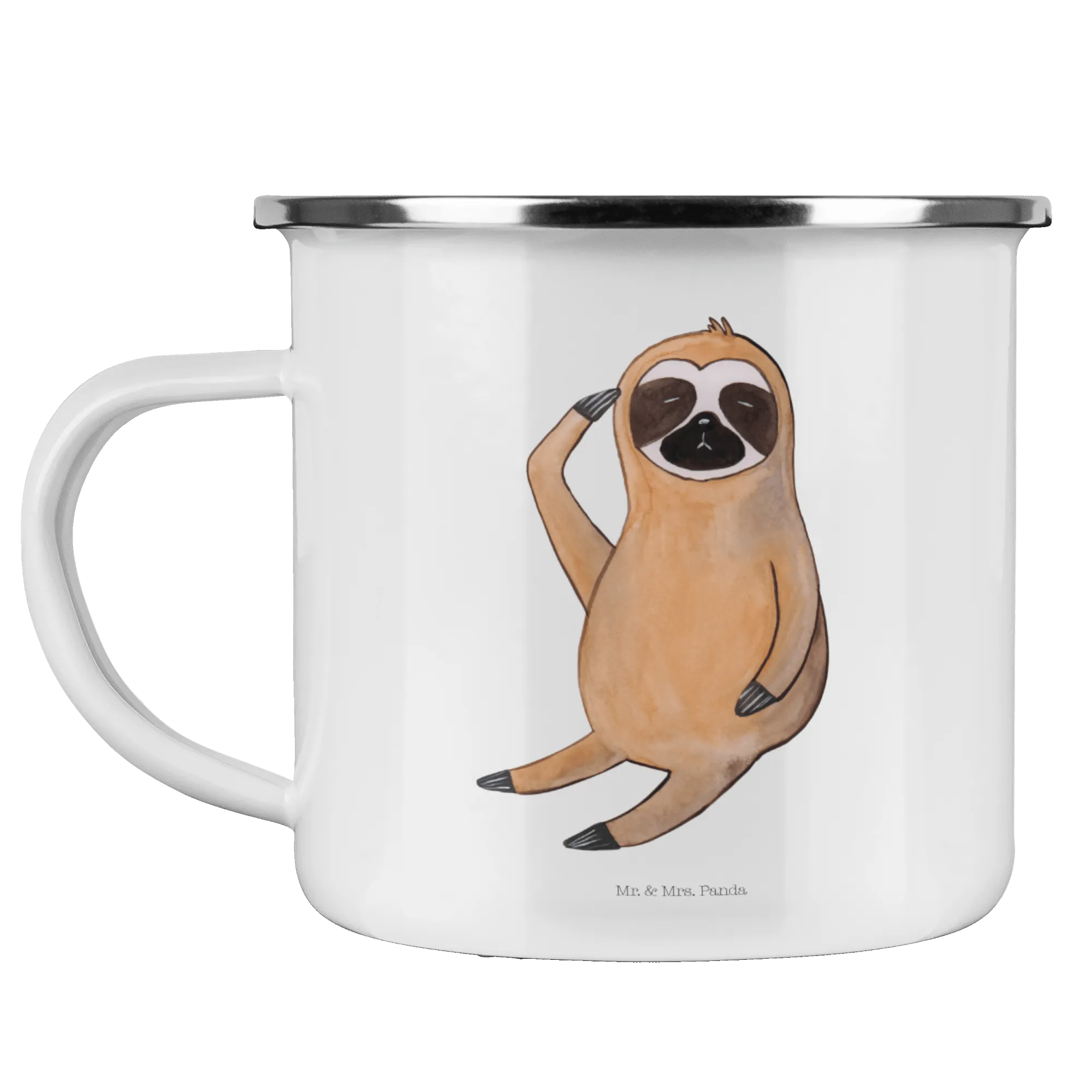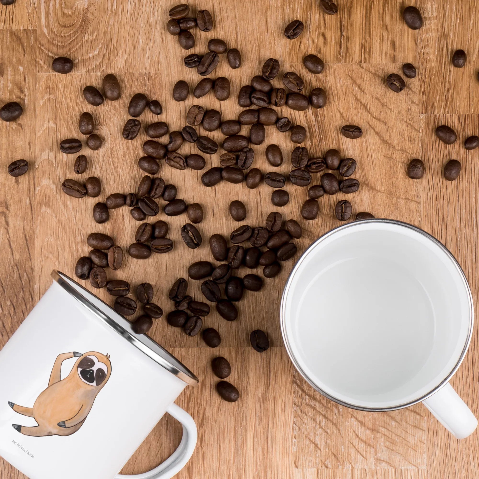 Kempingowy kubek emaliowany leniwiec ptak - z napisem - biały