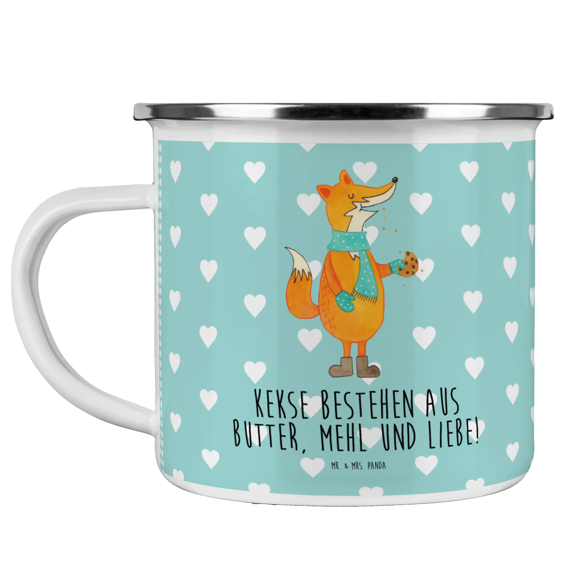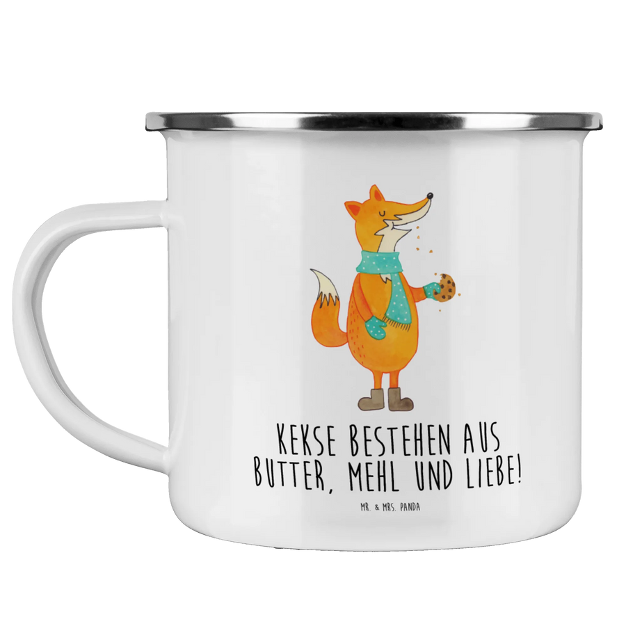Kempingowy kubek emaliowany lis ciasteczko - z napisem - biały