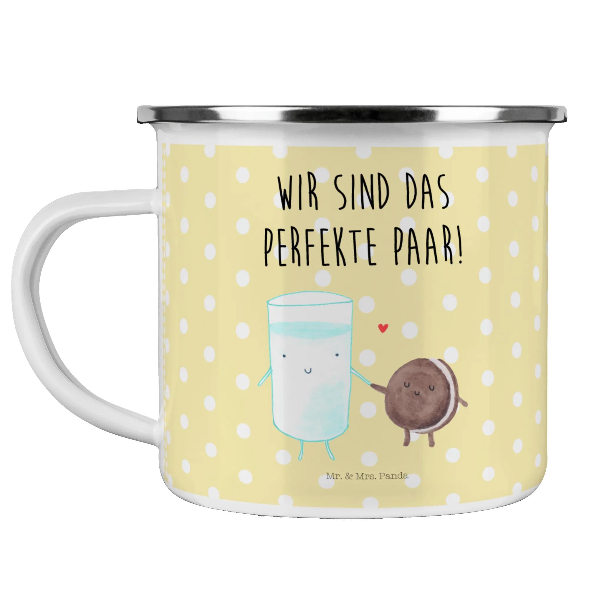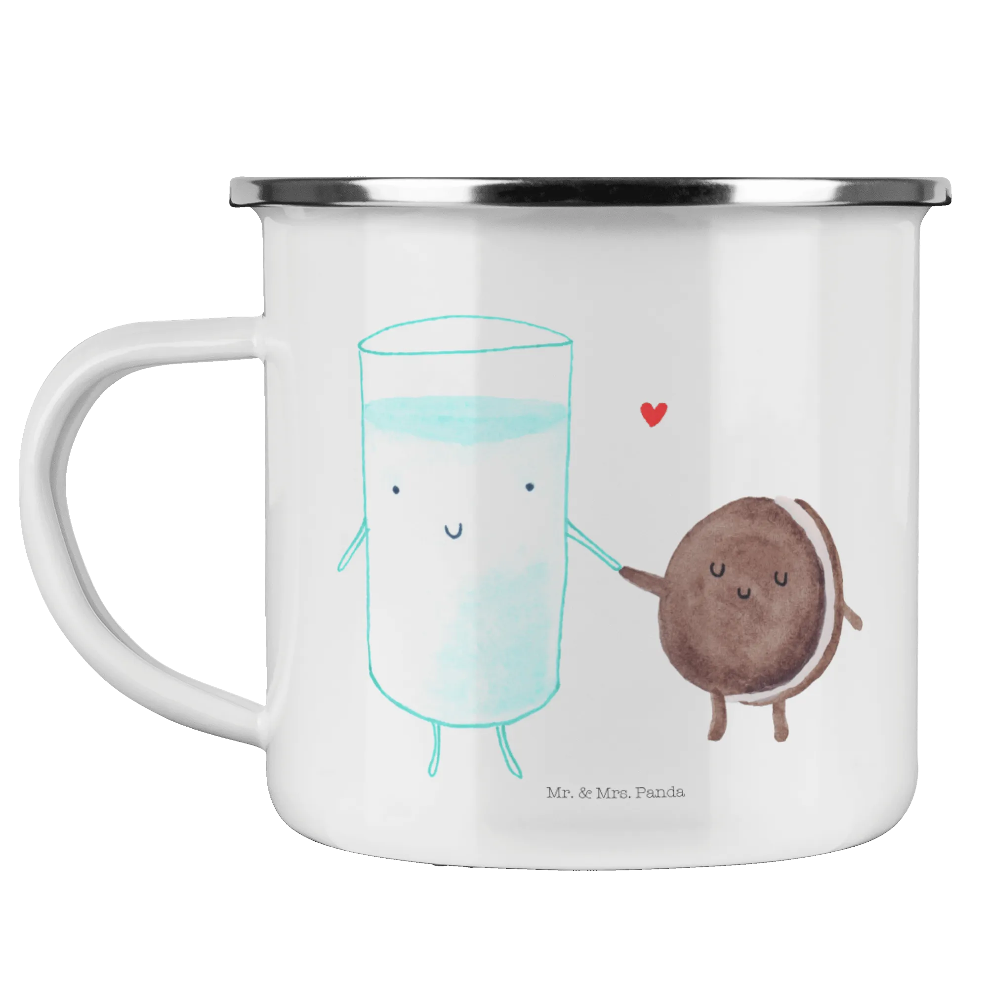 Kempingowy kubek emaliowany mleko ciastko - z napisem - Biały