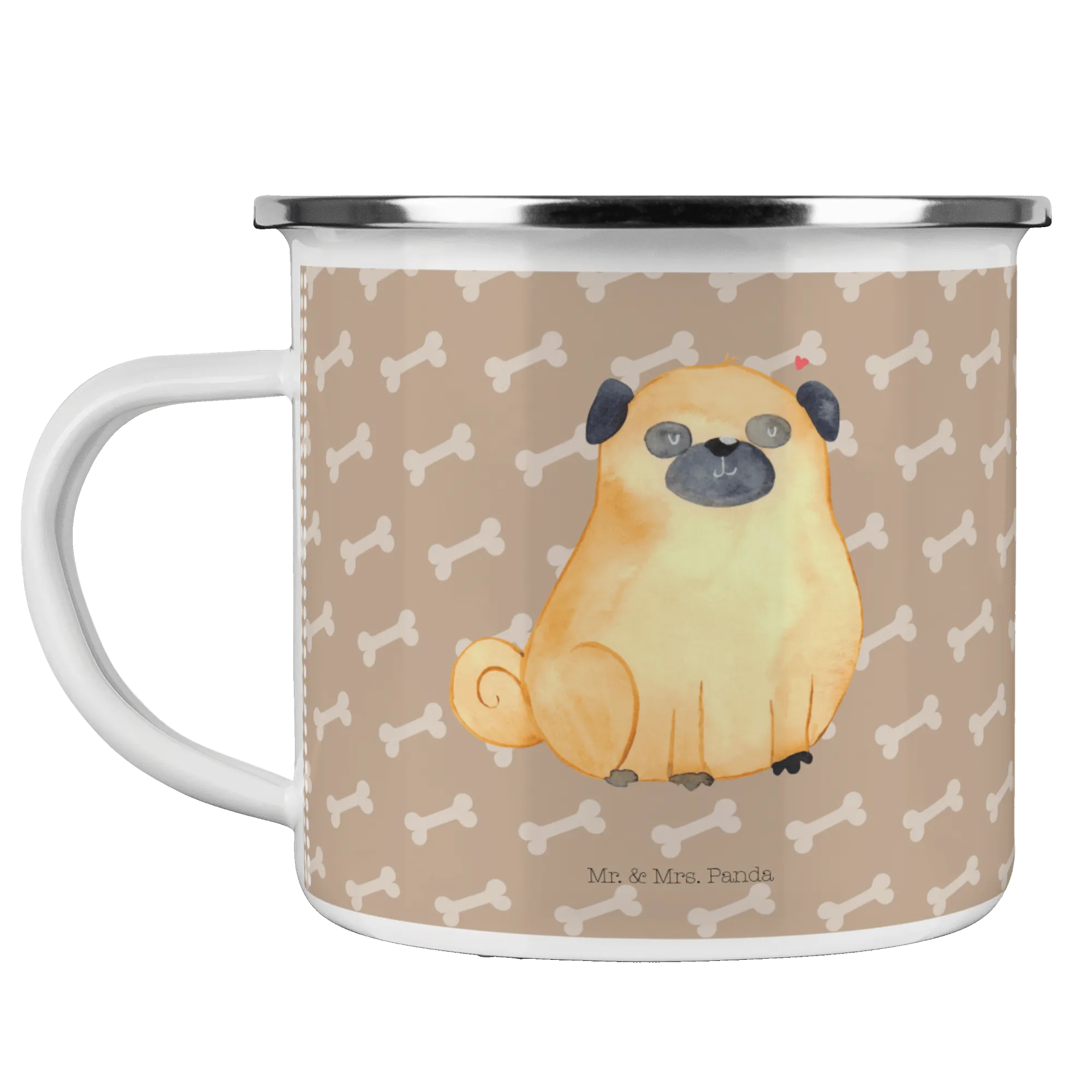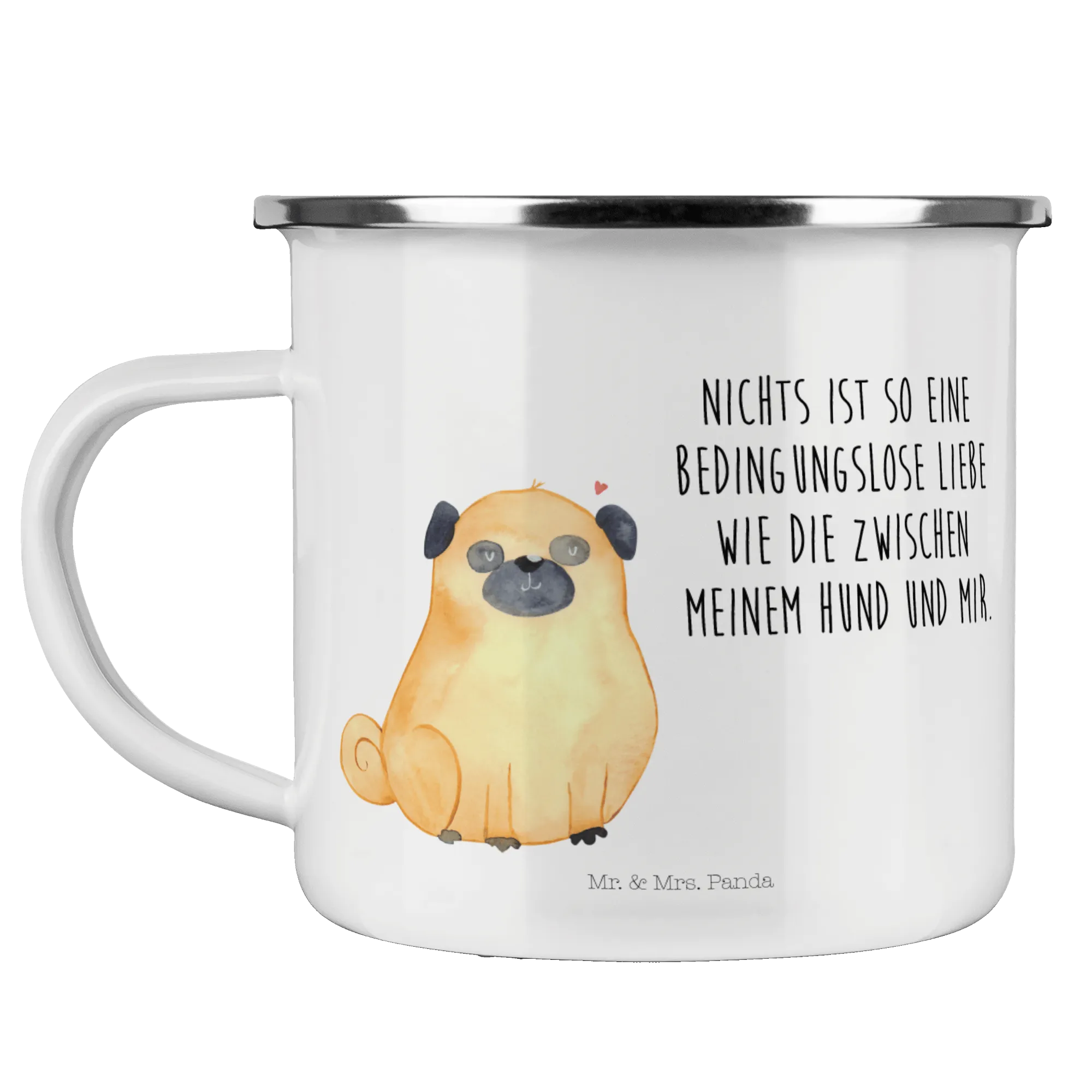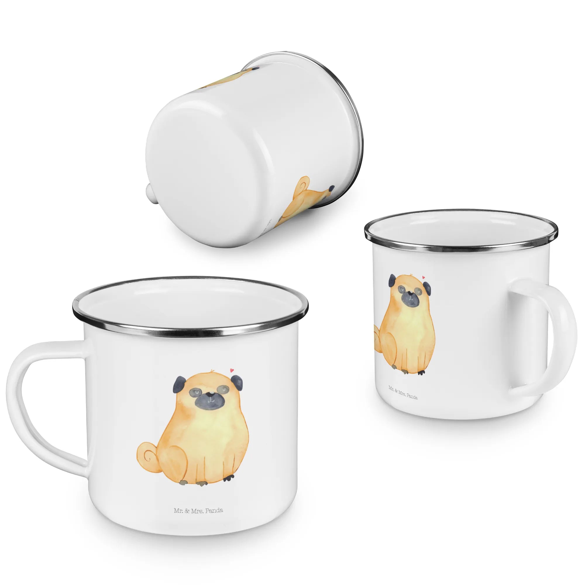 Kempingowy kubek emaliowany Mops - z napisem - biały